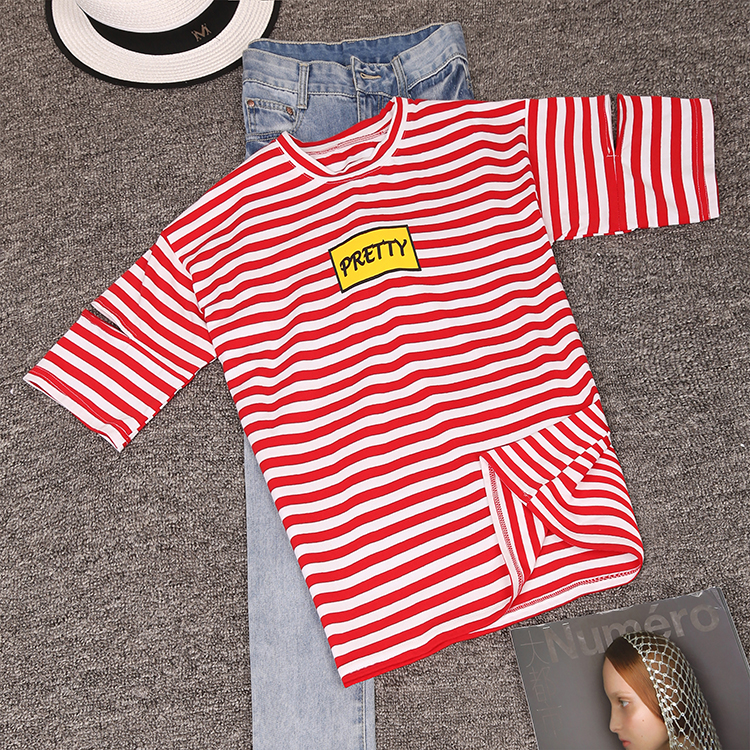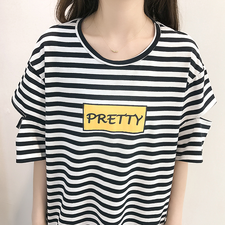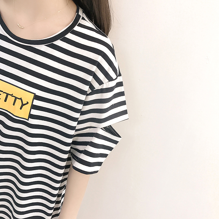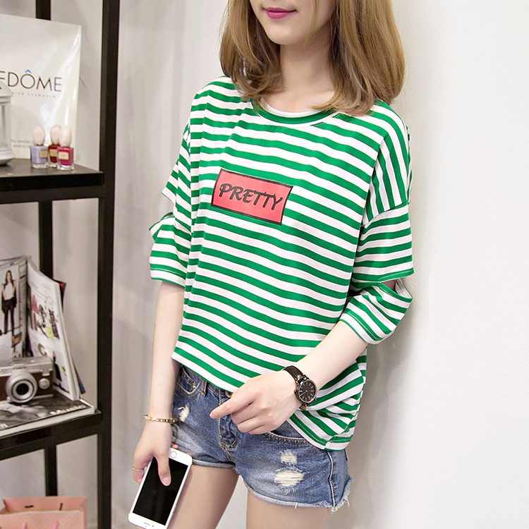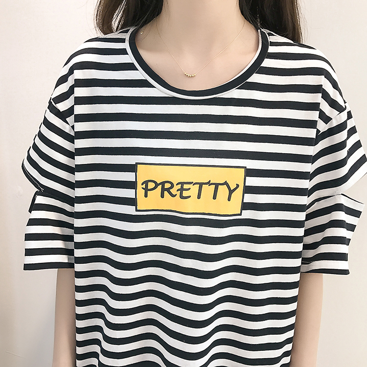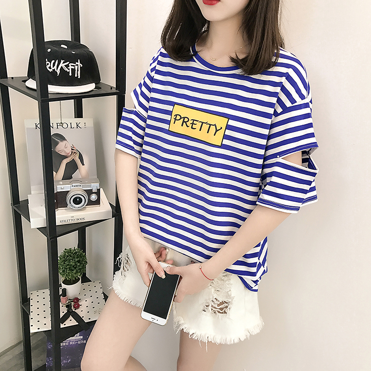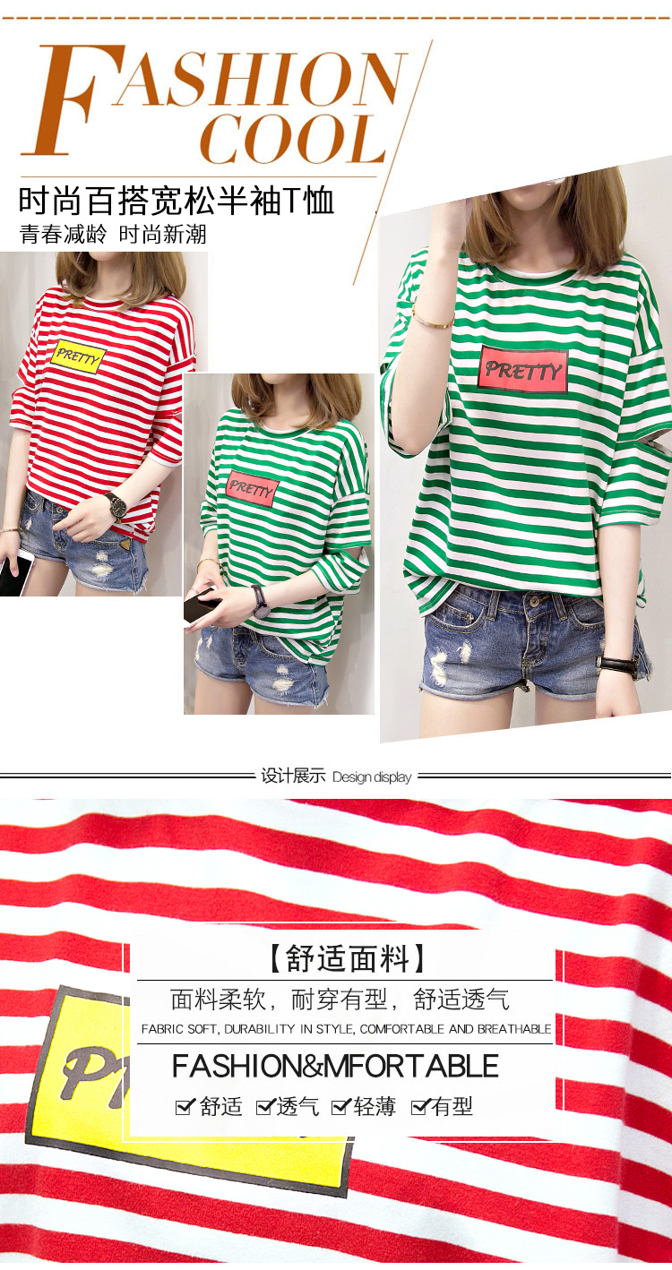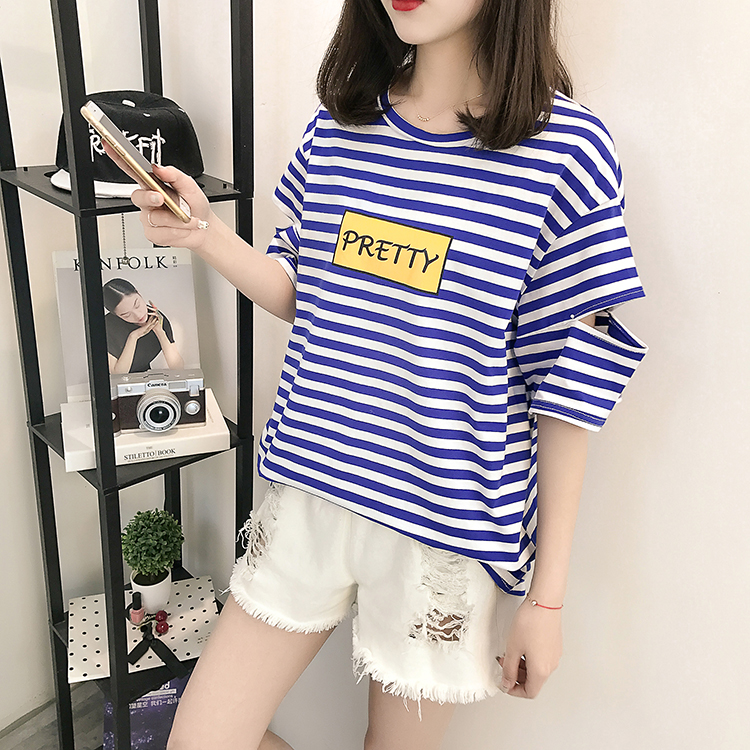 [2]網紅短袖女2019新款夏裝韓版條紋t恤女ins學生寬松百搭半袖上衣服