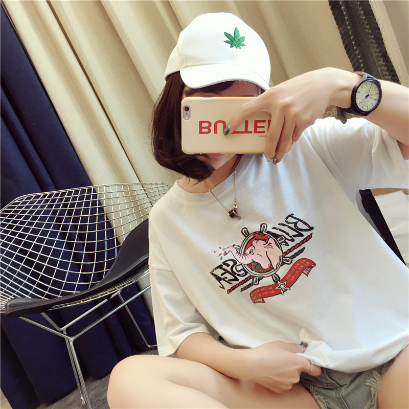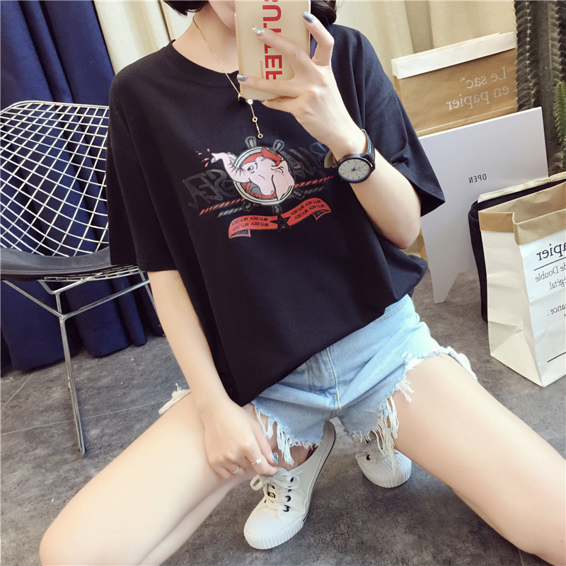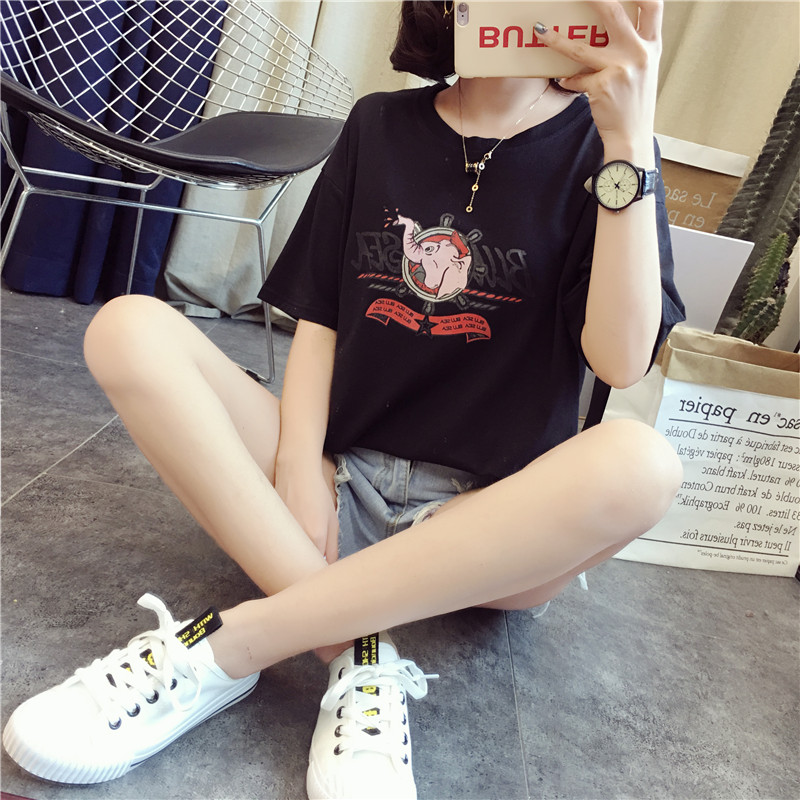 [2]網紅t恤女短袖2019夏裝新款寬松韓版學生衣服卡通上衣半袖體恤ins