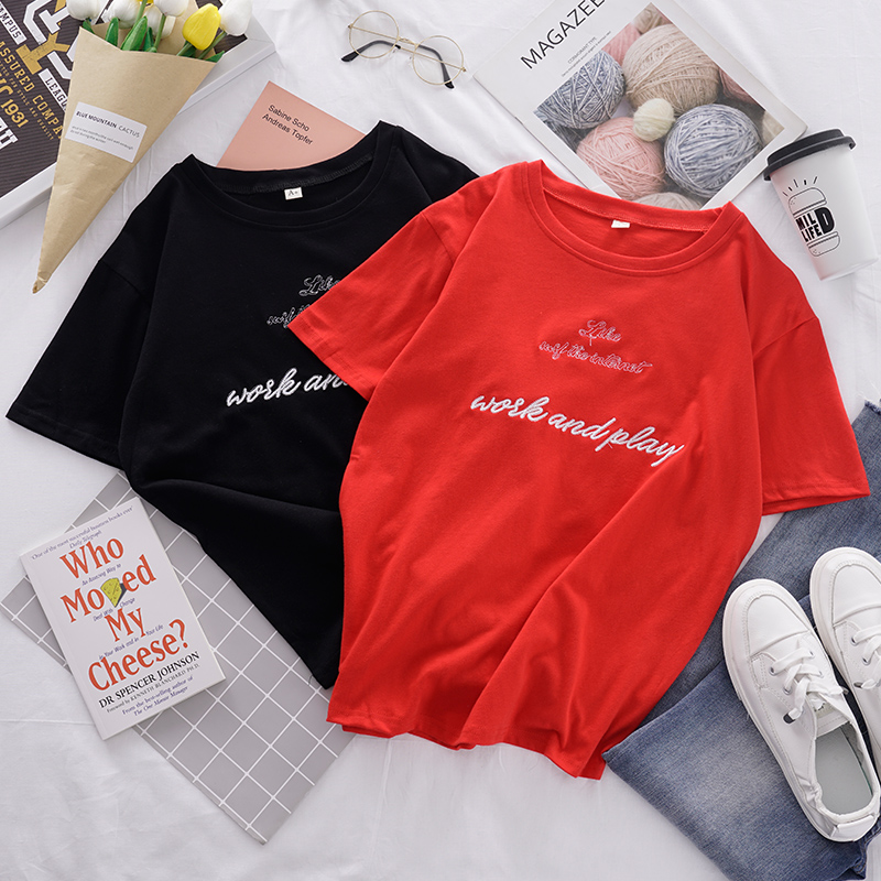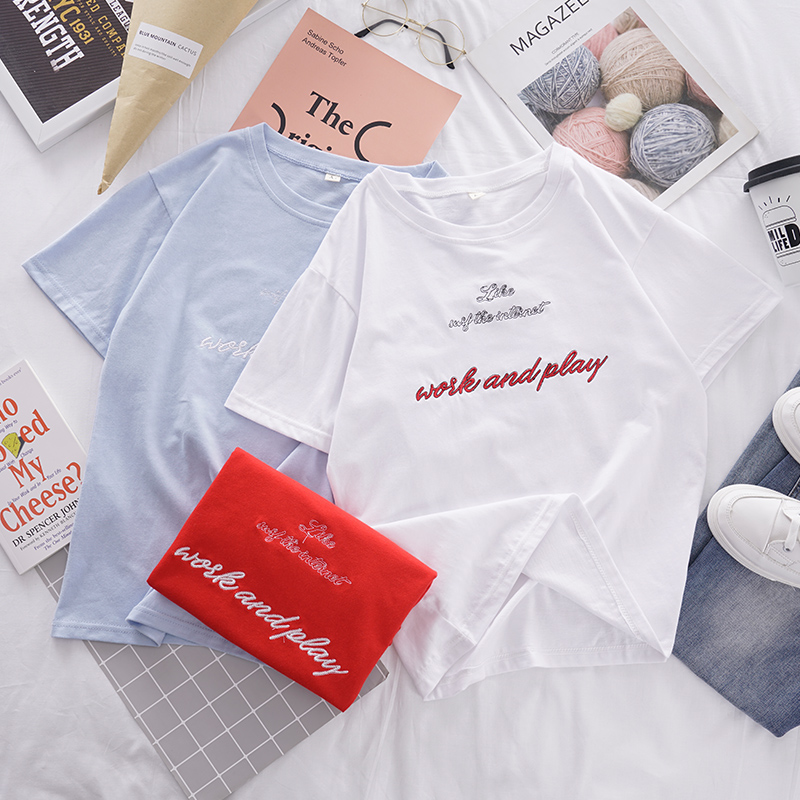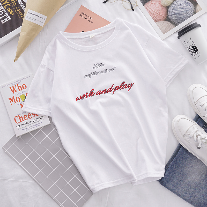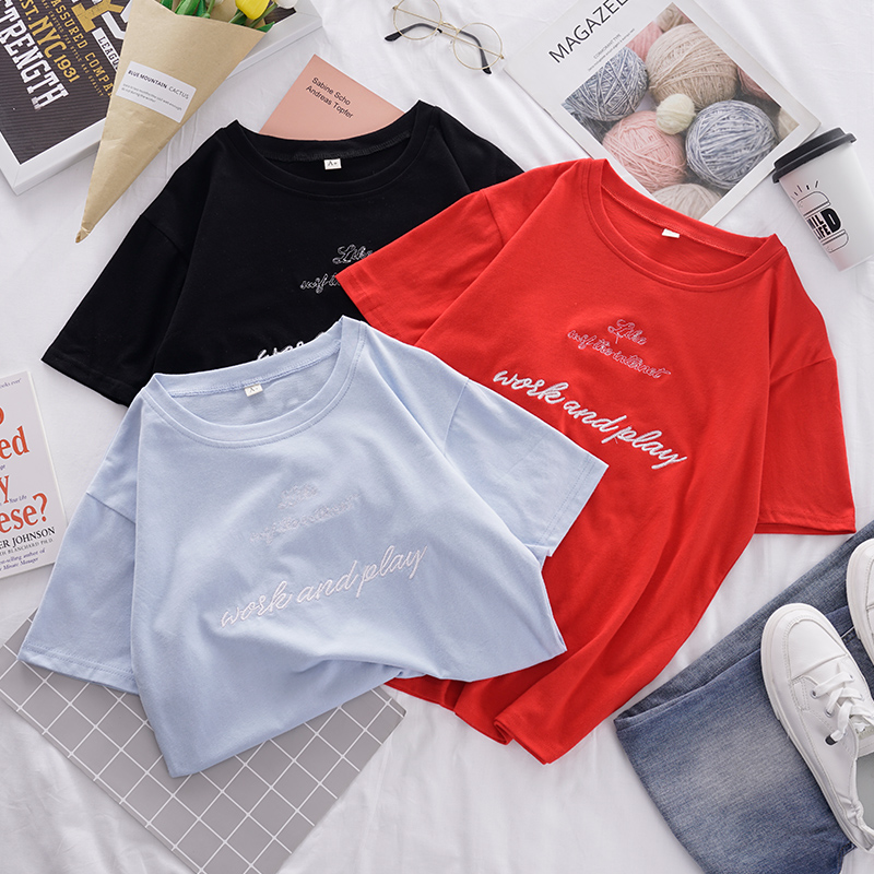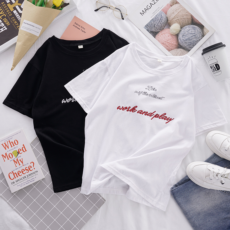 2019新款夏裝純棉t恤女ins潮寬松超火cec短袖白色體恤打底衫學生