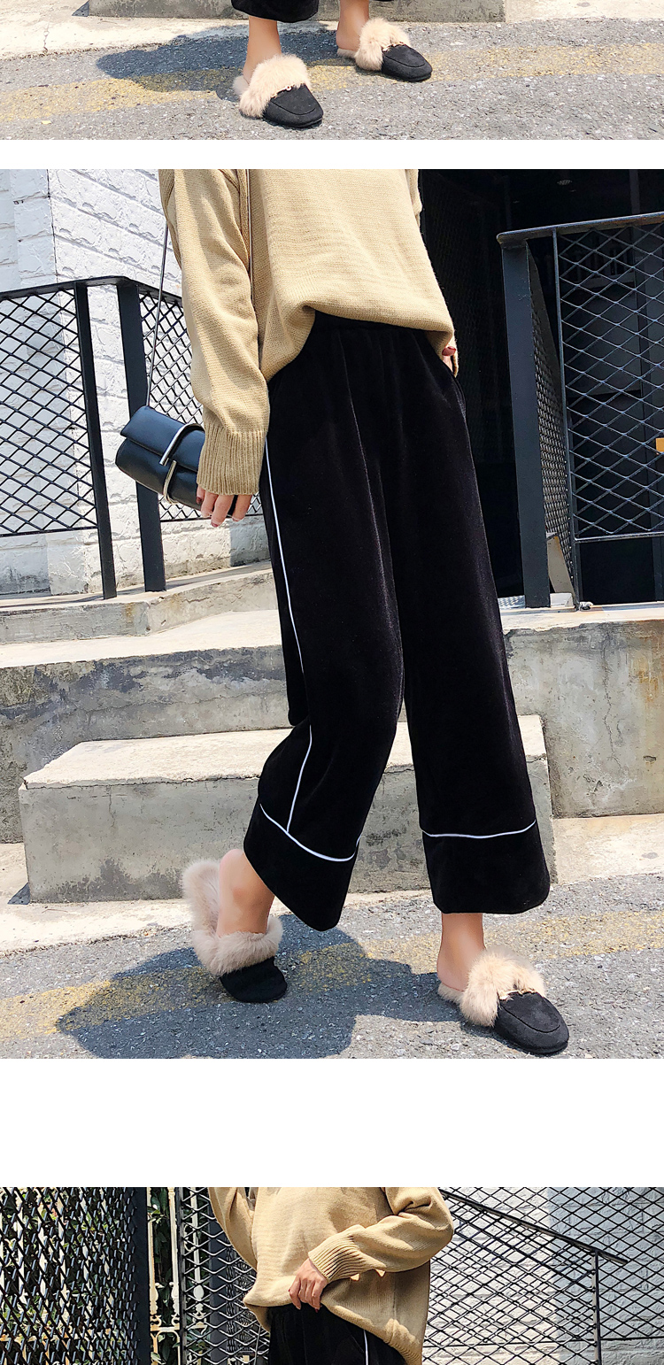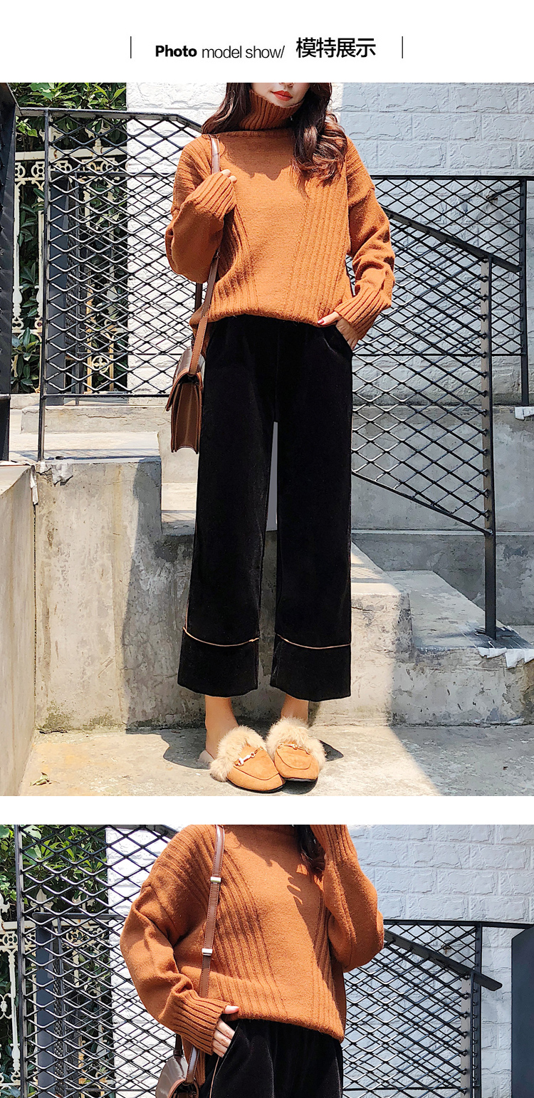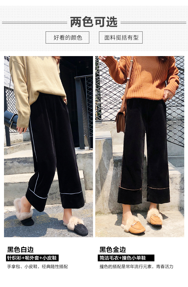 金絲絨闊腿褲女褲加絨加厚2019新款韓版學生ins百搭九分直筒褲潮