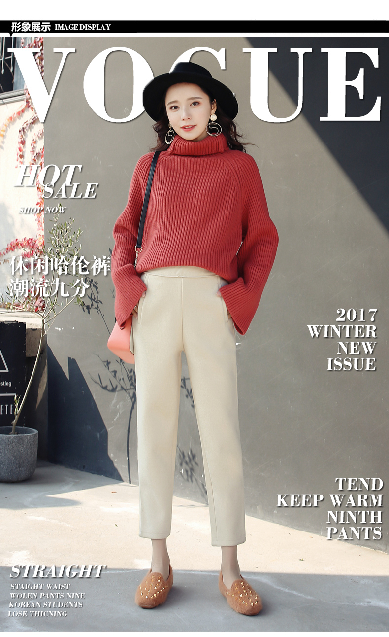 2018秋冬季韓版小腳蘿卜褲女褲子學生呢子毛呢九分香蕉褲哈倫褲潮