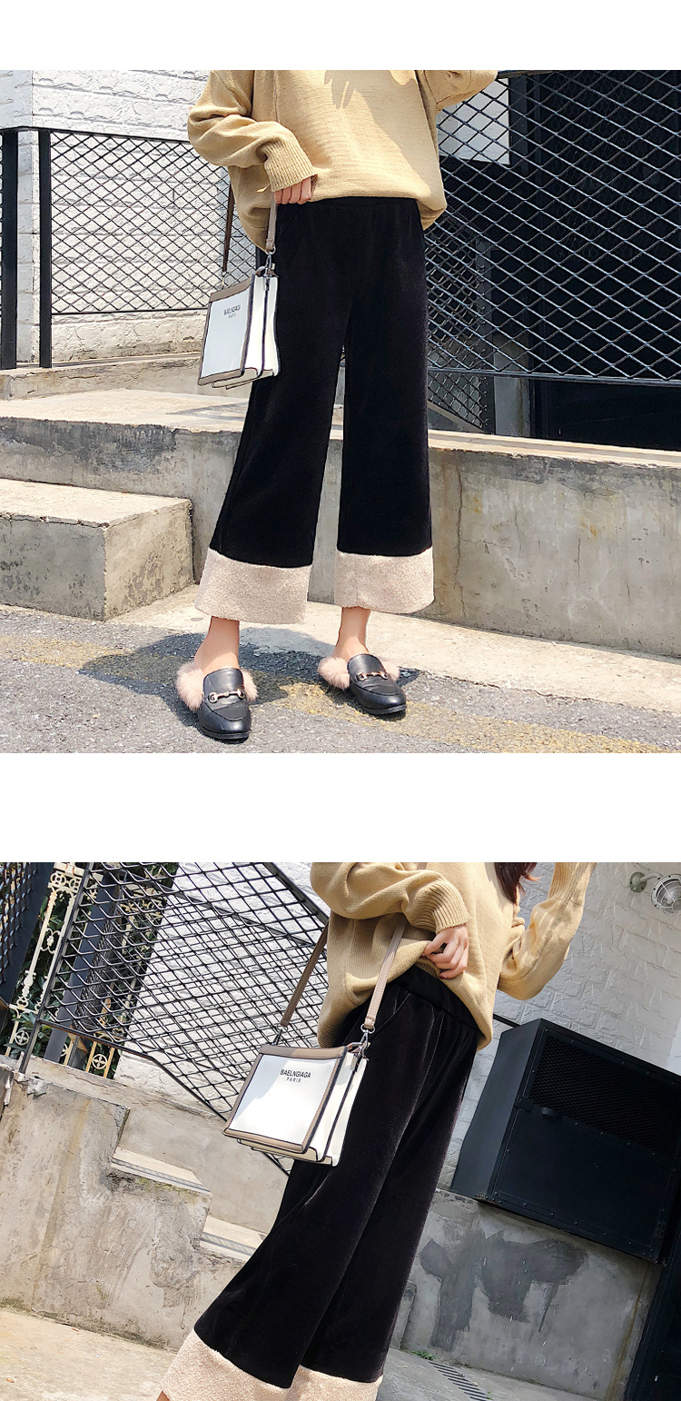 金絲絨闊腿褲女2019新款韓版寬松百搭chic學生加絨春季直筒九分褲