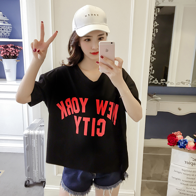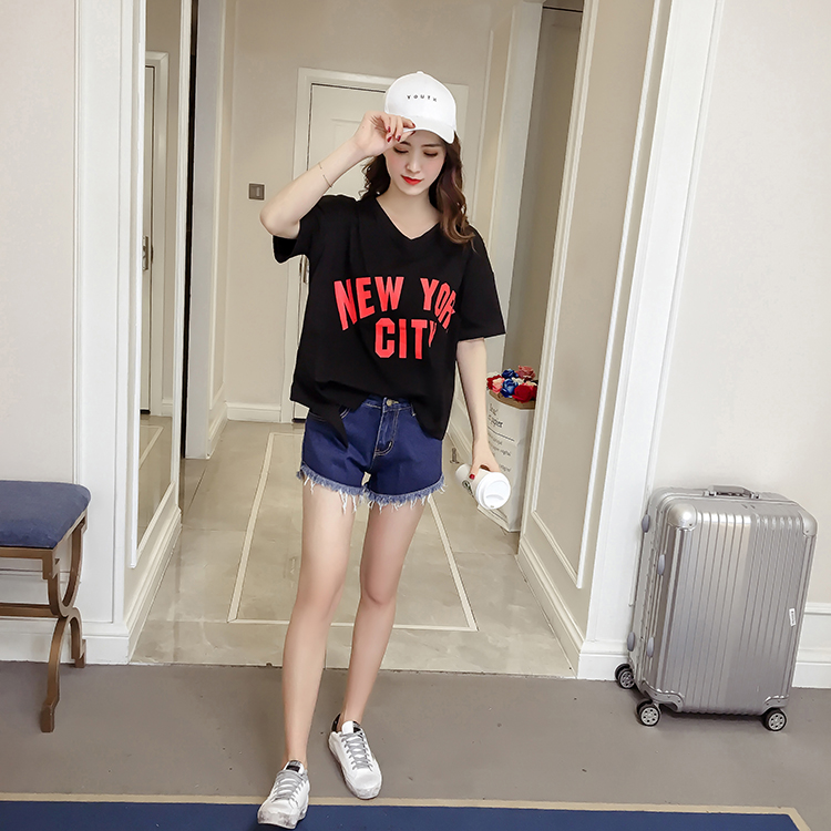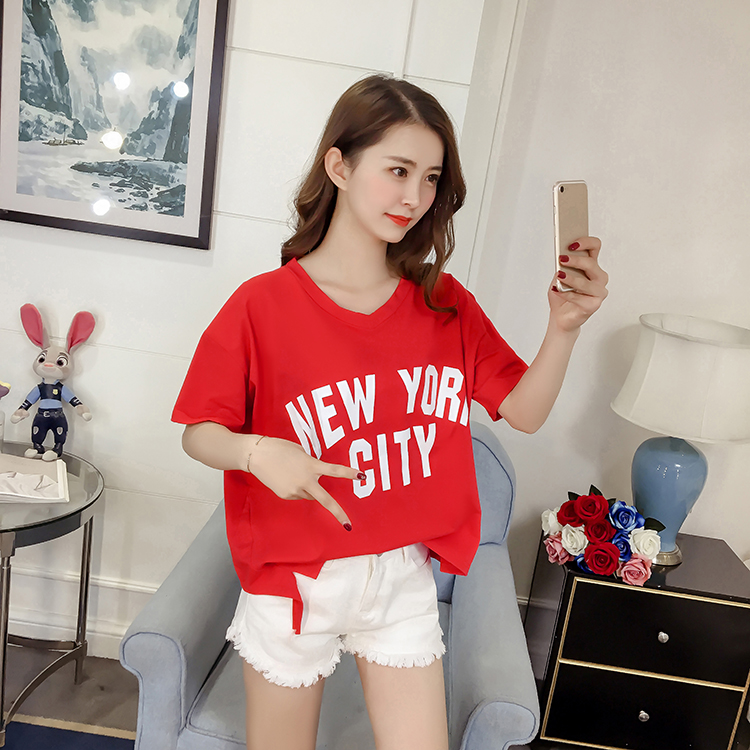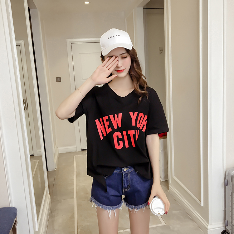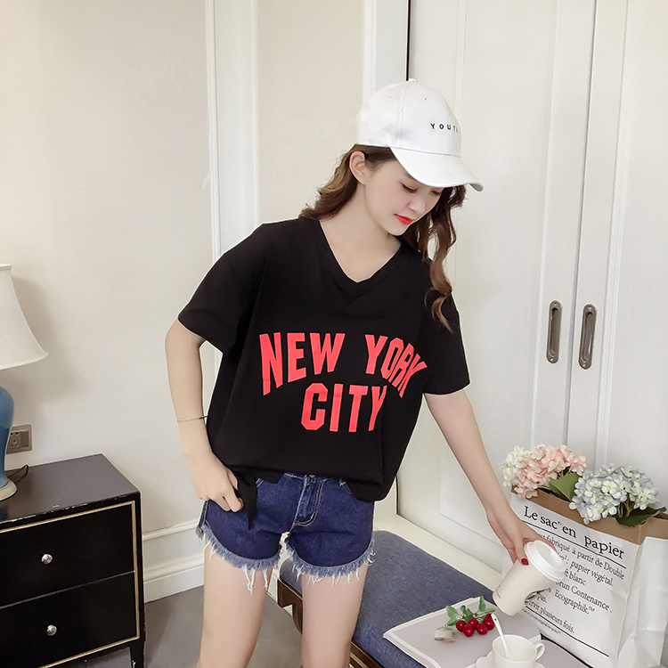 2019夏裝新款女大碼港味網紅短袖t恤女ins潮韓版寬松上衣百搭體恤