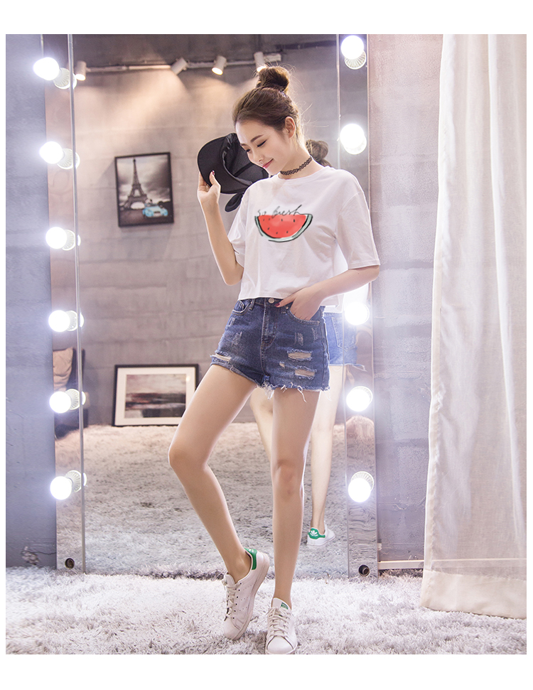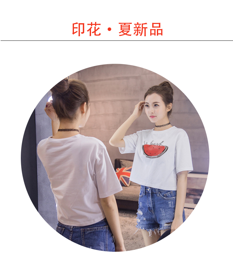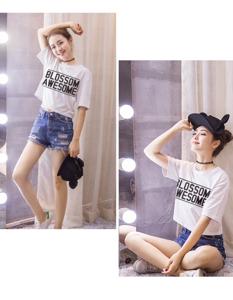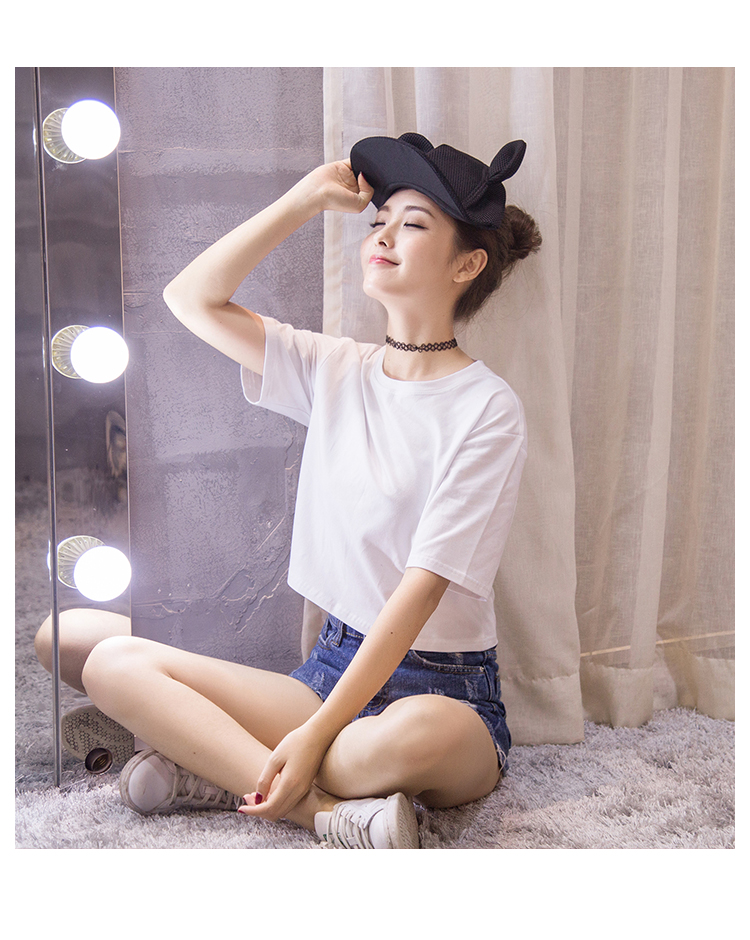 露臍上衣短款白色t恤女短袖學生夏季韓版純棉純色寬松高腰漏肚臍