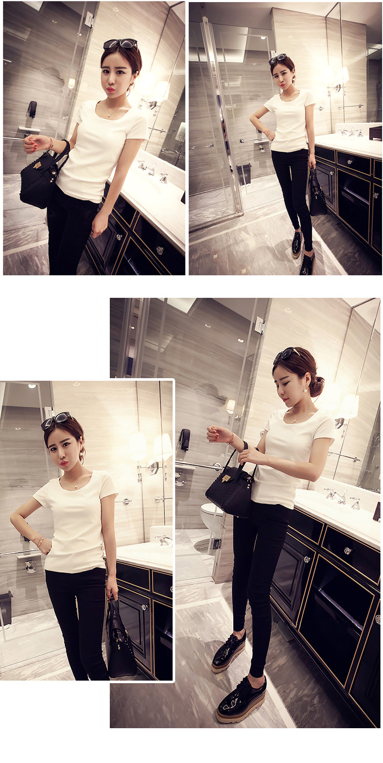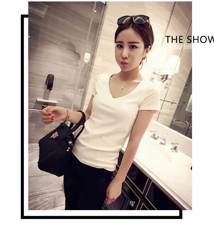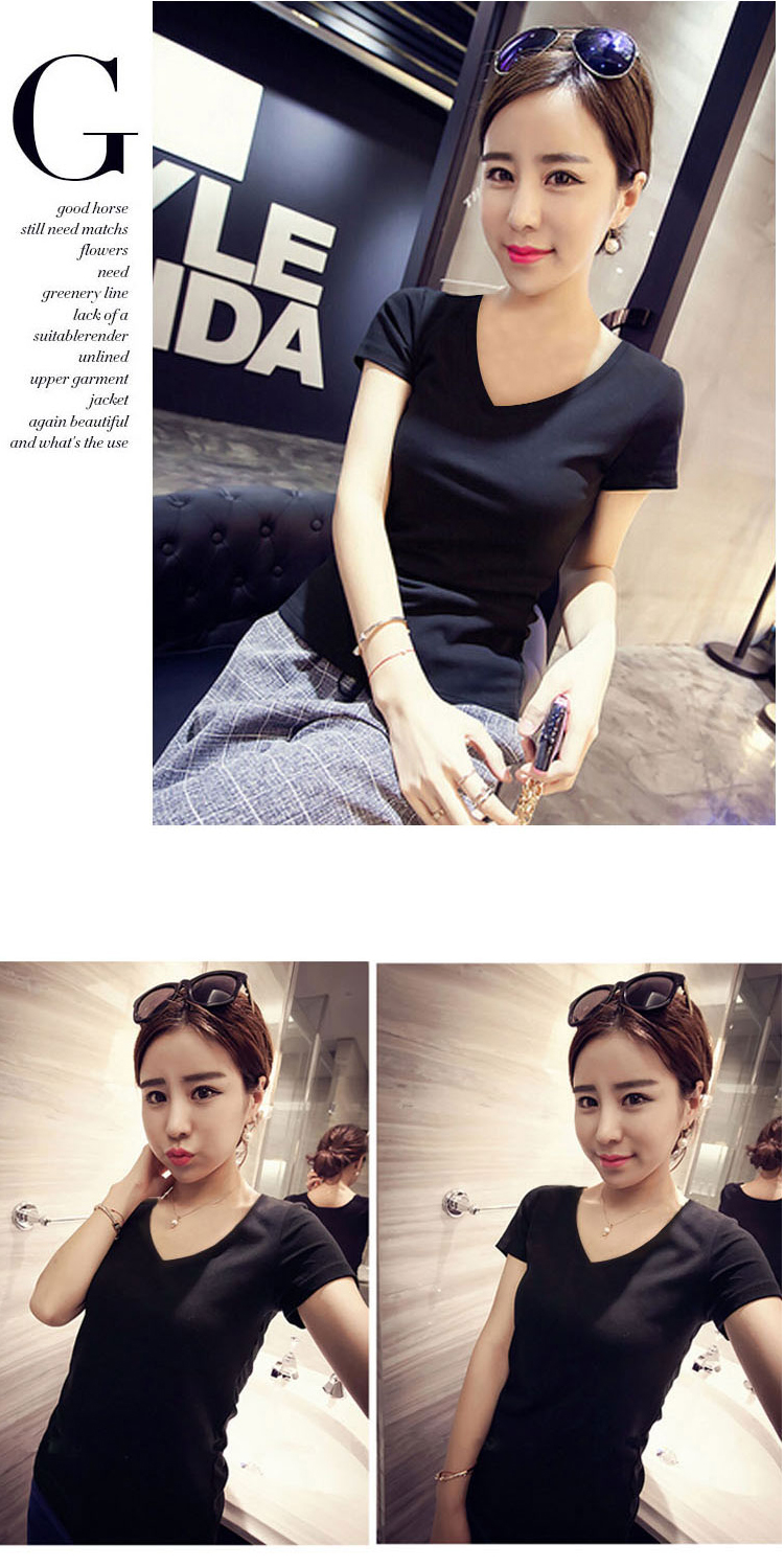 黑色V領t恤女短袖2019新款百搭半袖夏棉修身韓版純色大碼打底衫潮