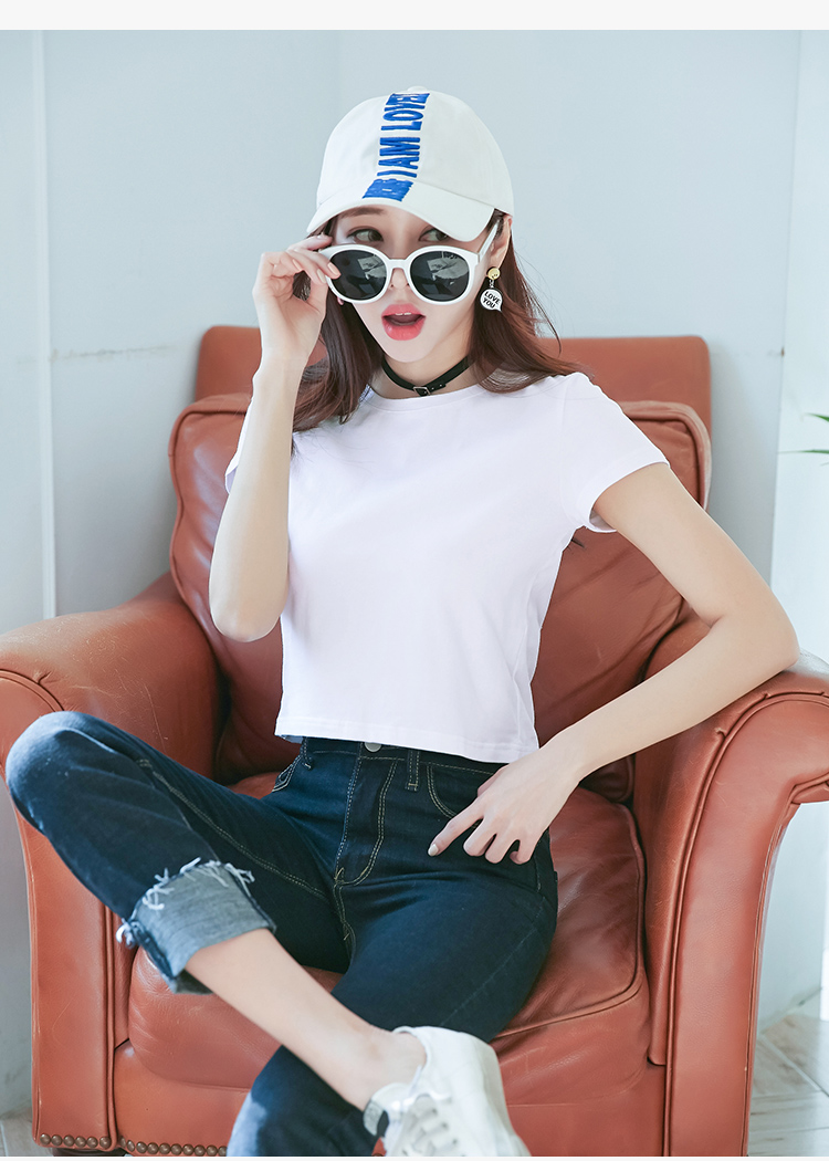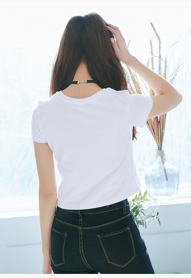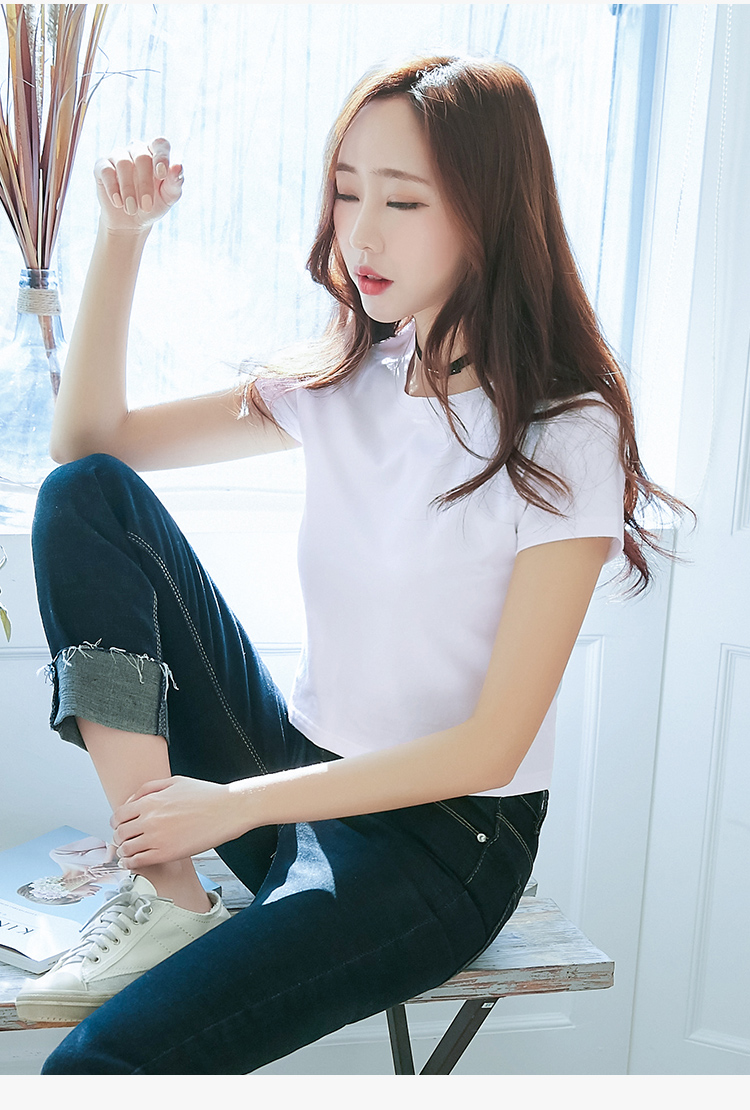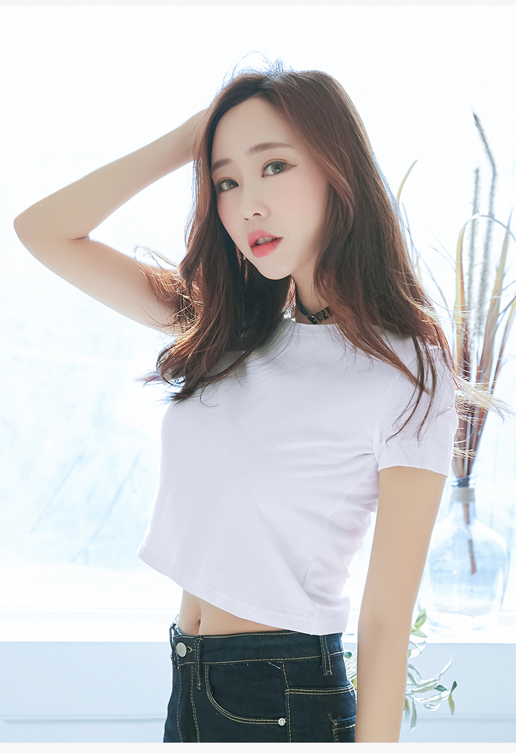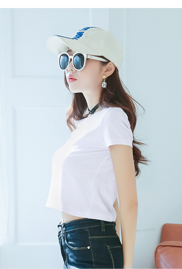 露臍白色t恤女短袖修身學生夏季2019韓版 純棉純色高腰漏肚臍上衣