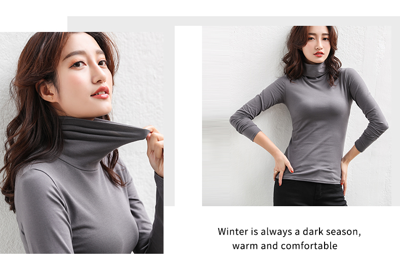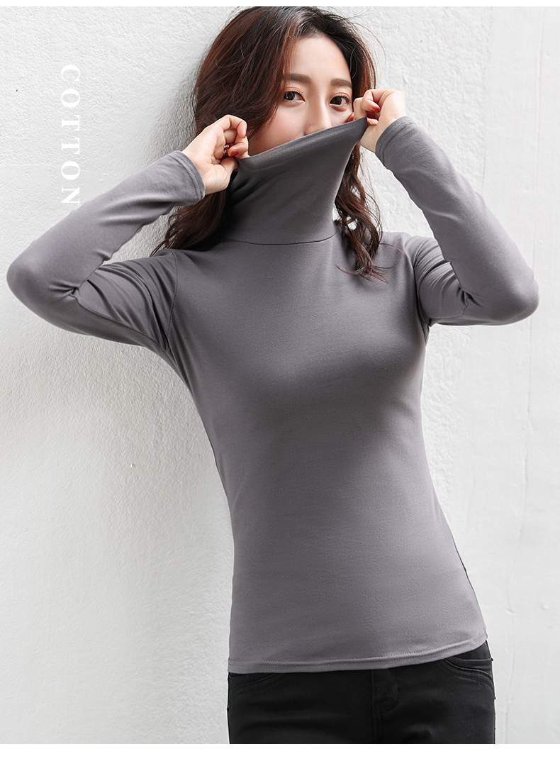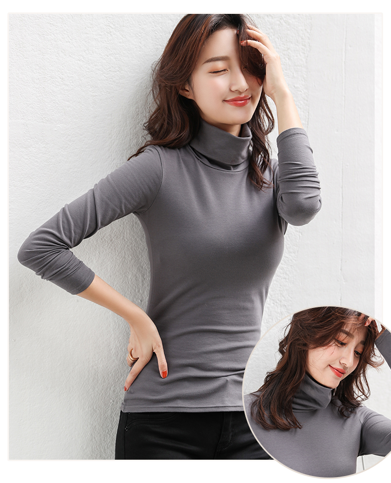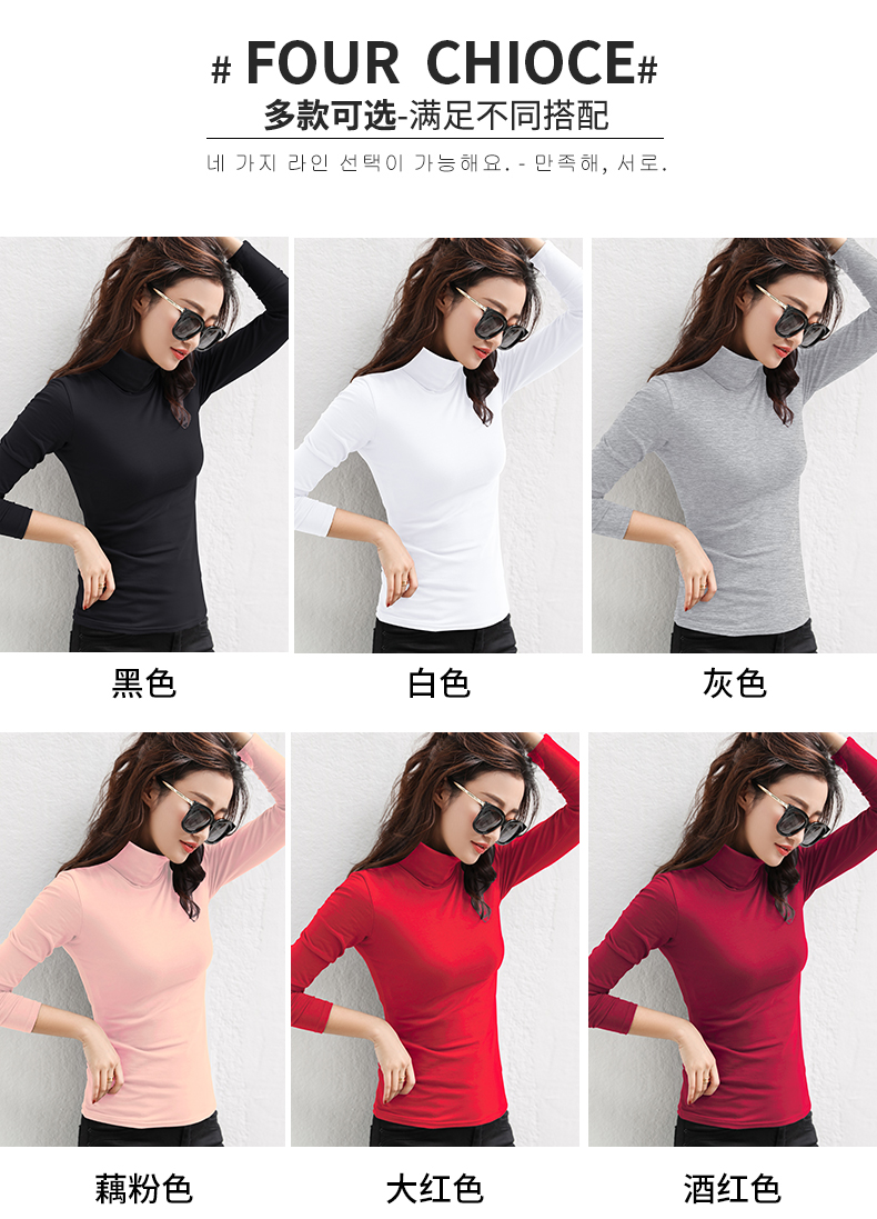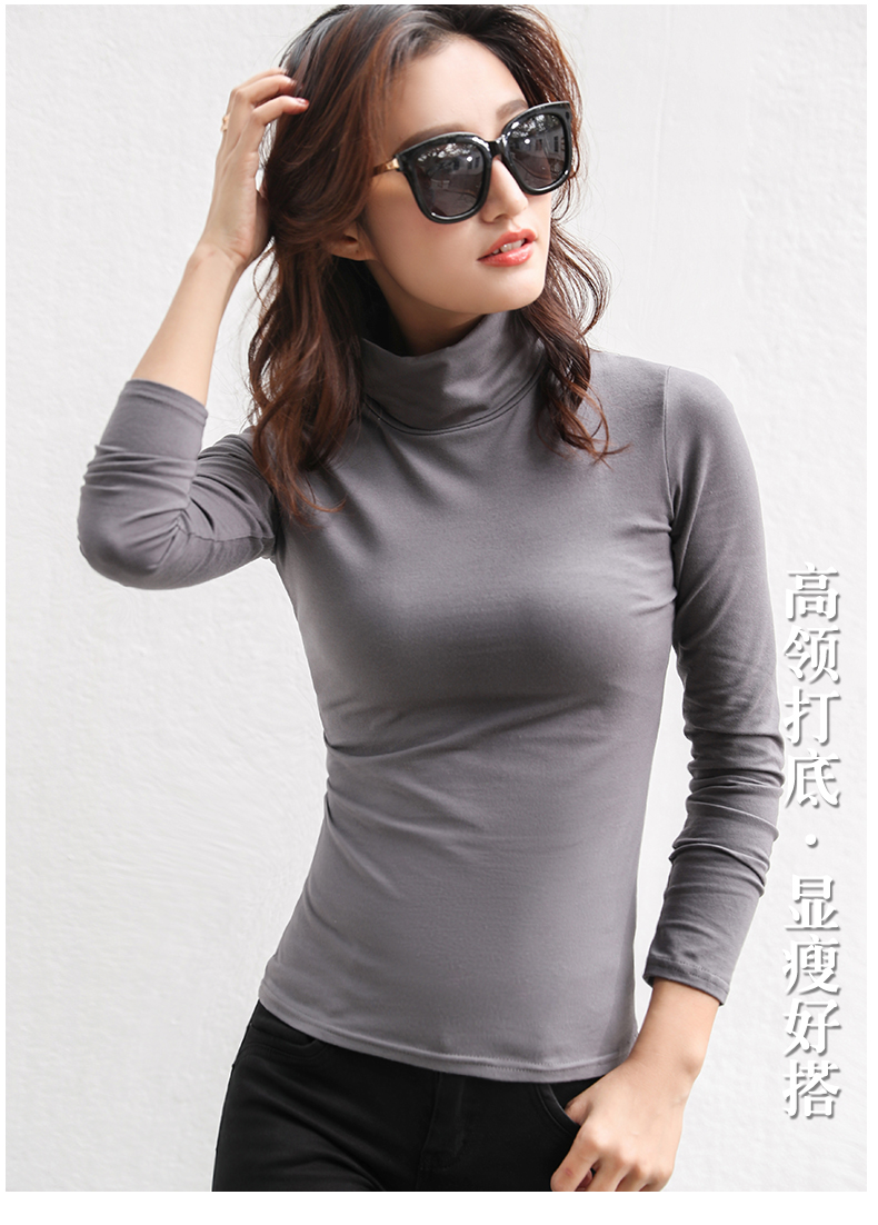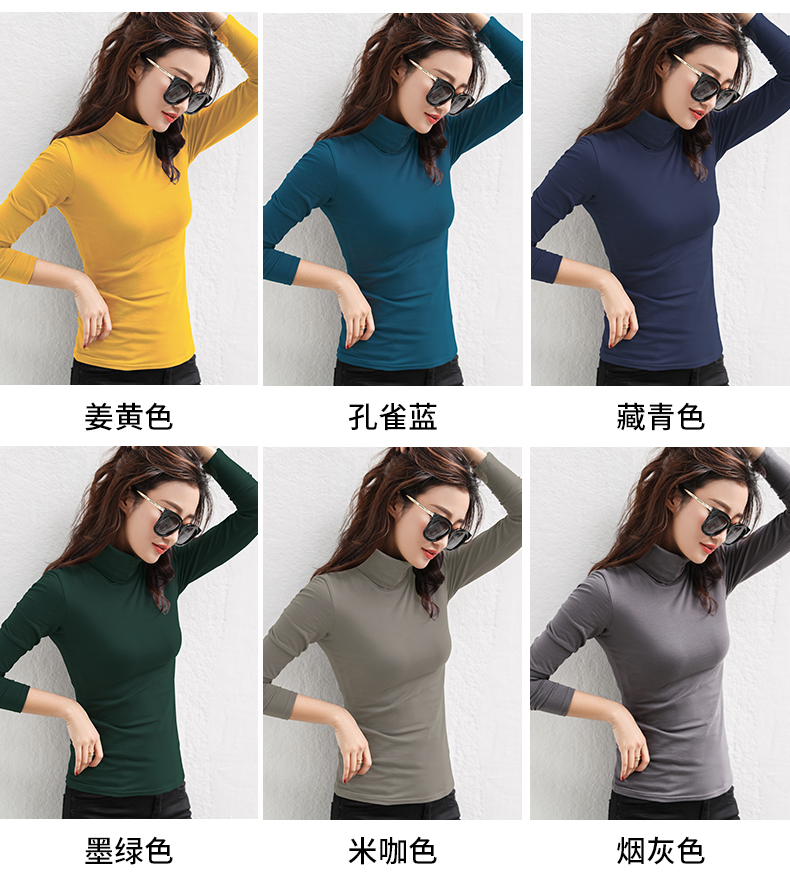 高領打底衫女春秋季長袖T恤2019新款百搭純棉修身大碼女士上衣服