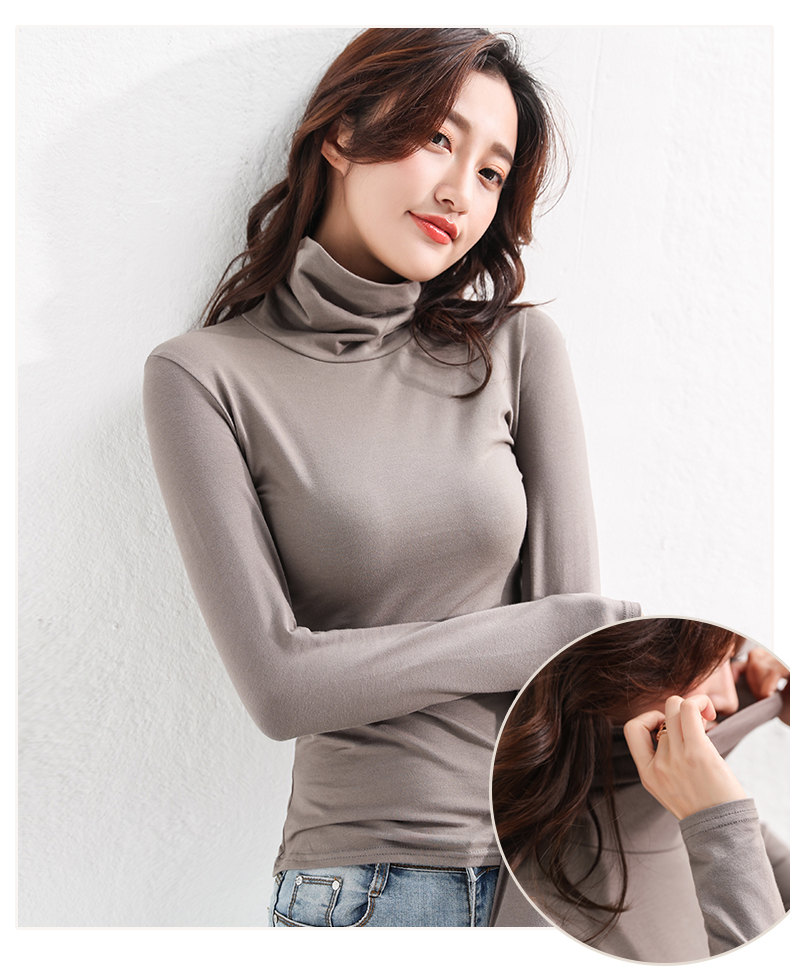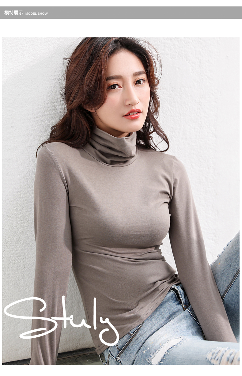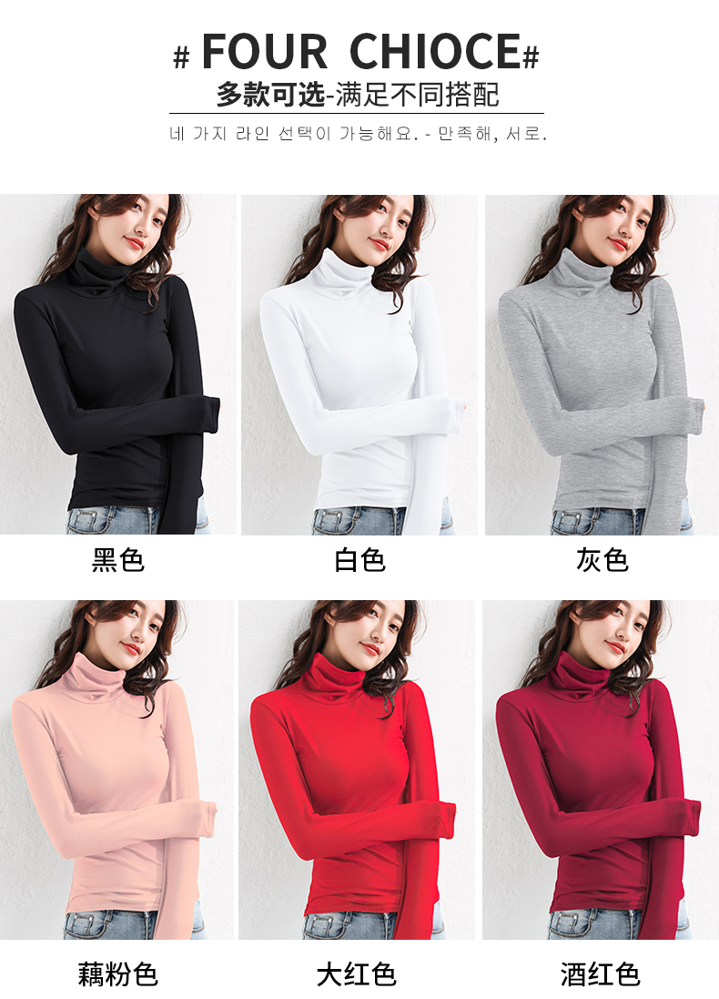 高領打底衫女春秋2019新款修身長袖T恤時尚純棉緊身大碼女士上衣