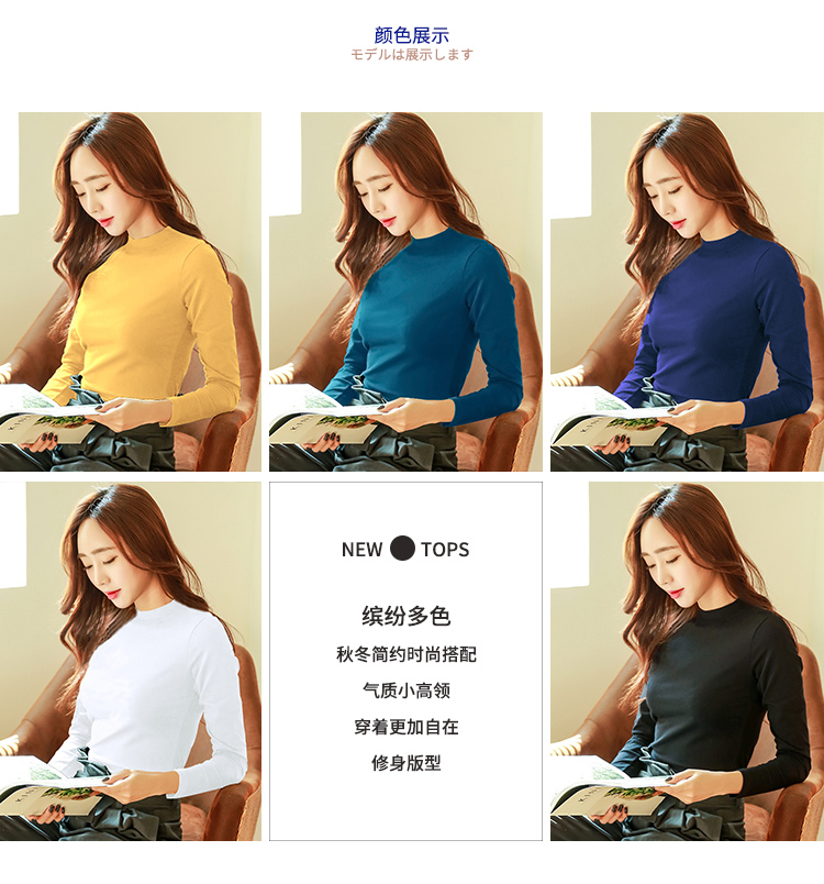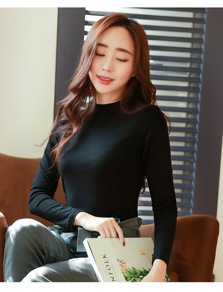 黑色半高領打底衫女長袖春秋2019新款韓版修身白色T恤學生上衣服