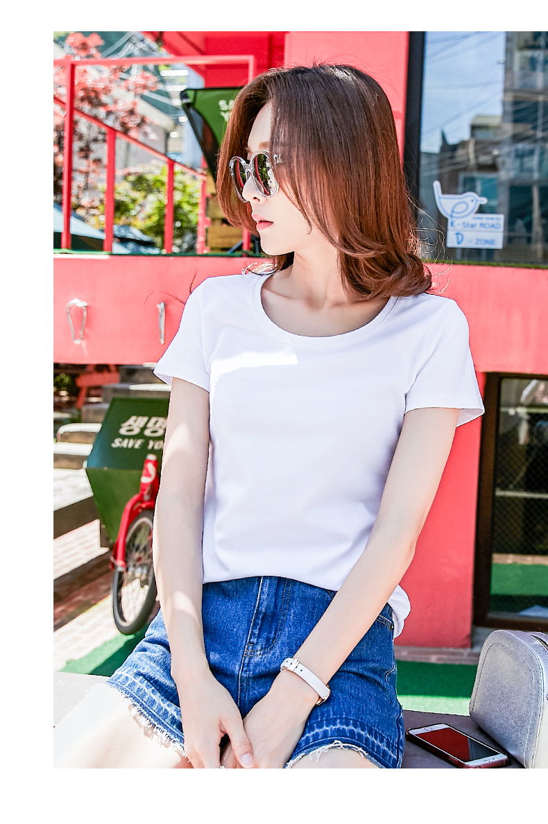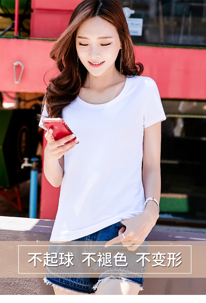 2019夏季新款白色t恤女緊身顯瘦純棉純色韓范半袖學生體恤上衣潮