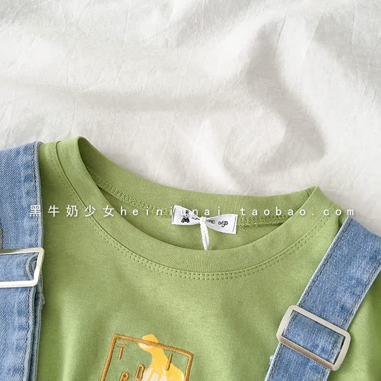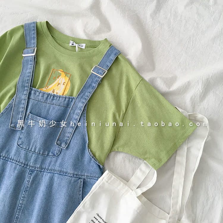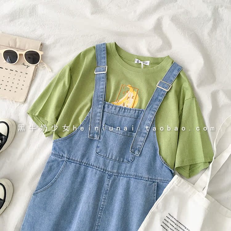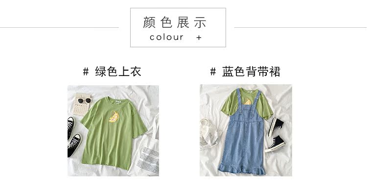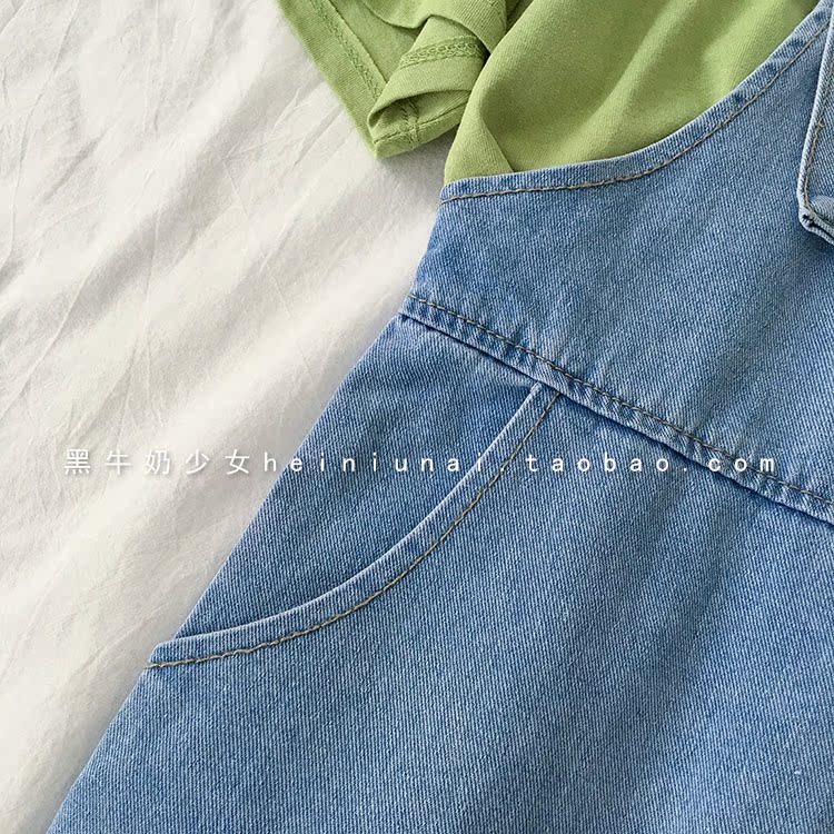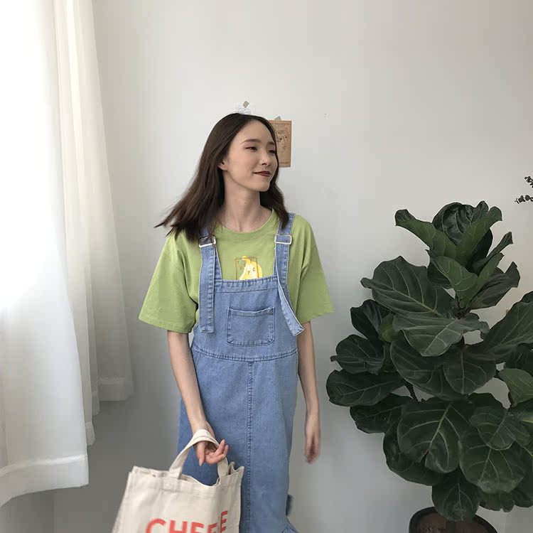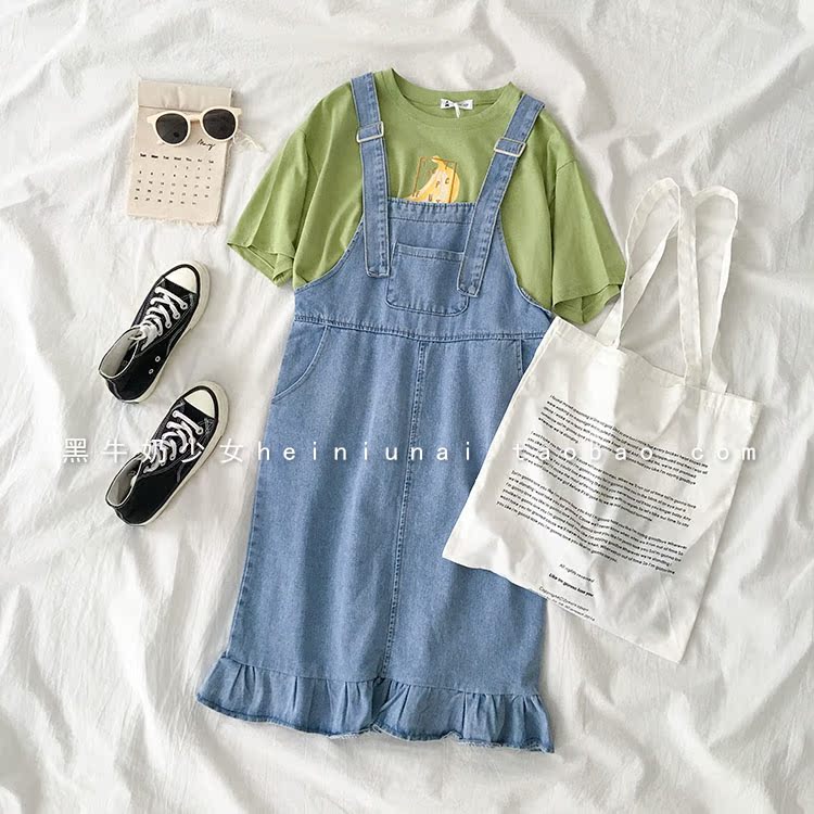 下身是牛仔背帶裙 荷葉邊裙擺 穿出你的小個性