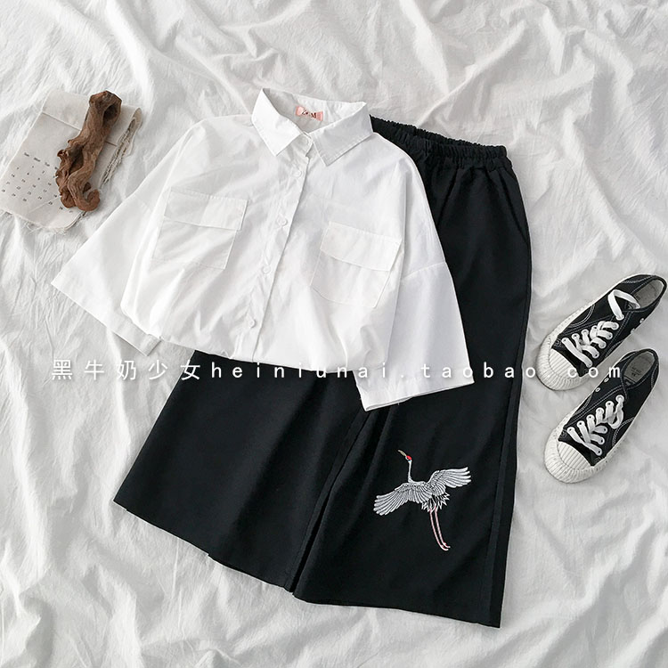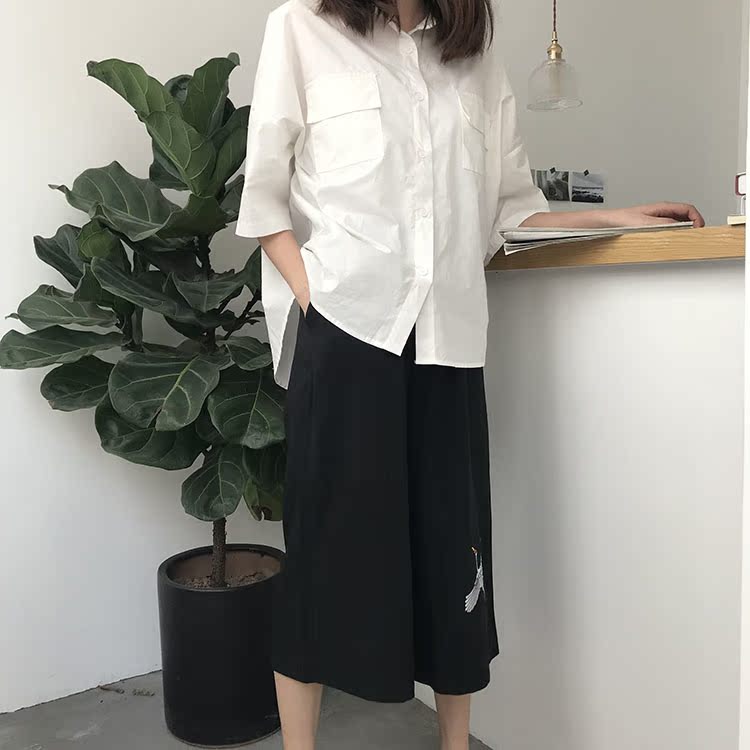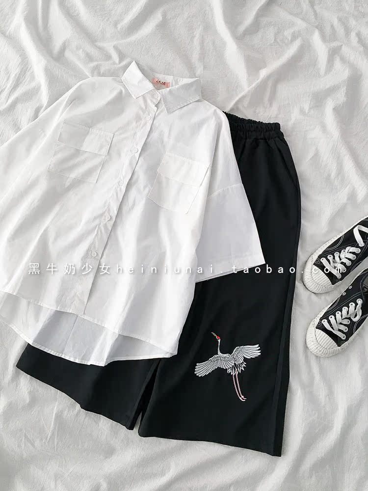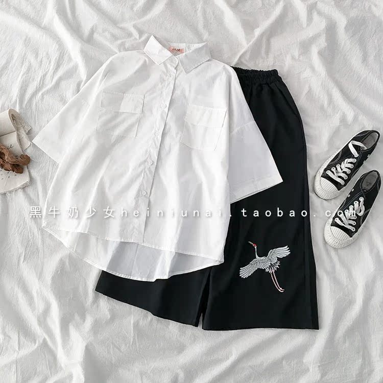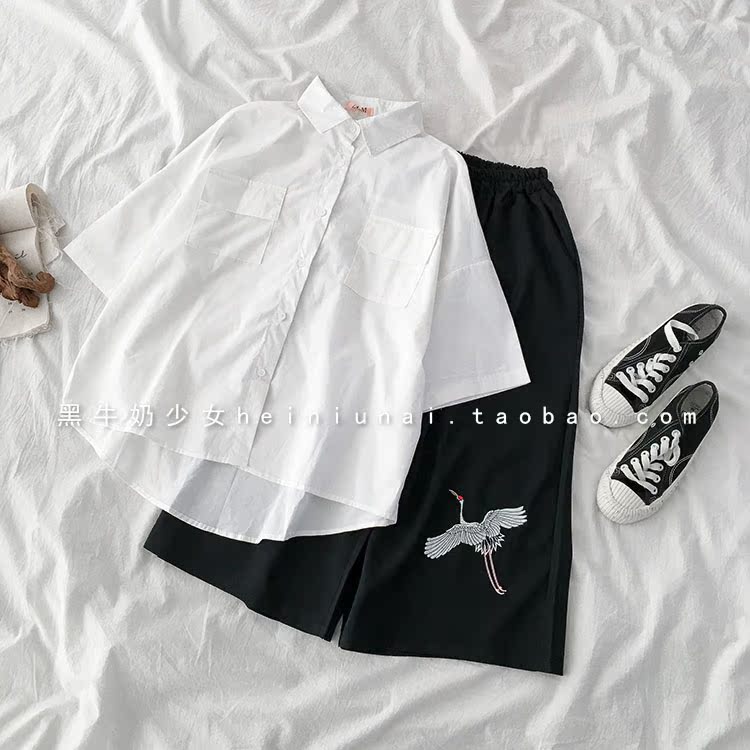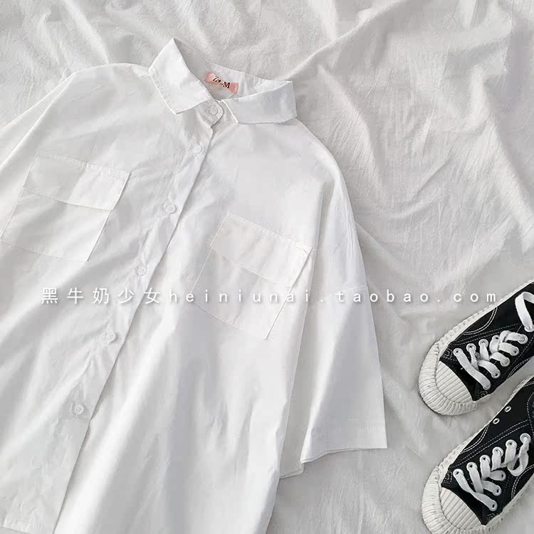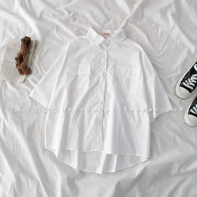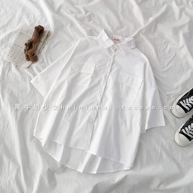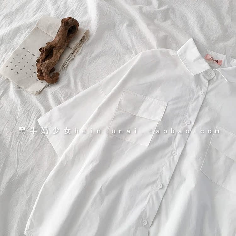 上身是不規則翻領短袖襯衫 外穿內搭都ok