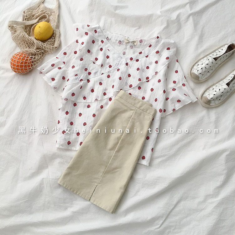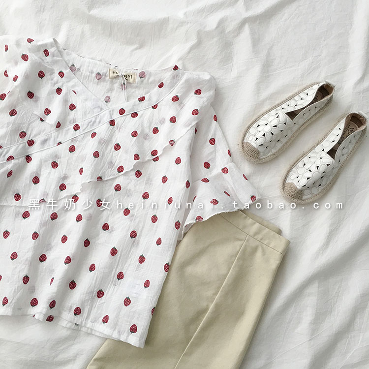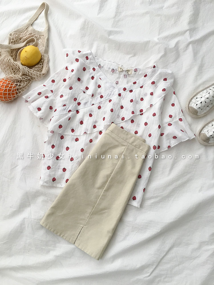 衣上的草莓印花設計灰常美觀