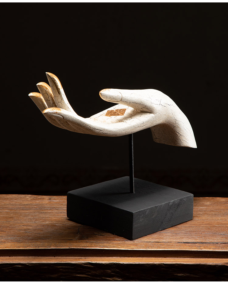 泰國木質佛頭桌面裝飾擺件 東南亞手工木雕佛手擺件居家飾品擺設