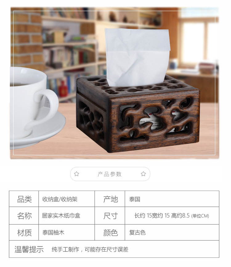 泰國復古實木紙巾盒客廳裝飾木質抽紙盒新中式木制紙抽盒餐巾紙盒