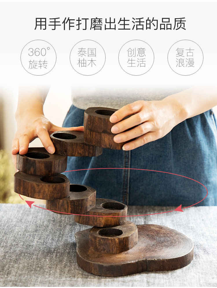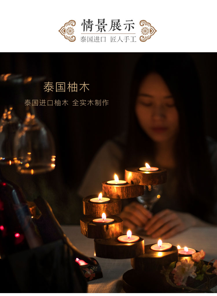 進口個性創意泰國正品實木多層燭臺 情人節浪漫西餐裝飾燭臺擺件