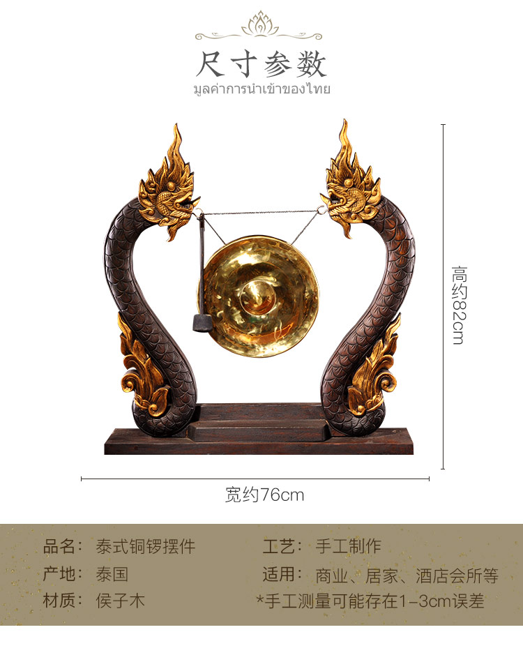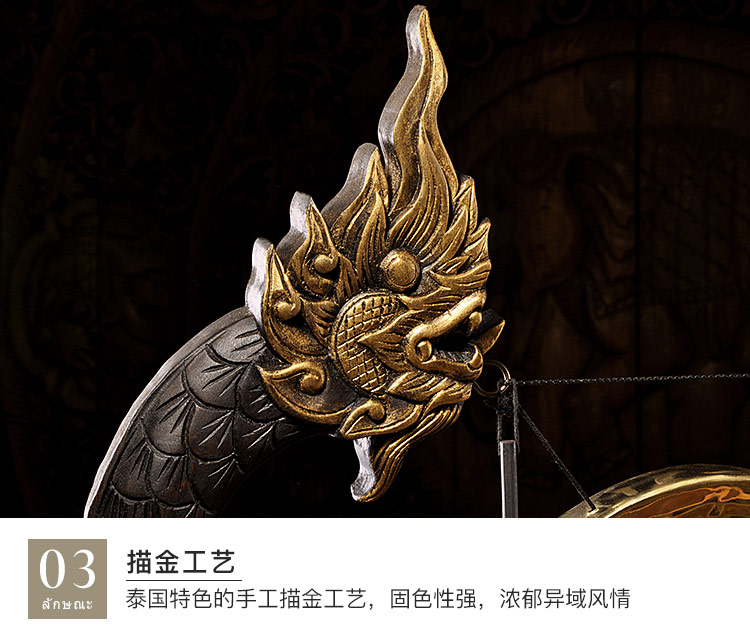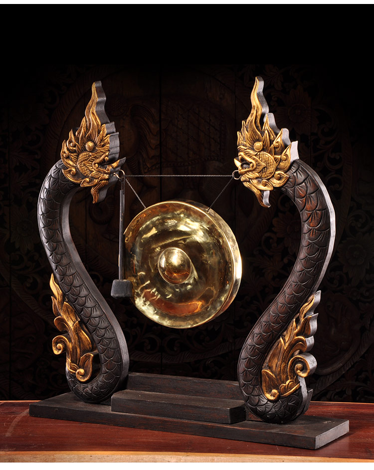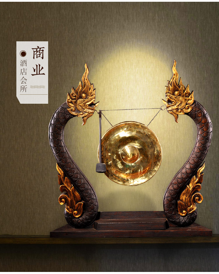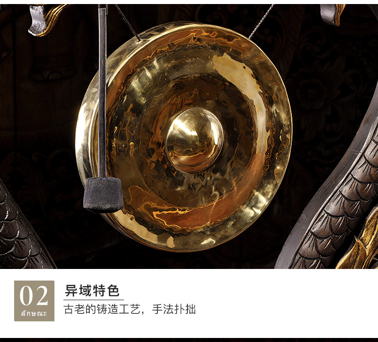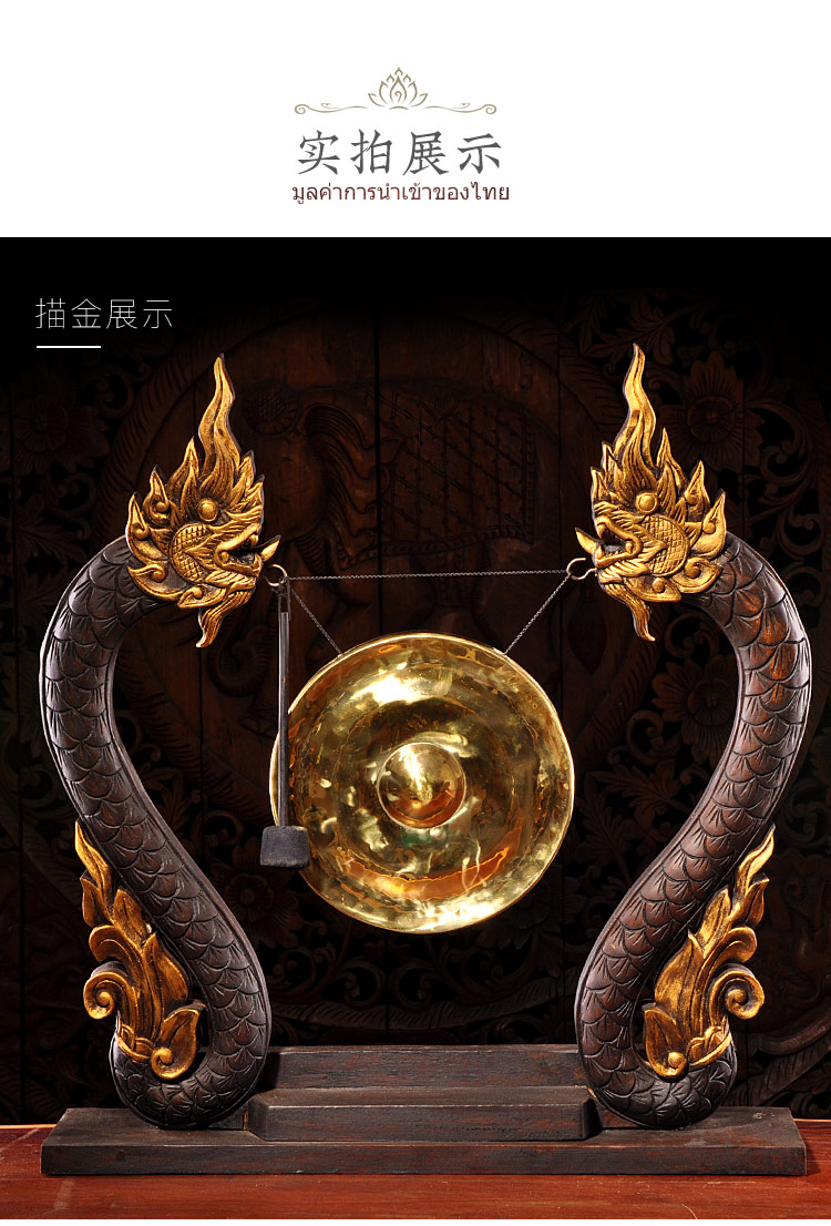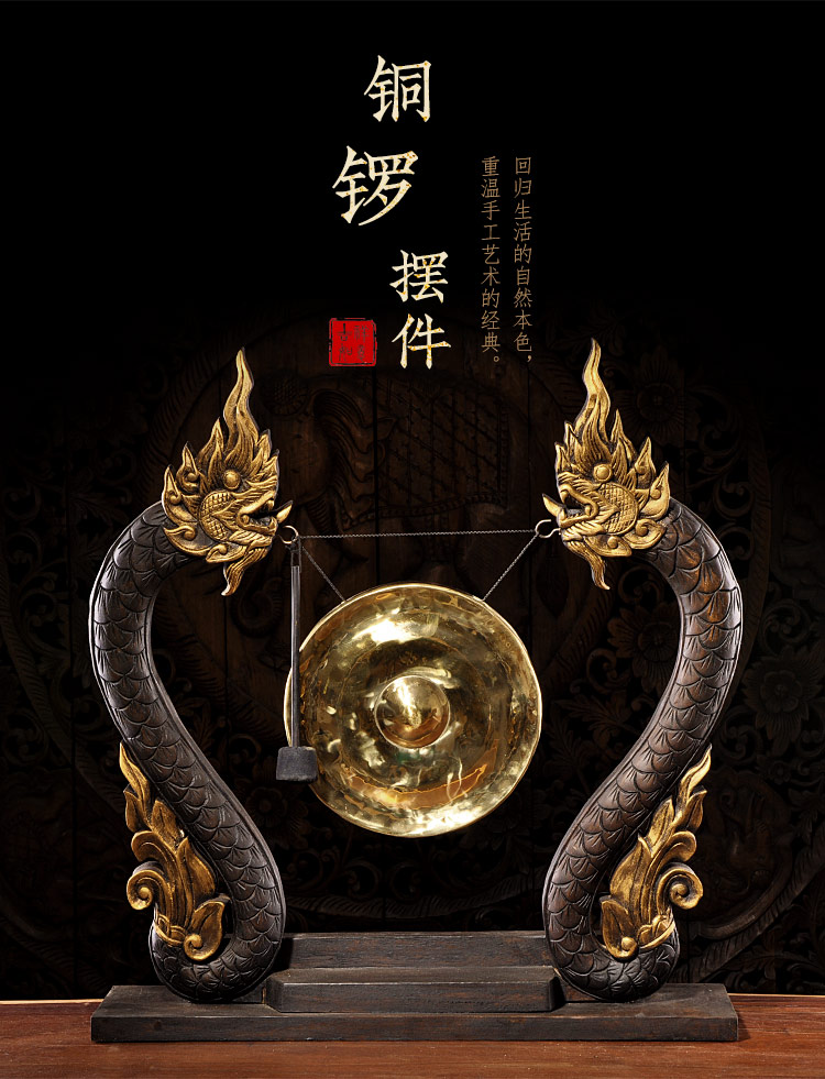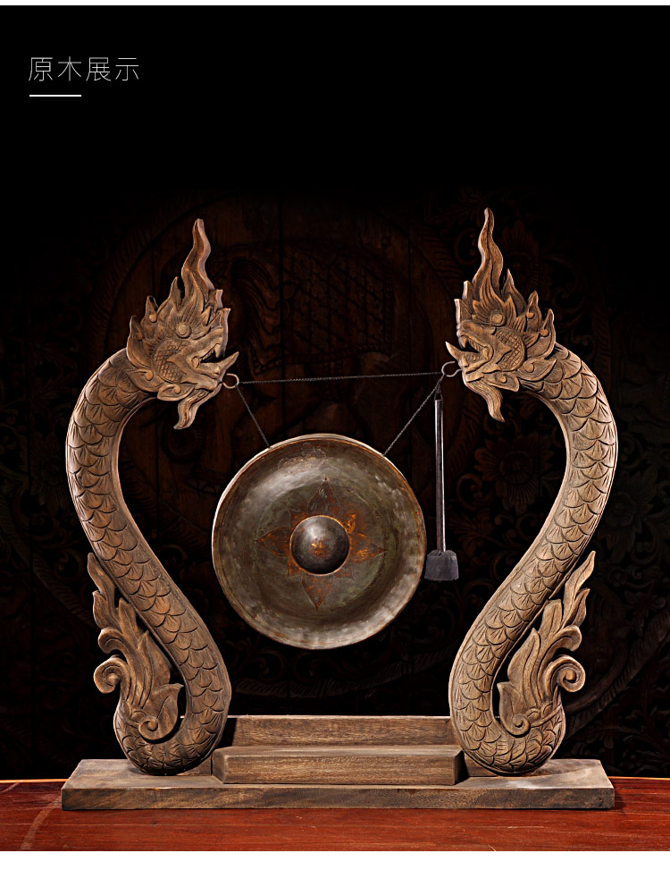 泰國木雕東南亞木制銅鑼居家桌面擺設 門廳創意工藝品大擺件