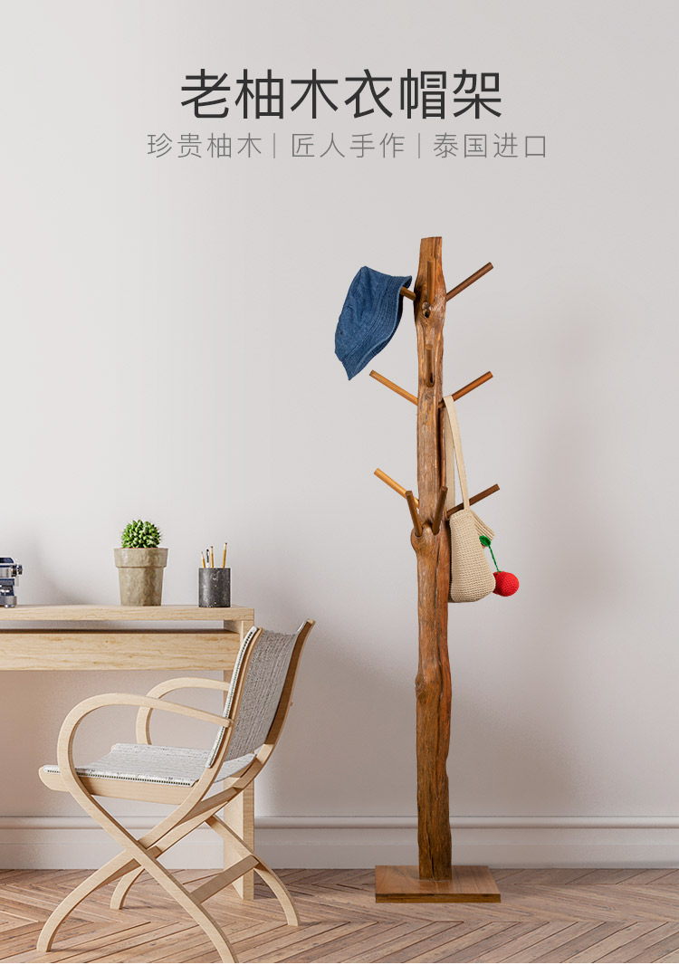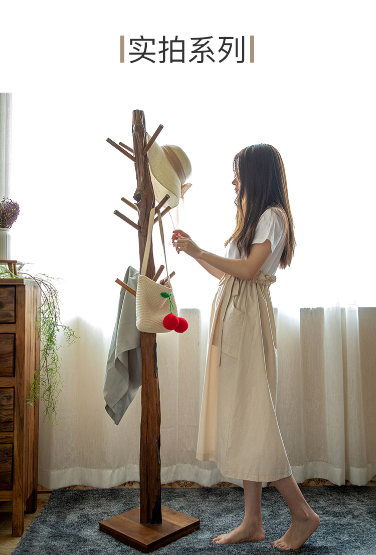 實木衣帽架簡約現代掛衣架落地簡易衣服架子臥室整理架客廳收納架