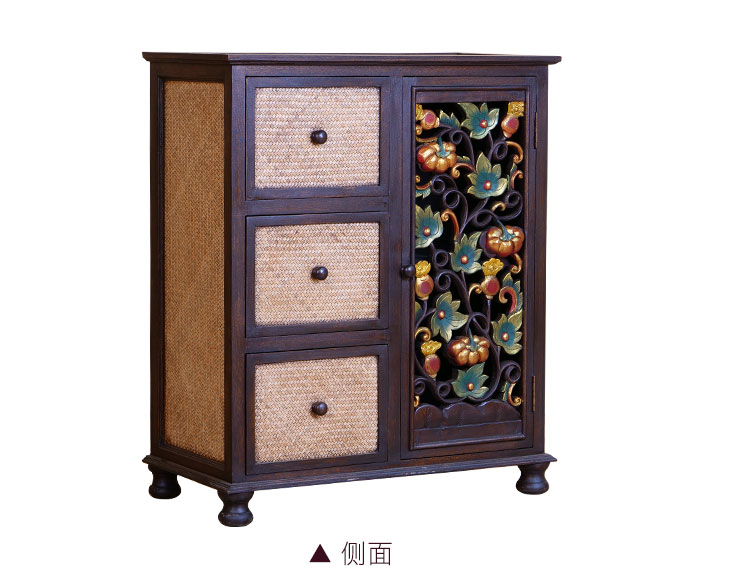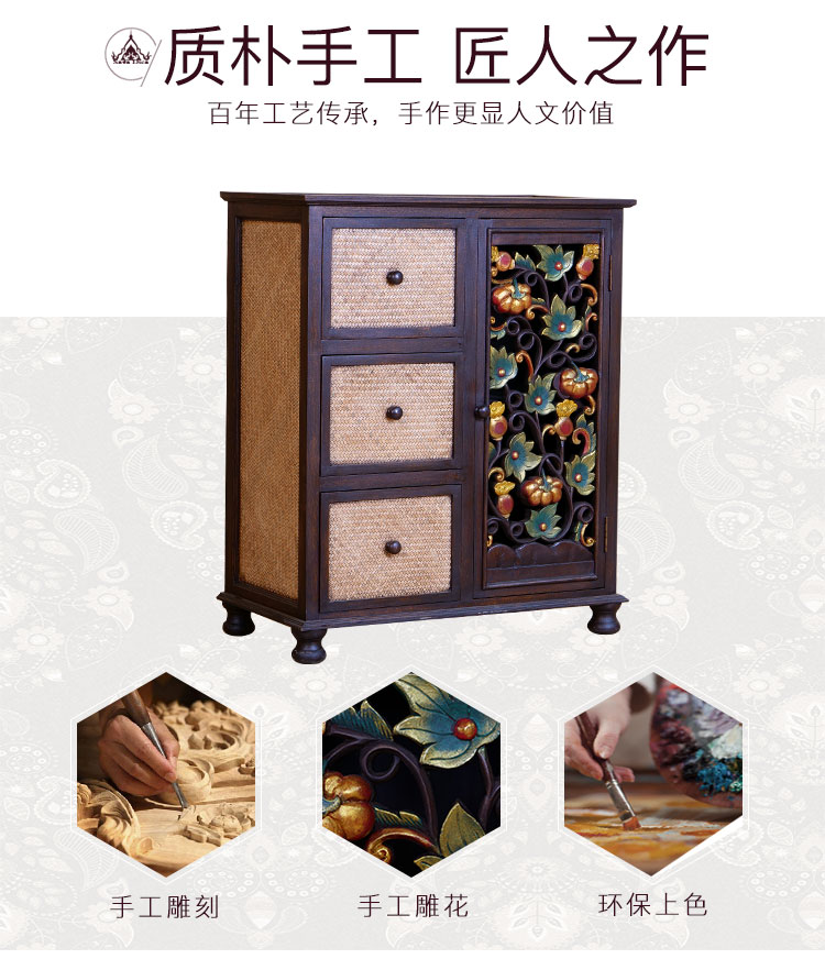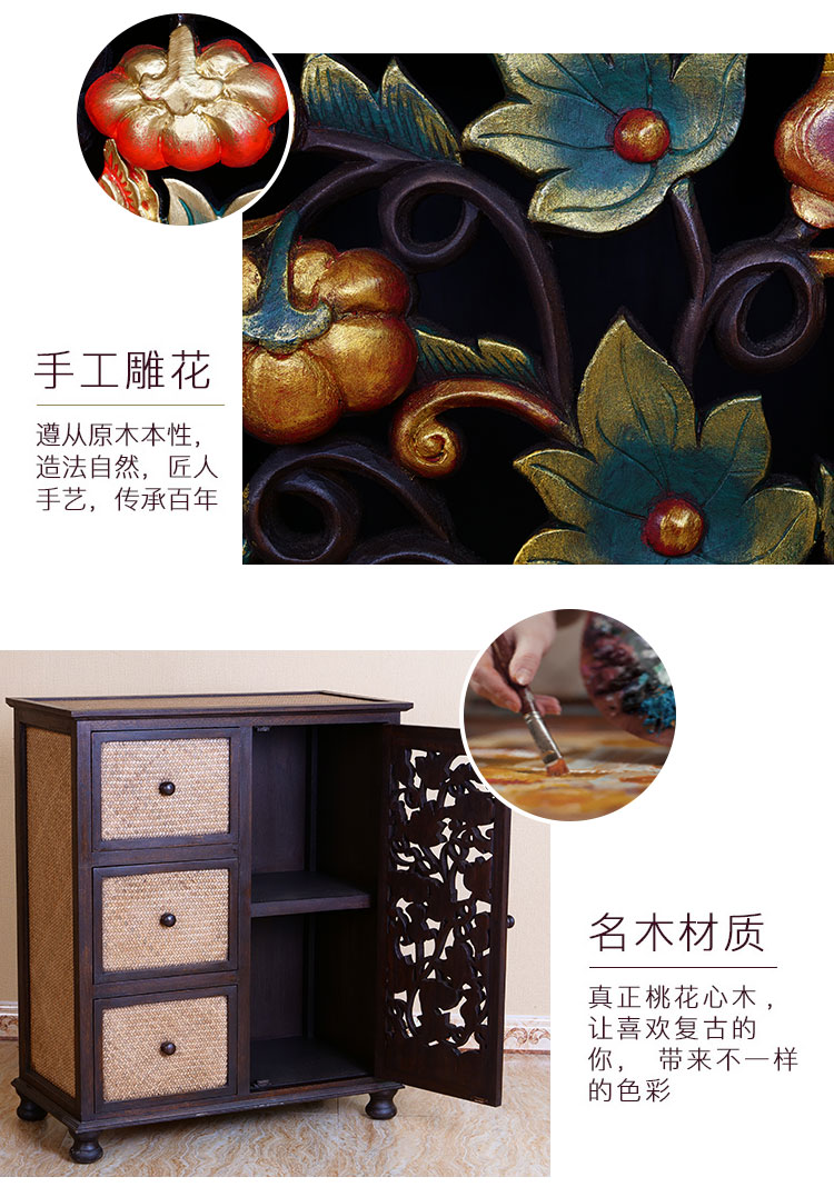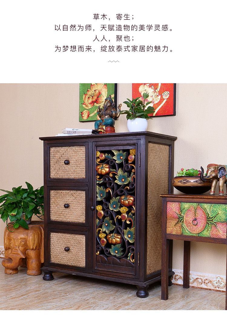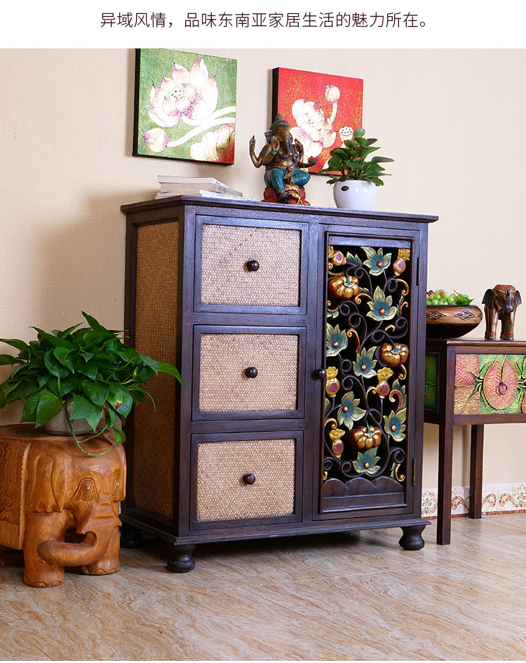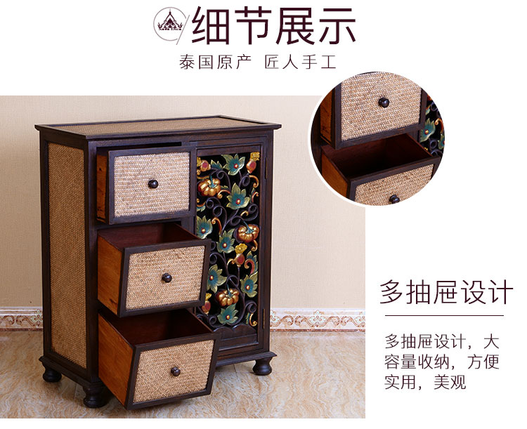 實木東南亞收納柜儲物柜整裝復古斗柜做舊泰式客廳陽臺柜抽屜柜子