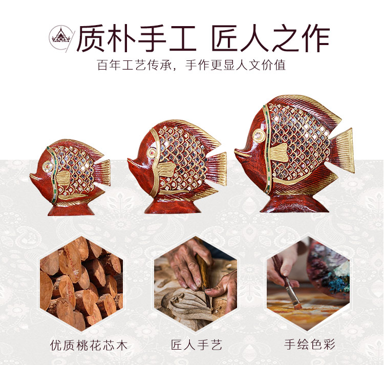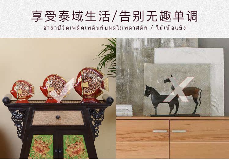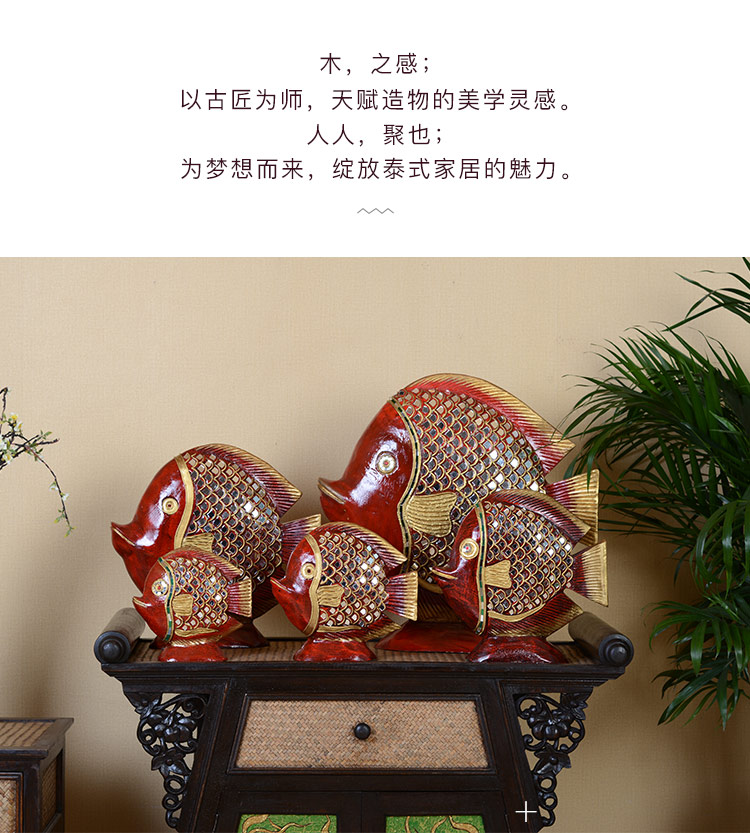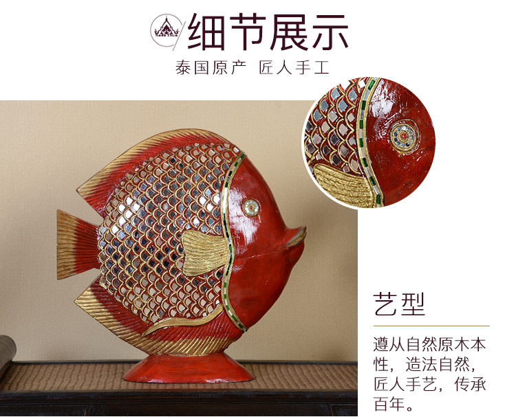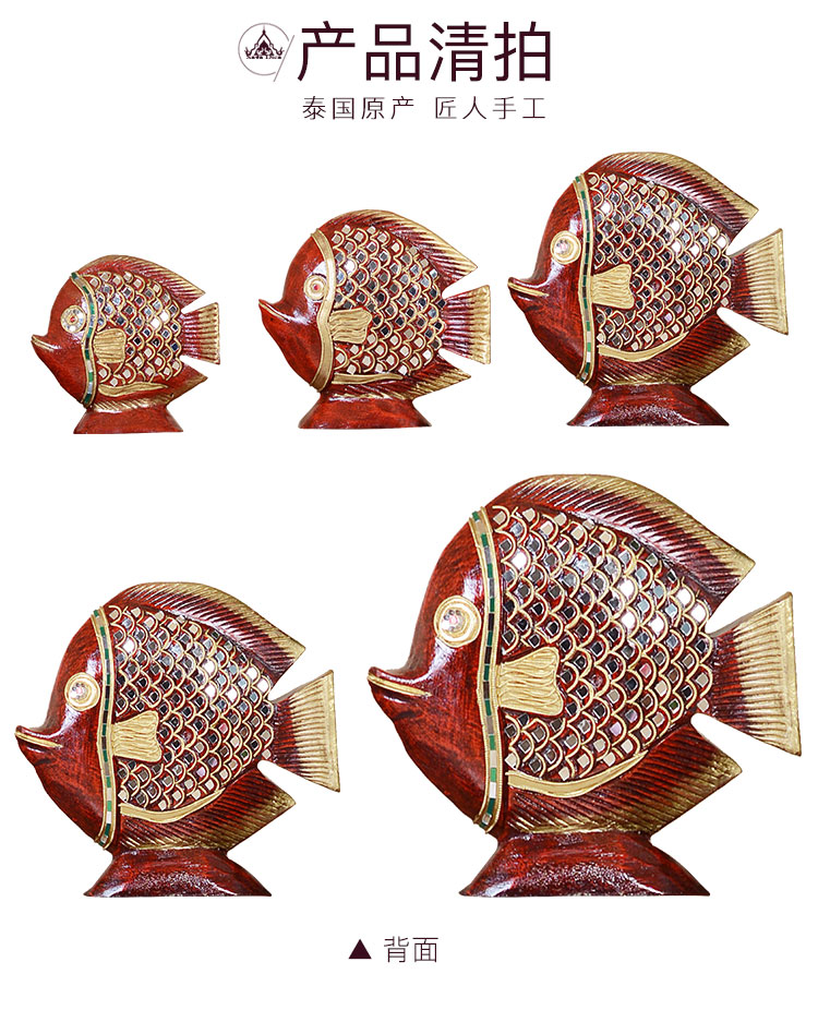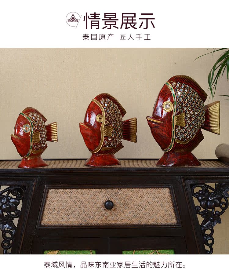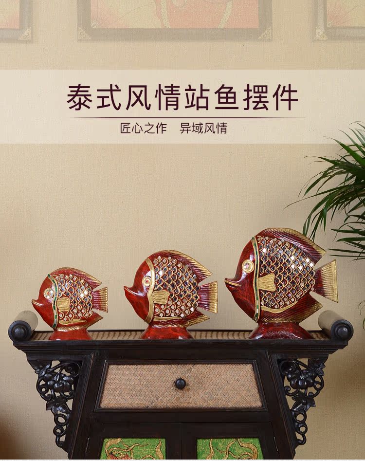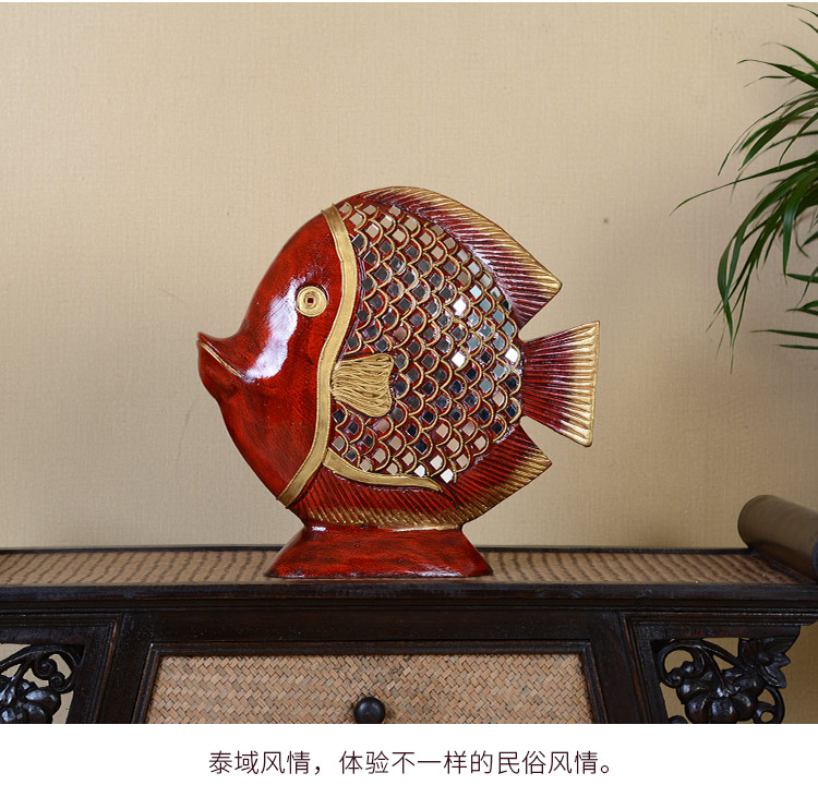 高檔泰式擺件創意家居裝飾品實木工藝品電視柜金魚擺件結婚禮物