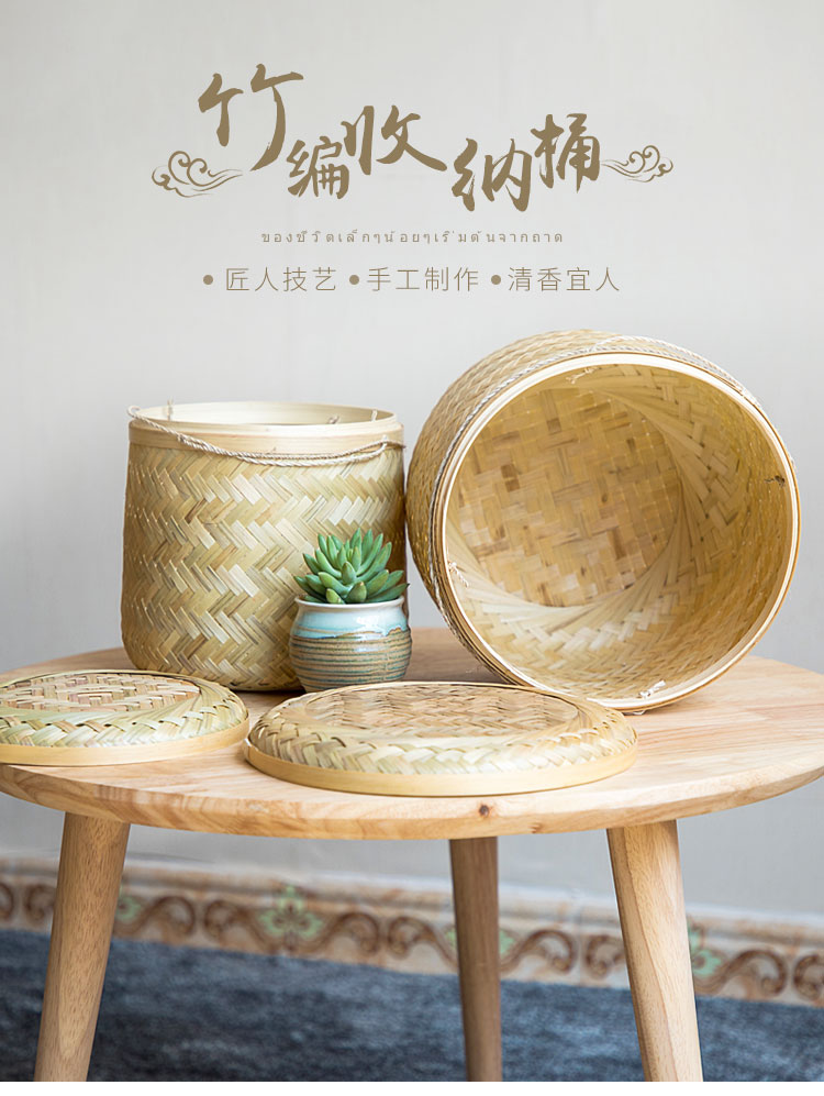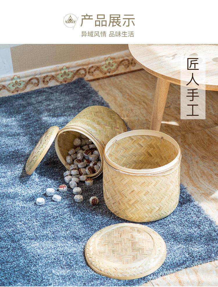 越南手工竹編收納筐儲物籃手工收納盒收納毛巾雜物盒茶葉盒