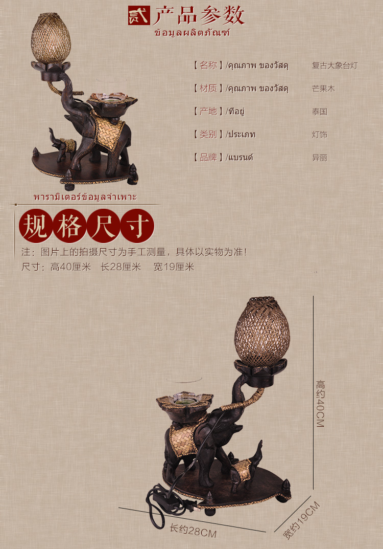 泰國大象臺燈創意個性東南亞風格新中式臥室床頭裝飾個性藝術臺燈