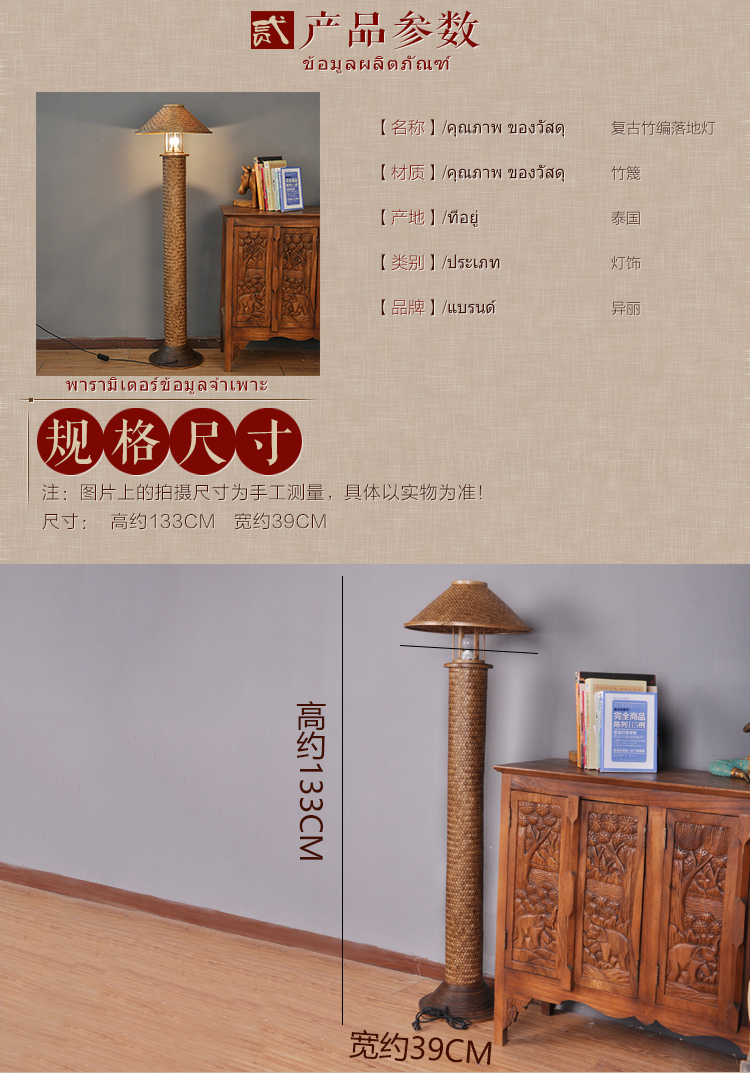 東南亞燈具餐廳客廳創意落地燈泰式竹藝燈竹編落地燈工程竹燈