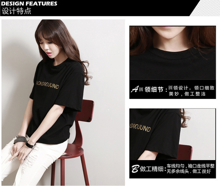 2019夏季女裝新款字母印花短袖t恤純棉半袖休閑體恤韓版寬松上衣