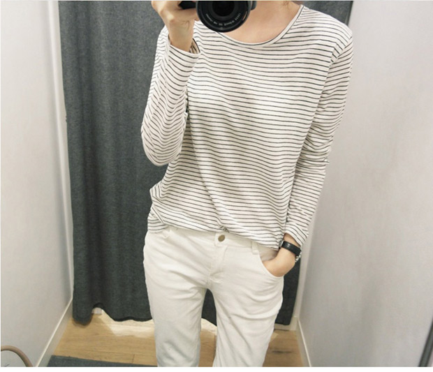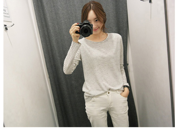 2019秋裝新款大碼百搭寬松純棉打底衫韓版學生女長袖t恤條紋上衣