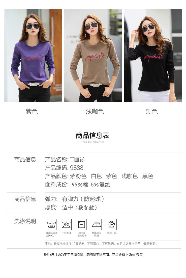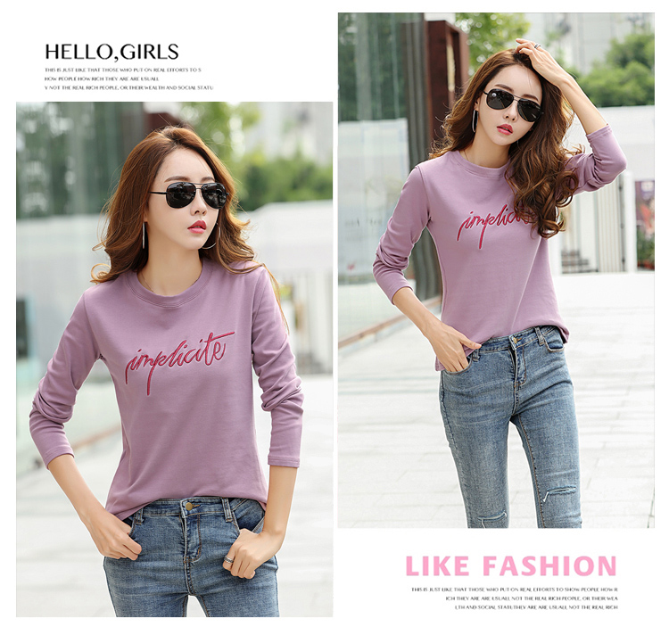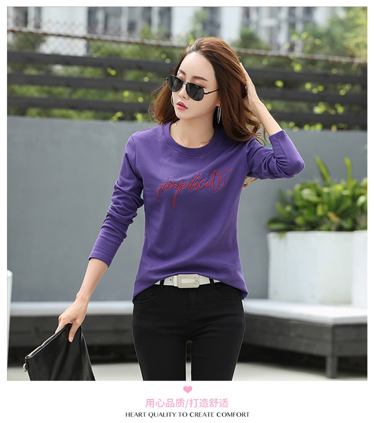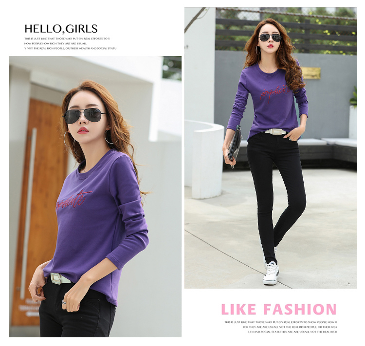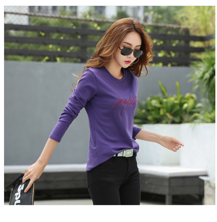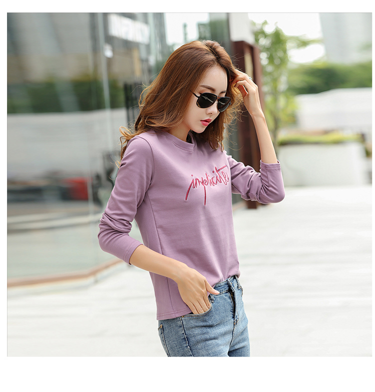 2019春秋新款女裝修身打底衫女秋季韓版百搭長袖t恤紫色上衣小衫