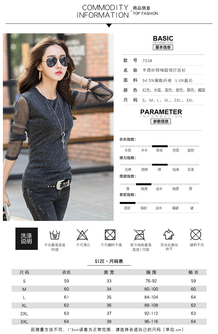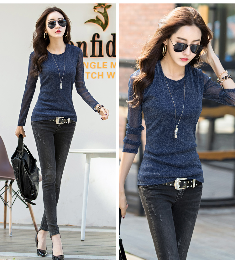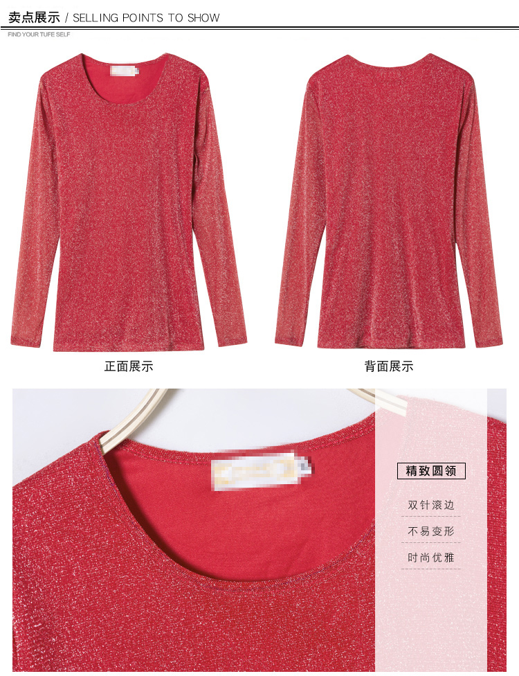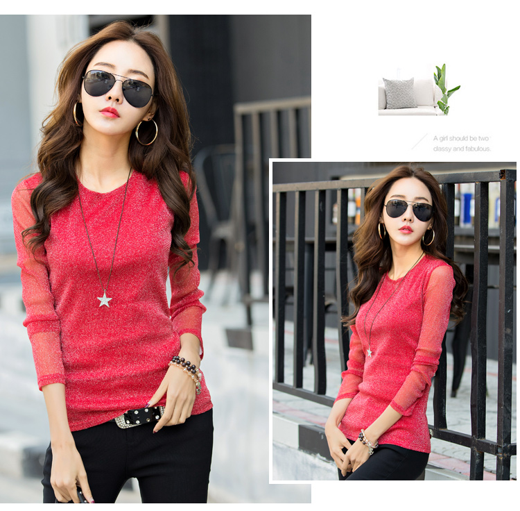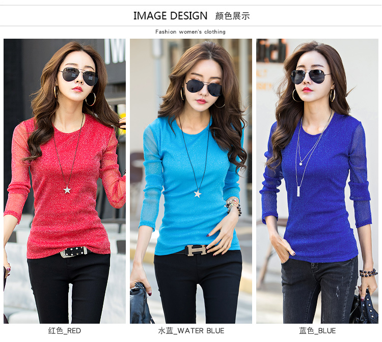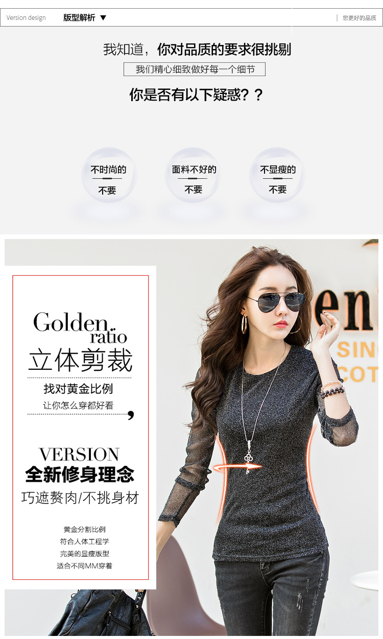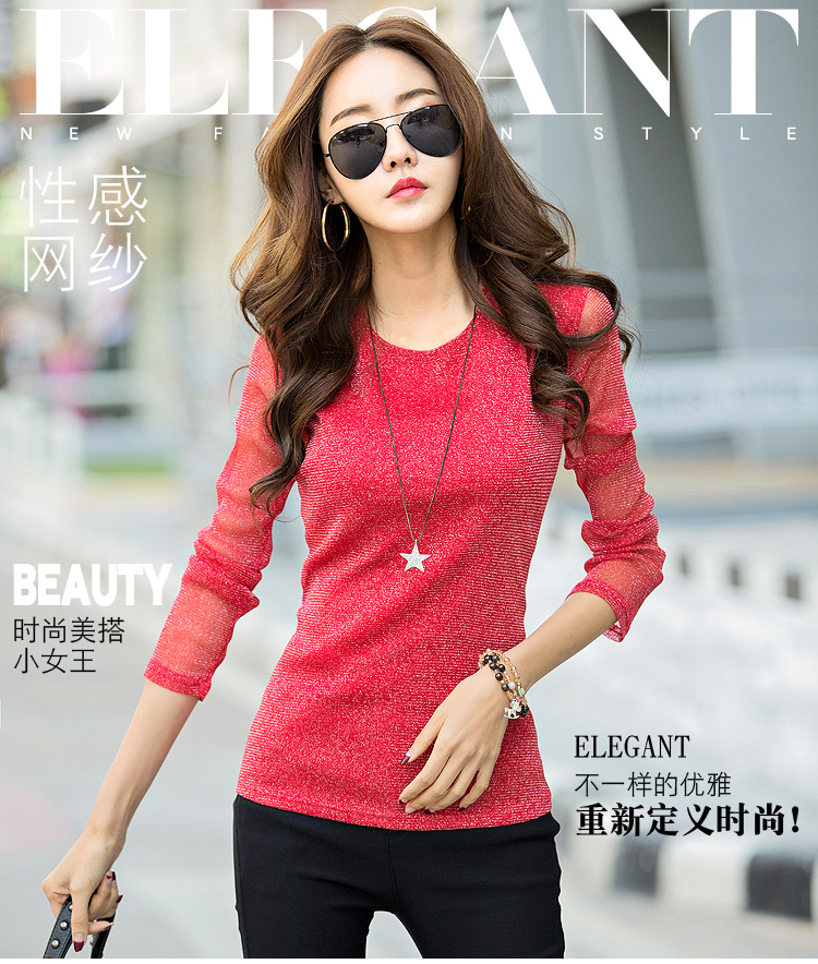 2019秋裝新款女裝韓版亮絲打底衫修身網紗長袖t恤胖妹妹大碼體恤
