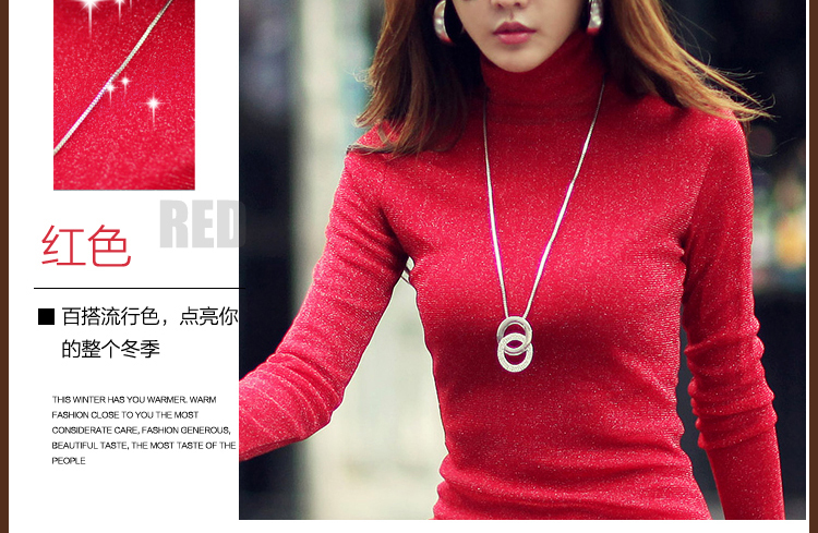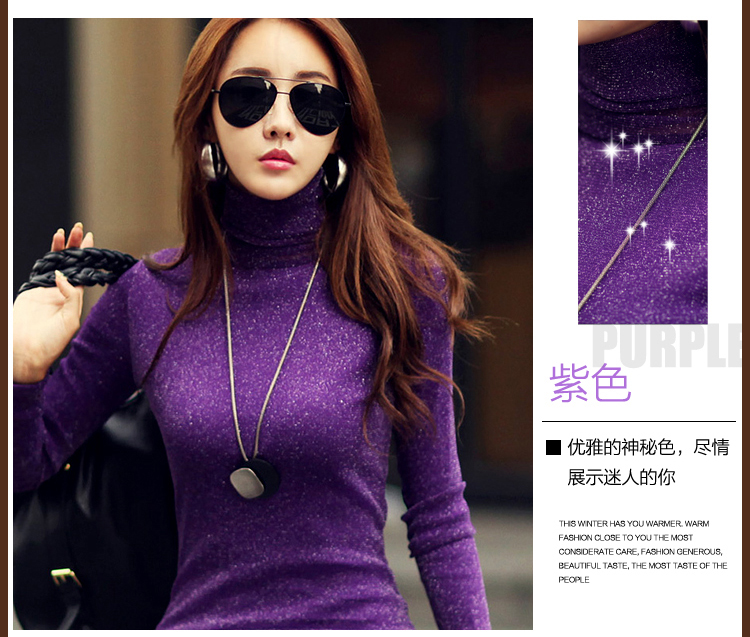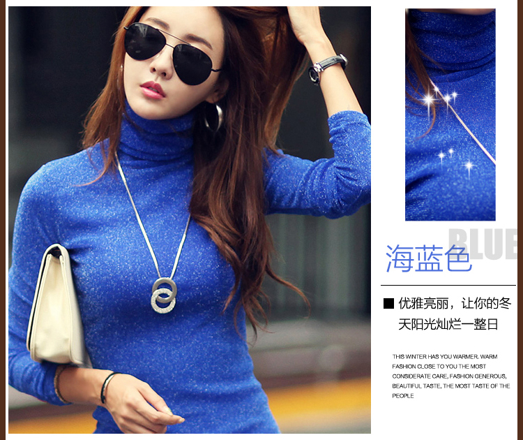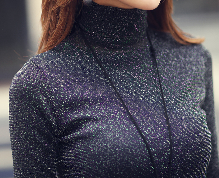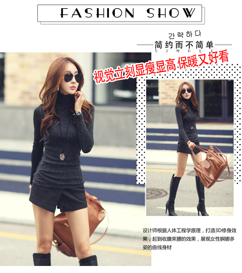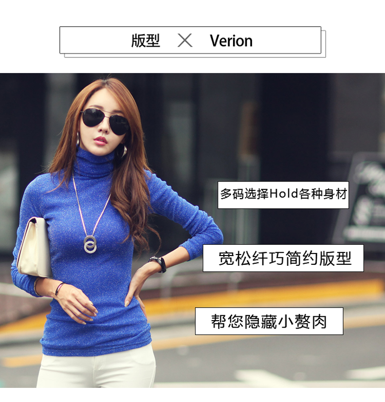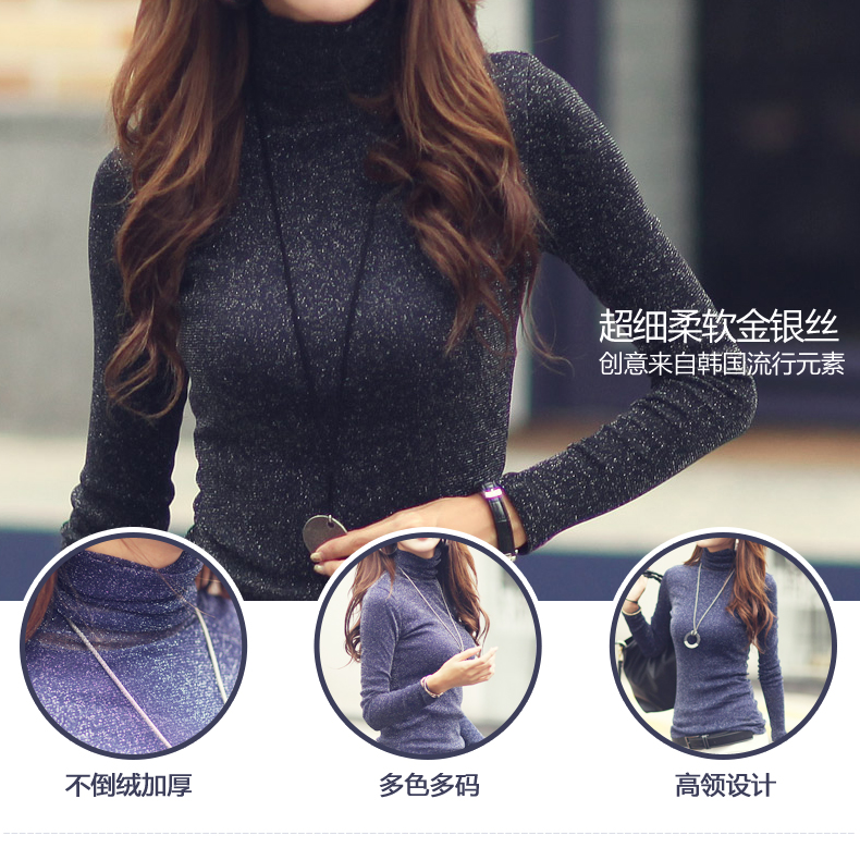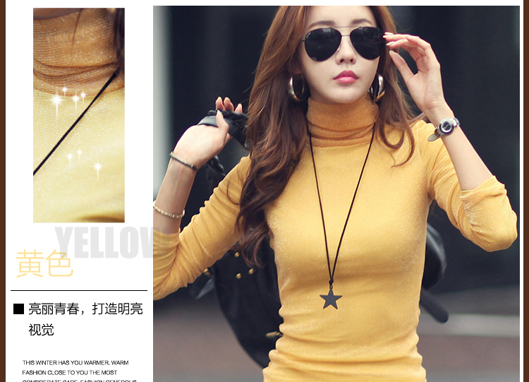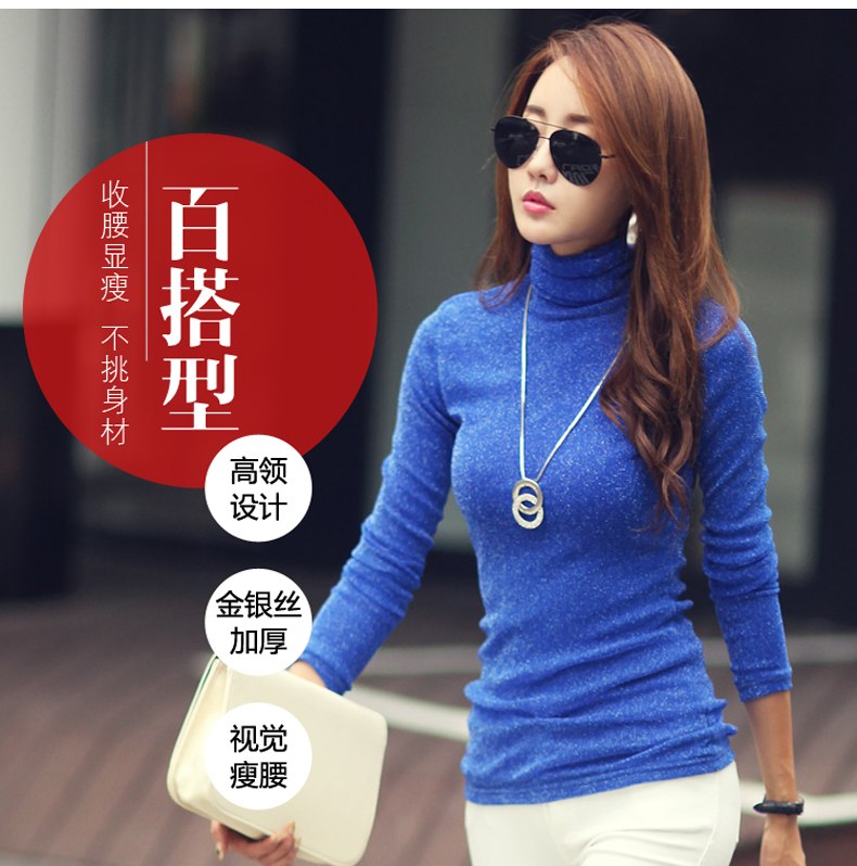 2019秋冬季新款亮絲高領打底衫女士韓版短款上衣加絨加厚長袖t恤
