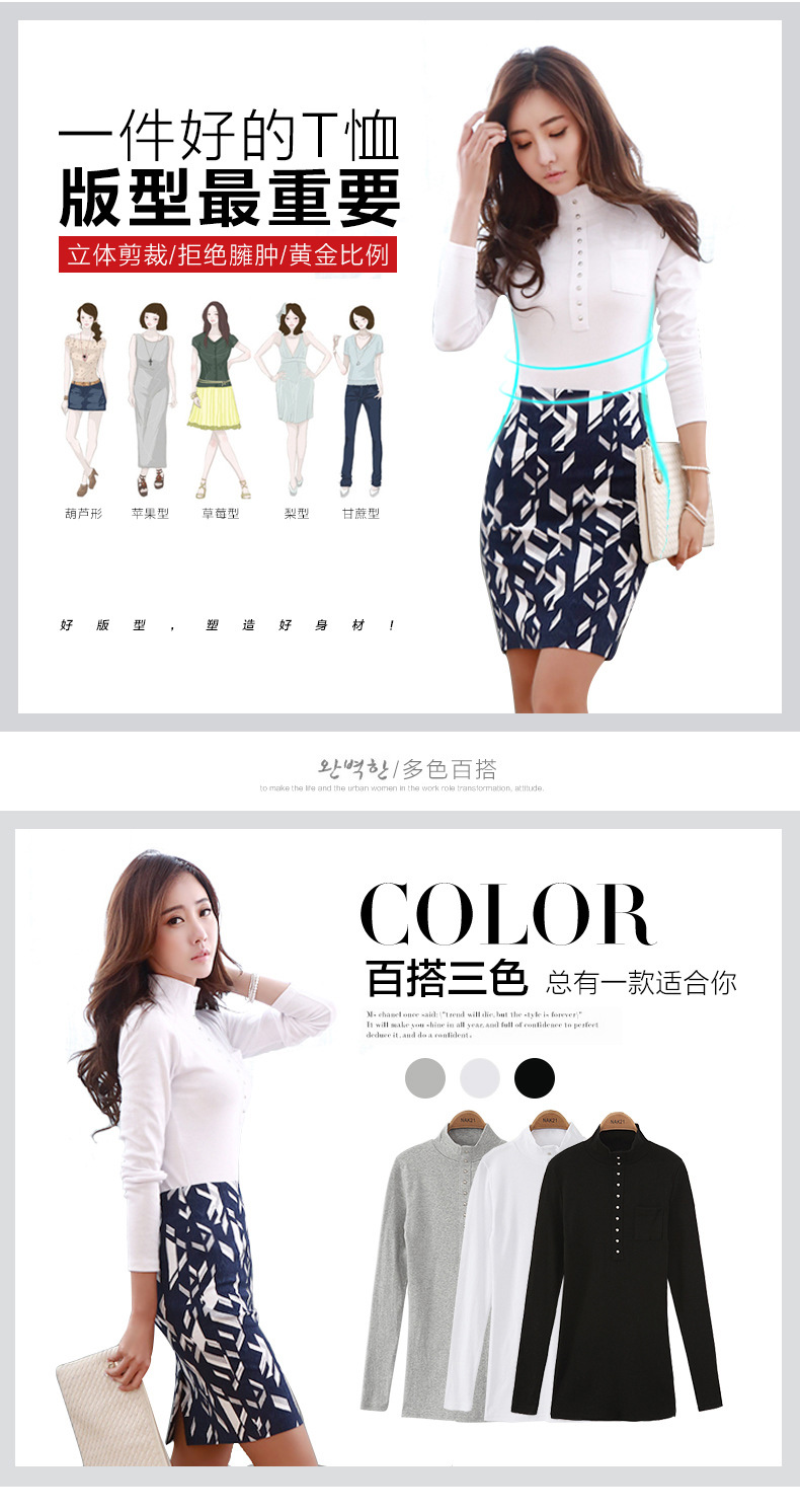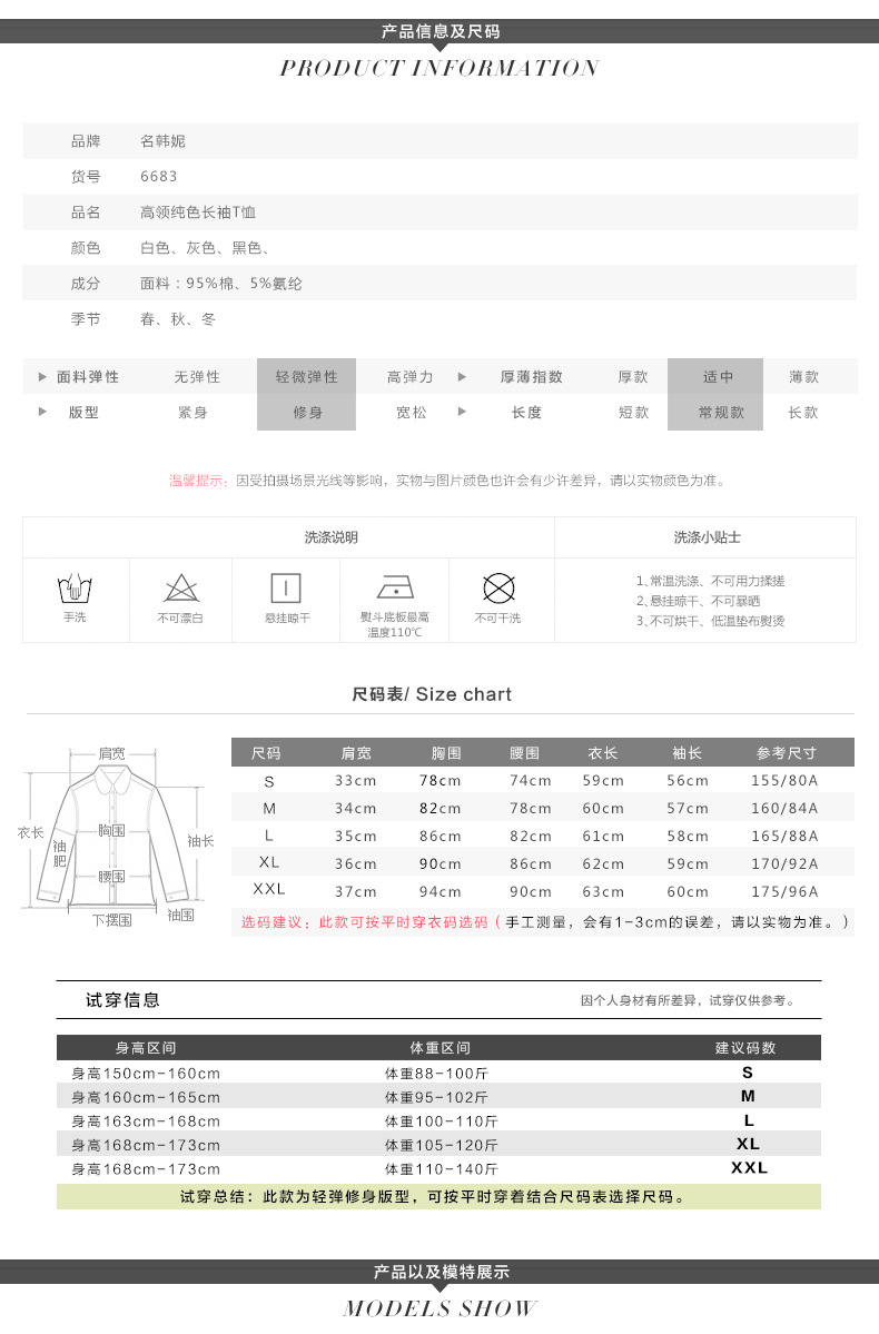 2019秋季新款韓版修身半高領打底衫純色長袖t恤女純棉上衣小衫潮