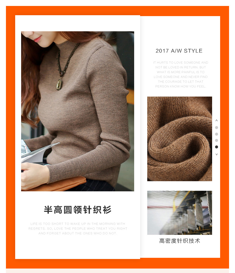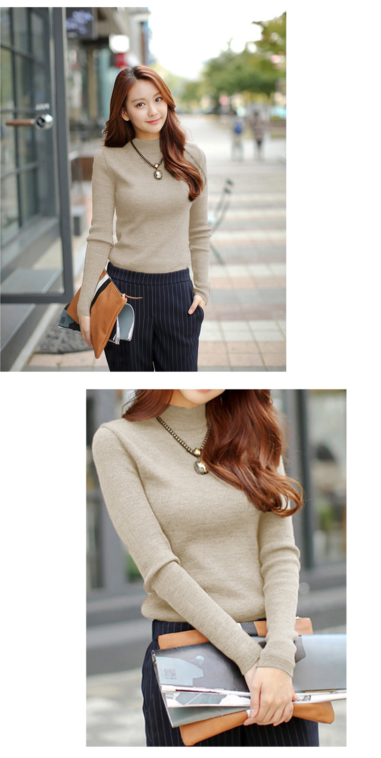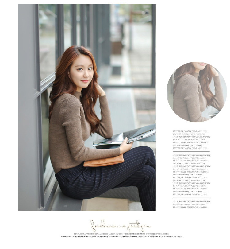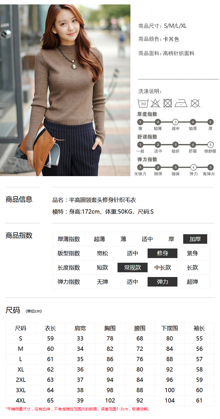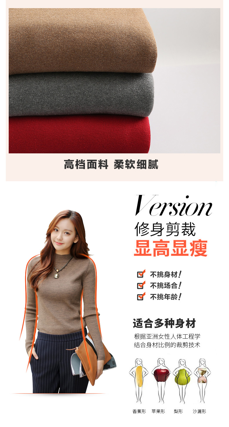 2019秋裝新款韓版五分袖針織t恤女修身中袖半高領打底衫女士上衣