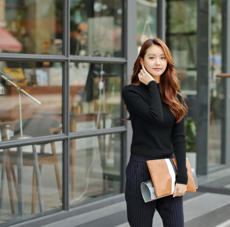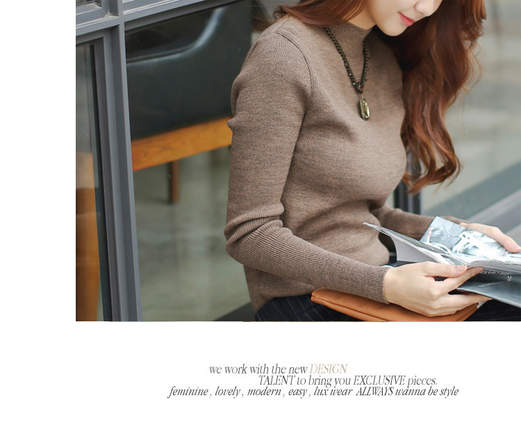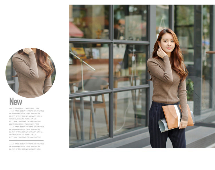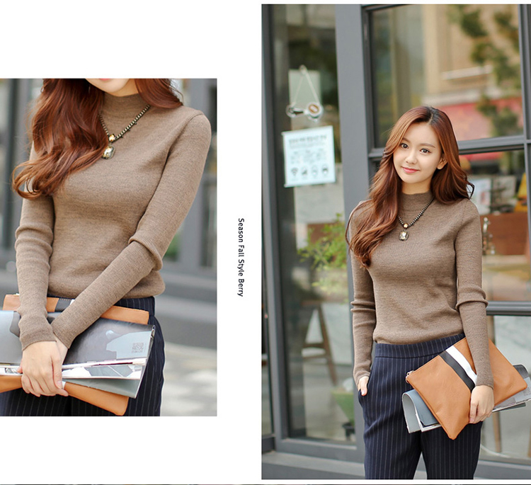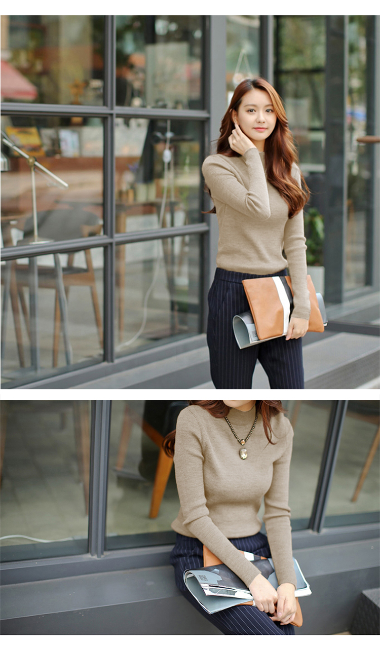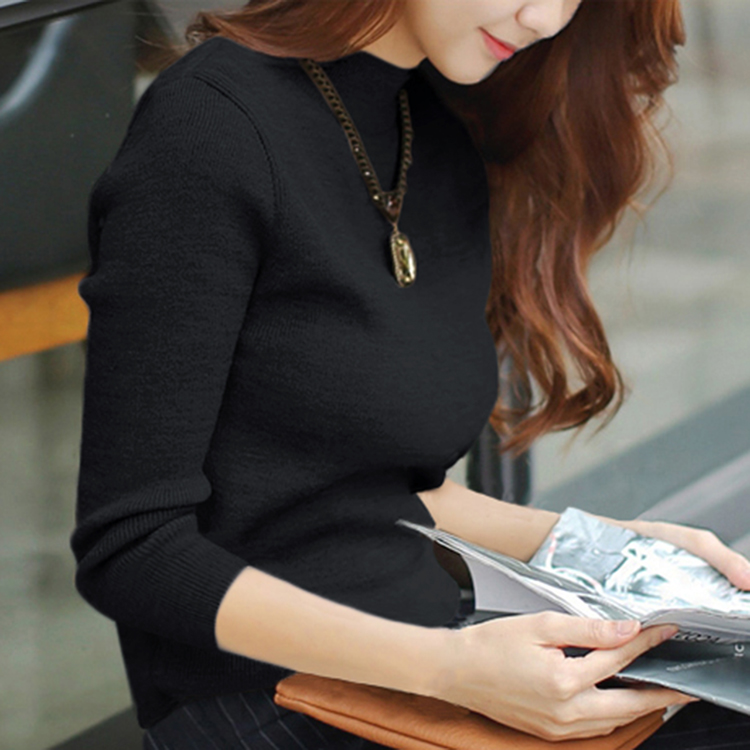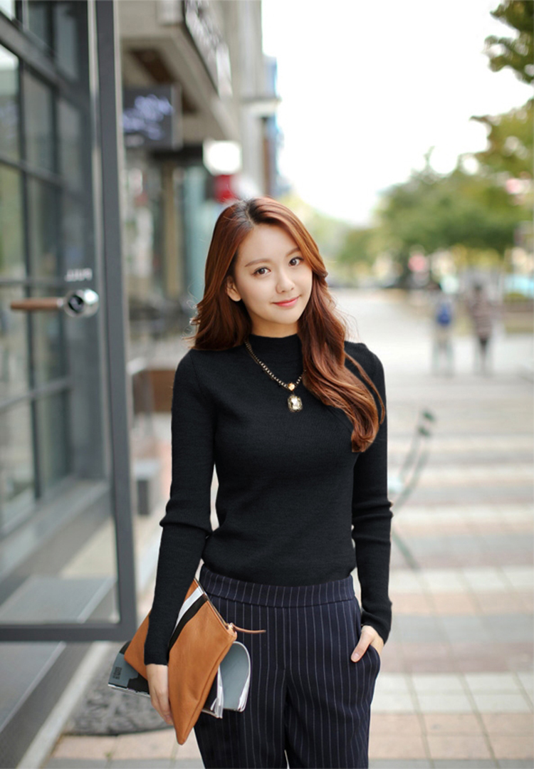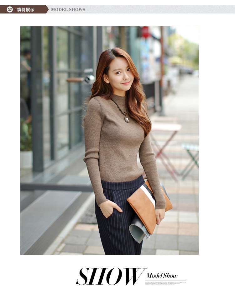 2019秋裝新款韓版五分袖針織t恤女修身中袖半高領打底衫女士上衣