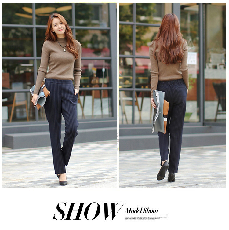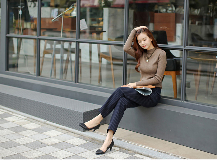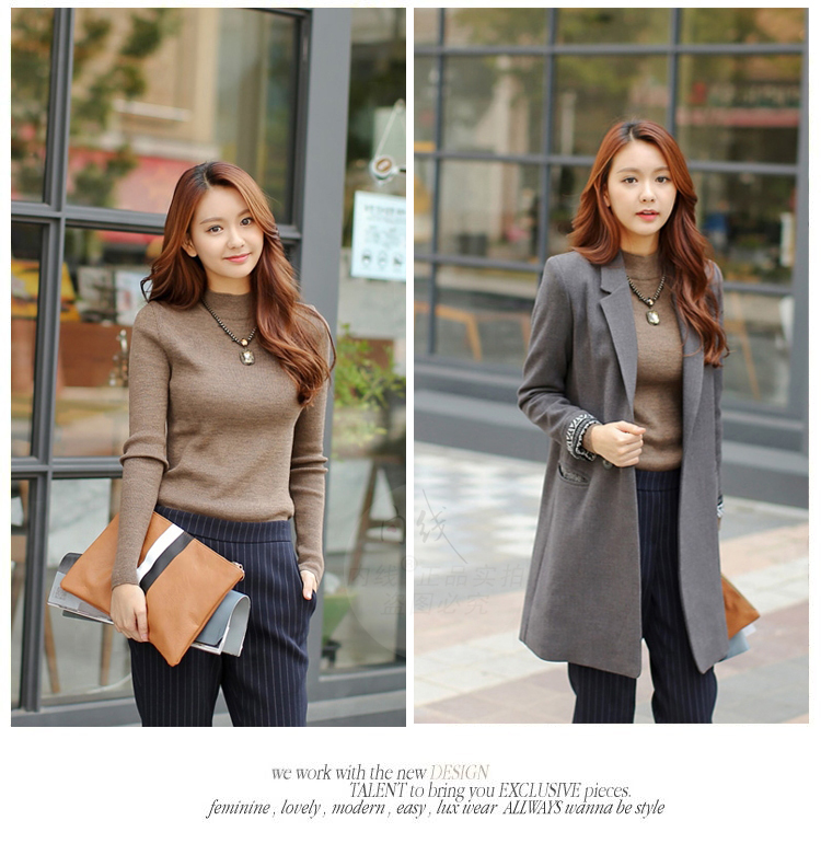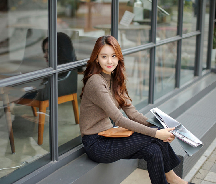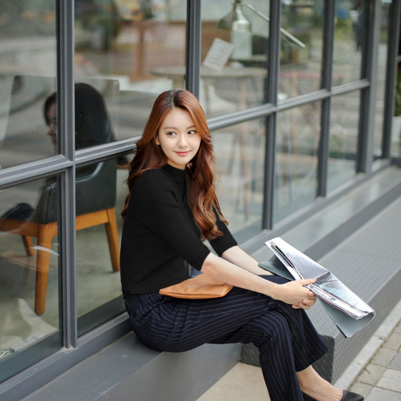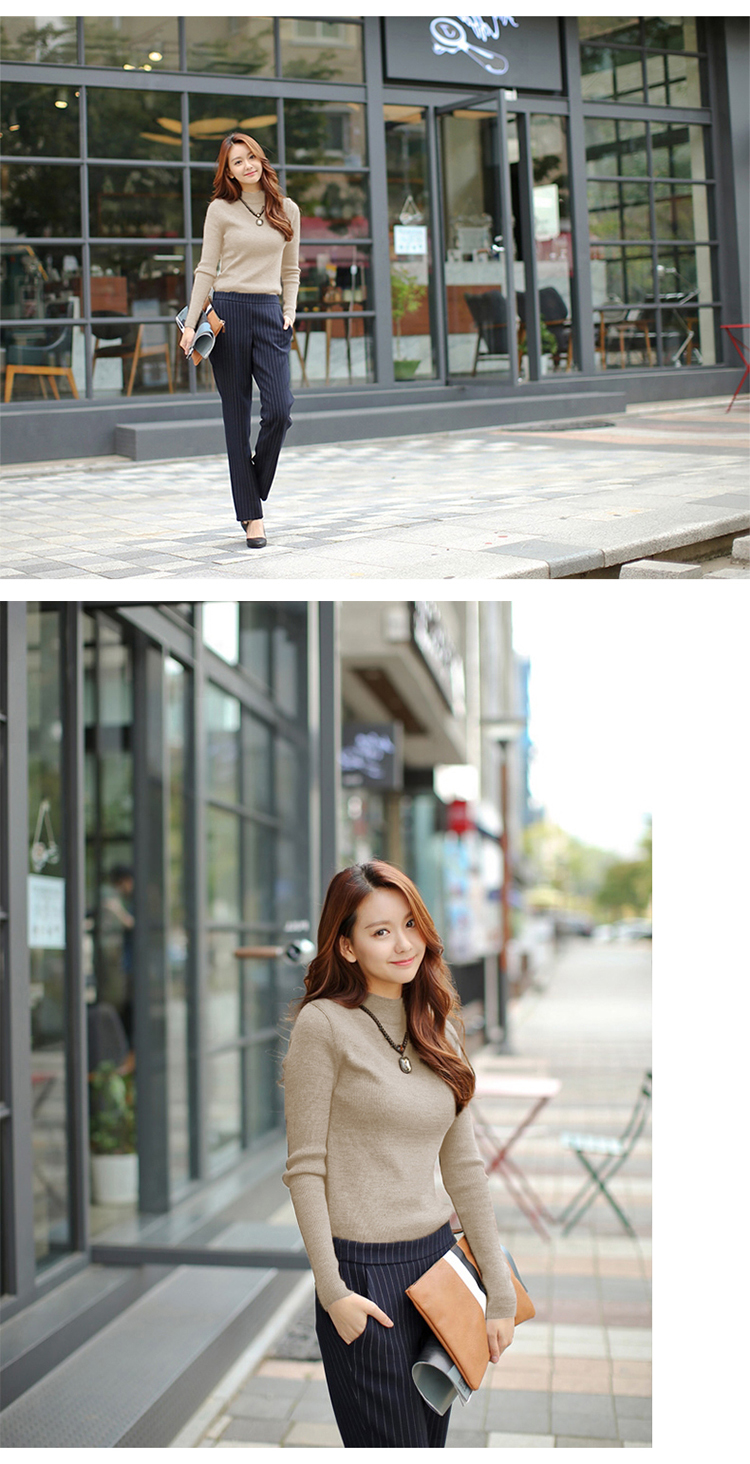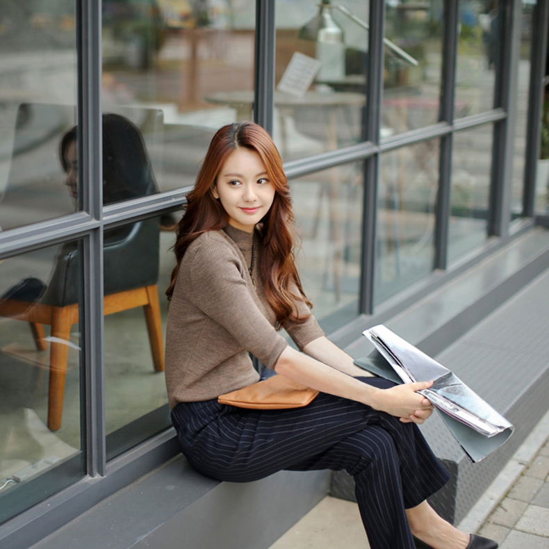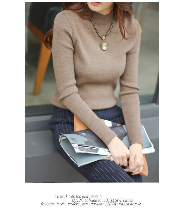 2019秋裝新款韓版五分袖針織t恤女修身中袖半高領打底衫女士上衣