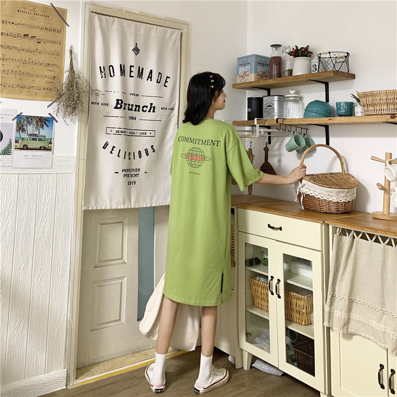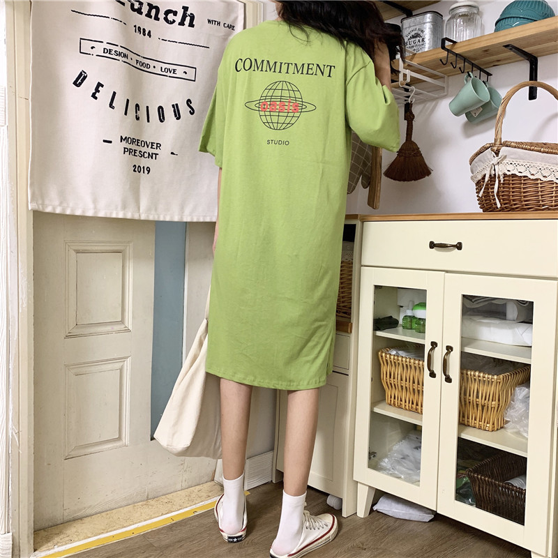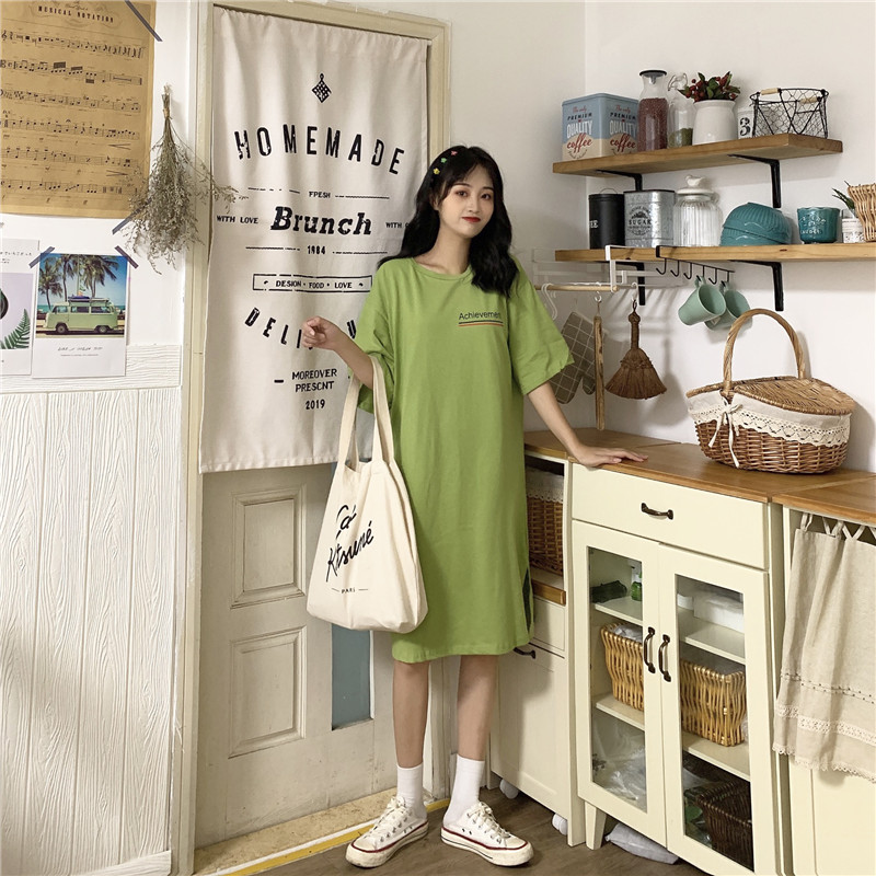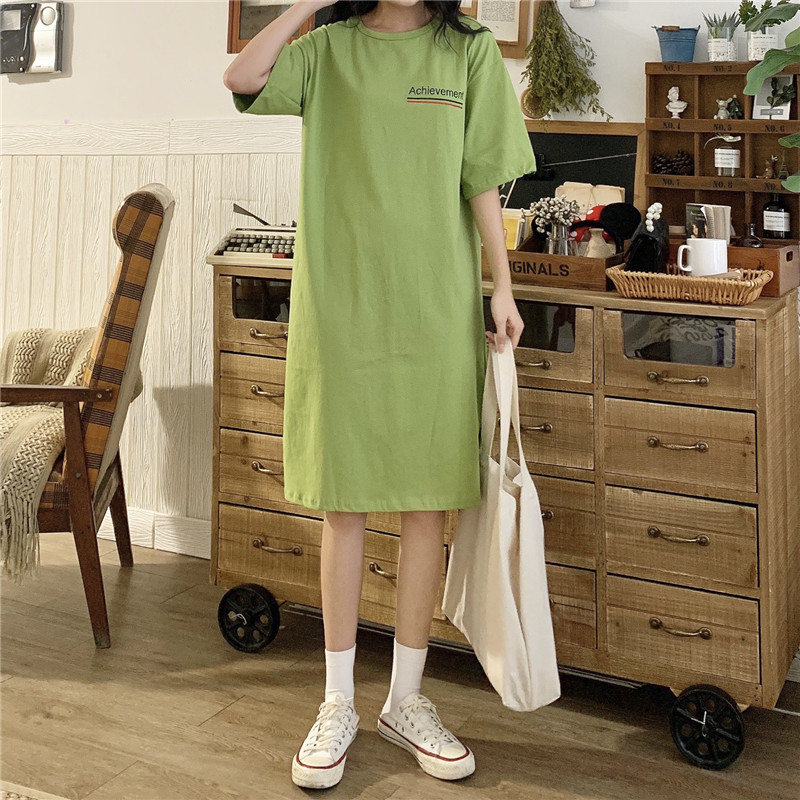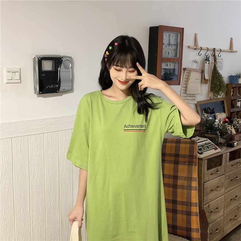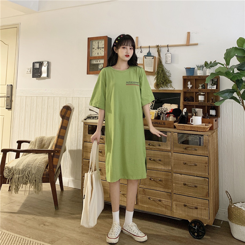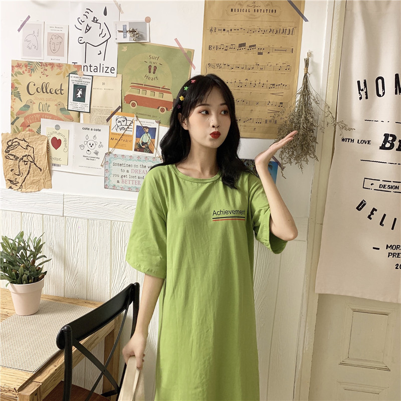 連衣裙子夏仙女超仙森系甜美2019新款學生ins牛油果綠色短袖t恤女
