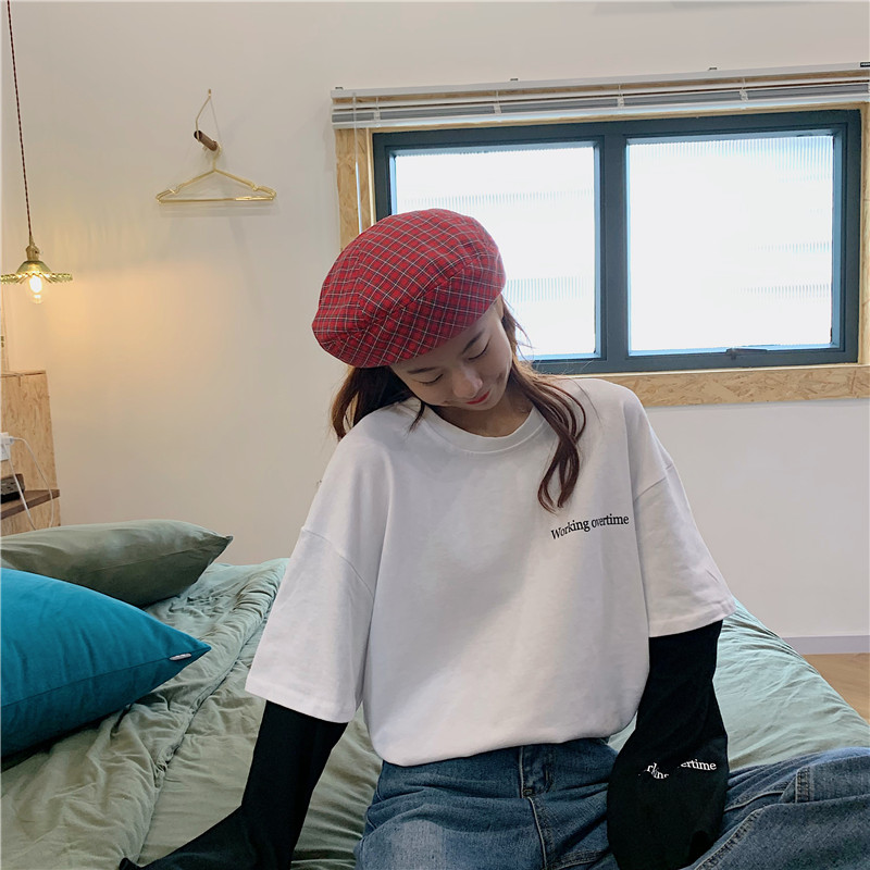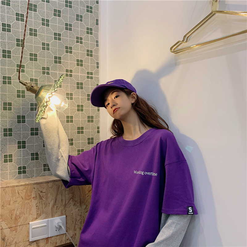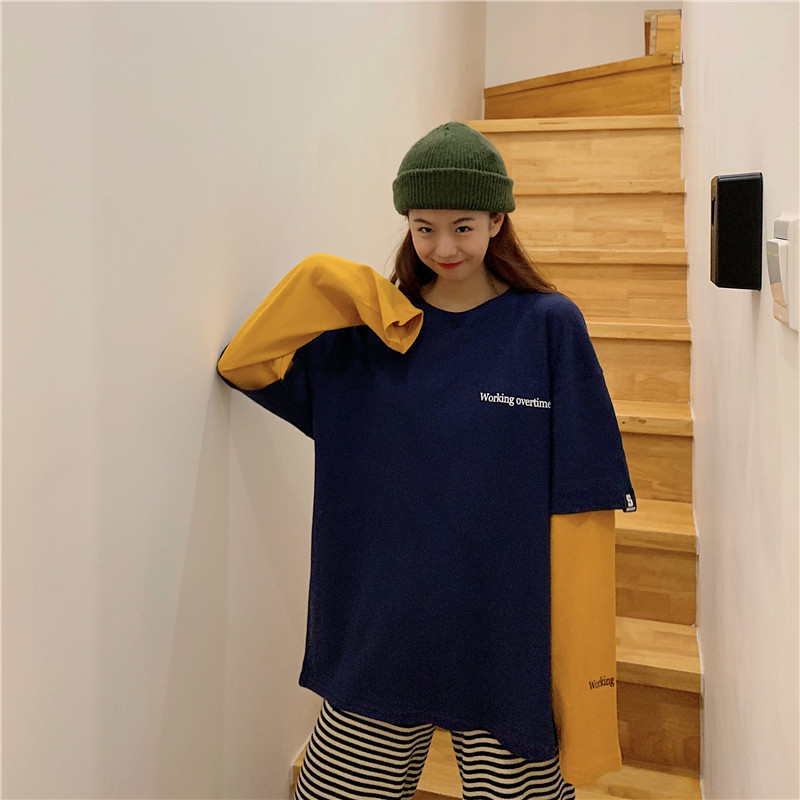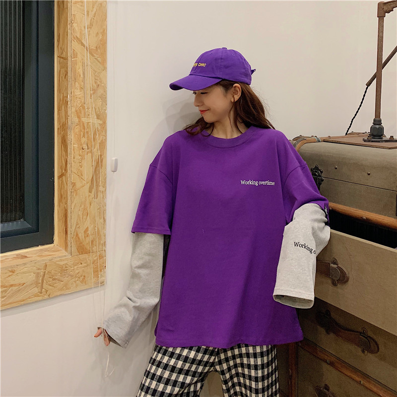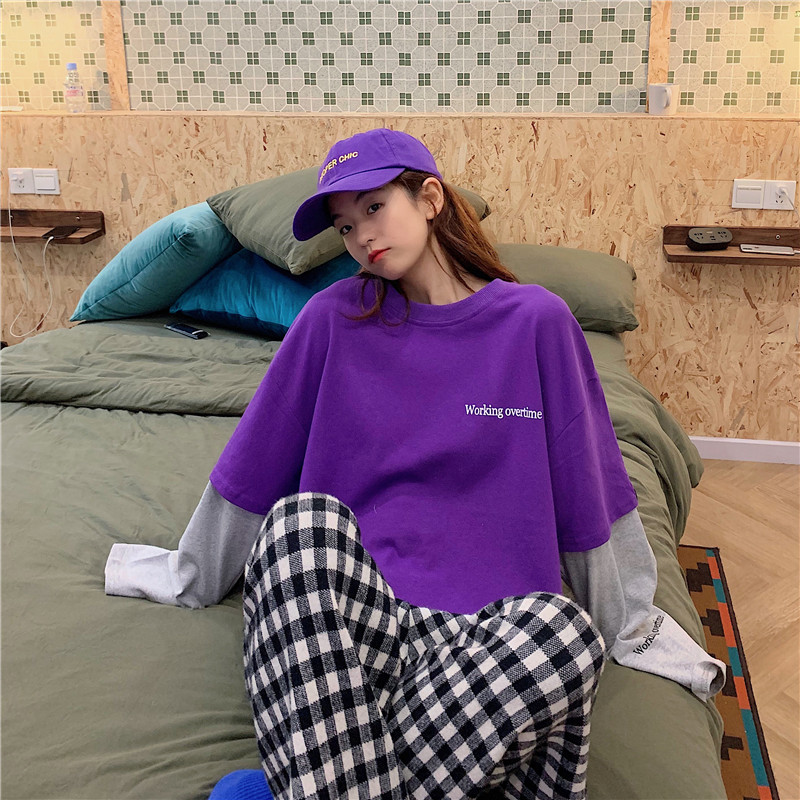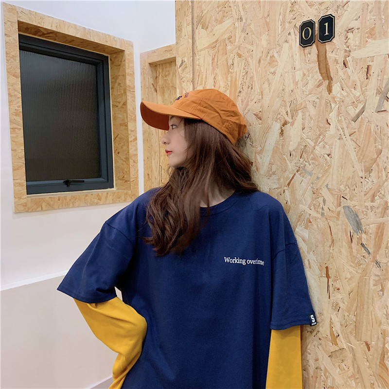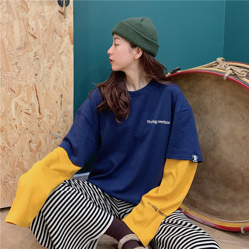 超火cec長袖t恤女ins薄款春秋2019韓版潮寬松假兩件百搭mschf上衣