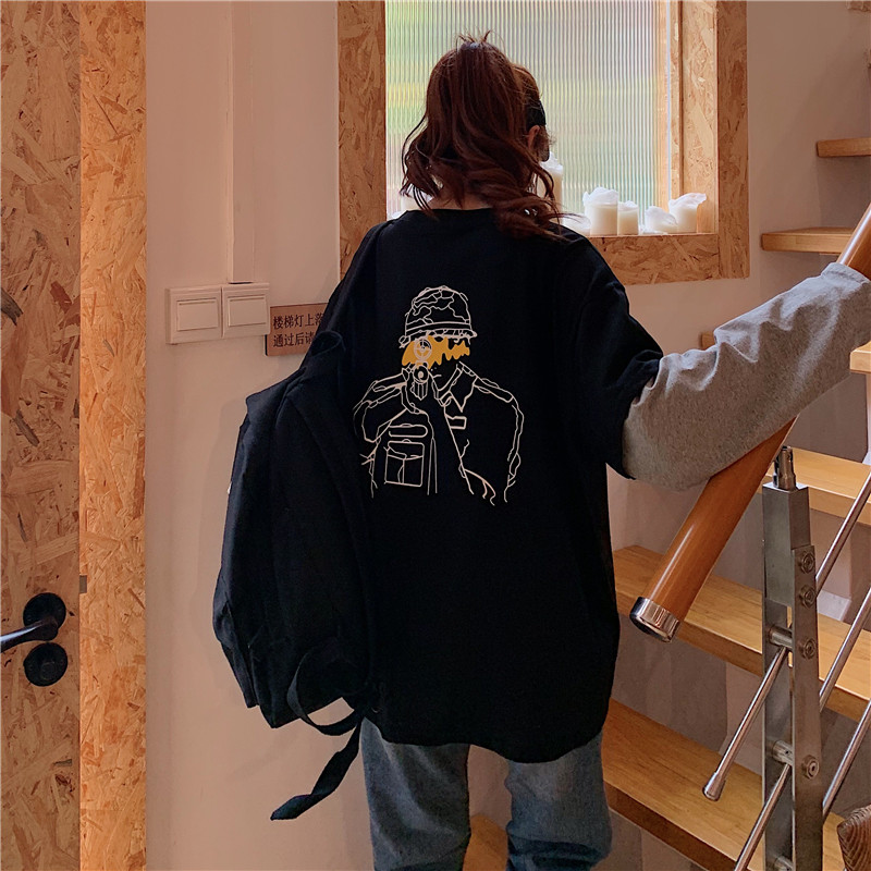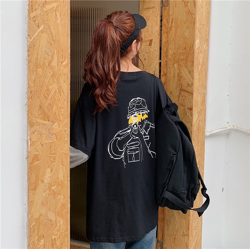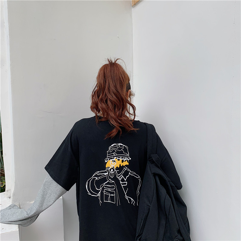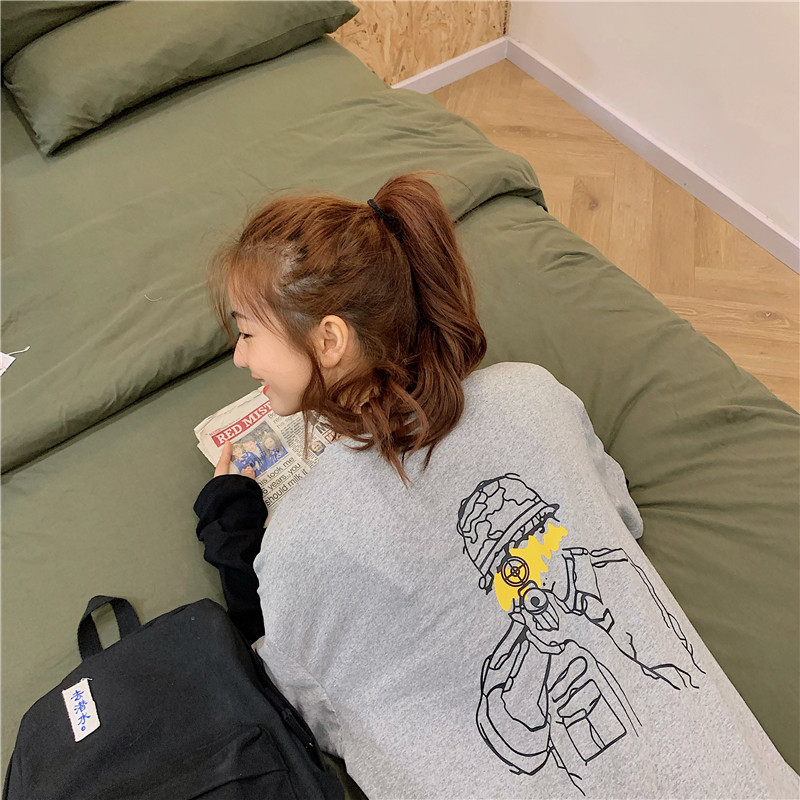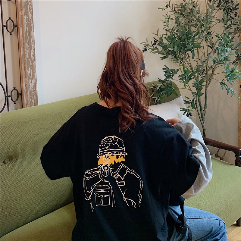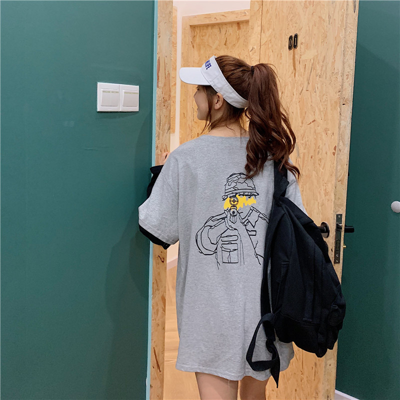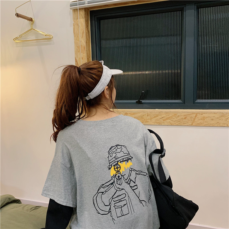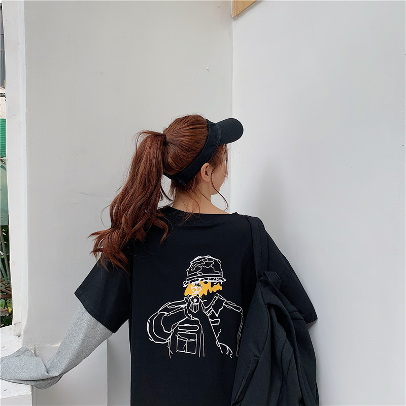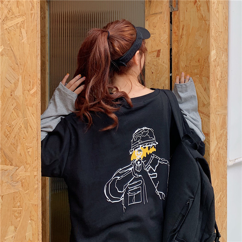 韓國長袖t恤女2019早秋bf風寬松學生上衣服拼接假兩件打底衫潮ins