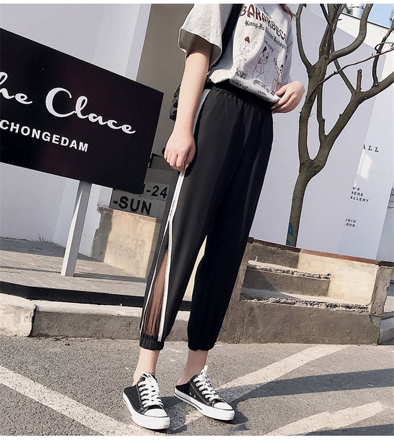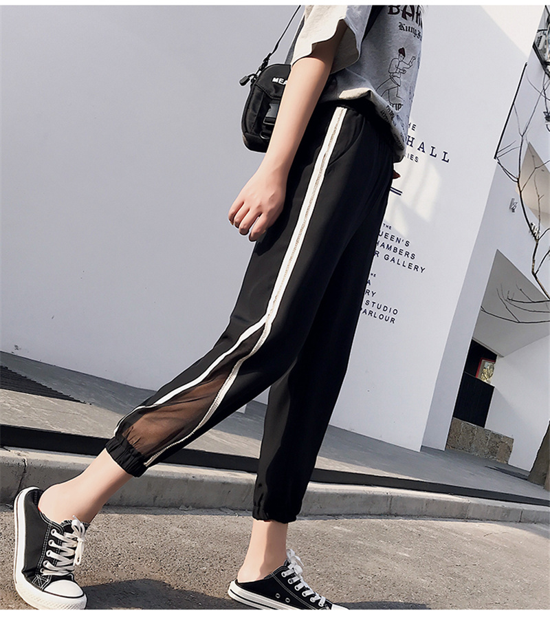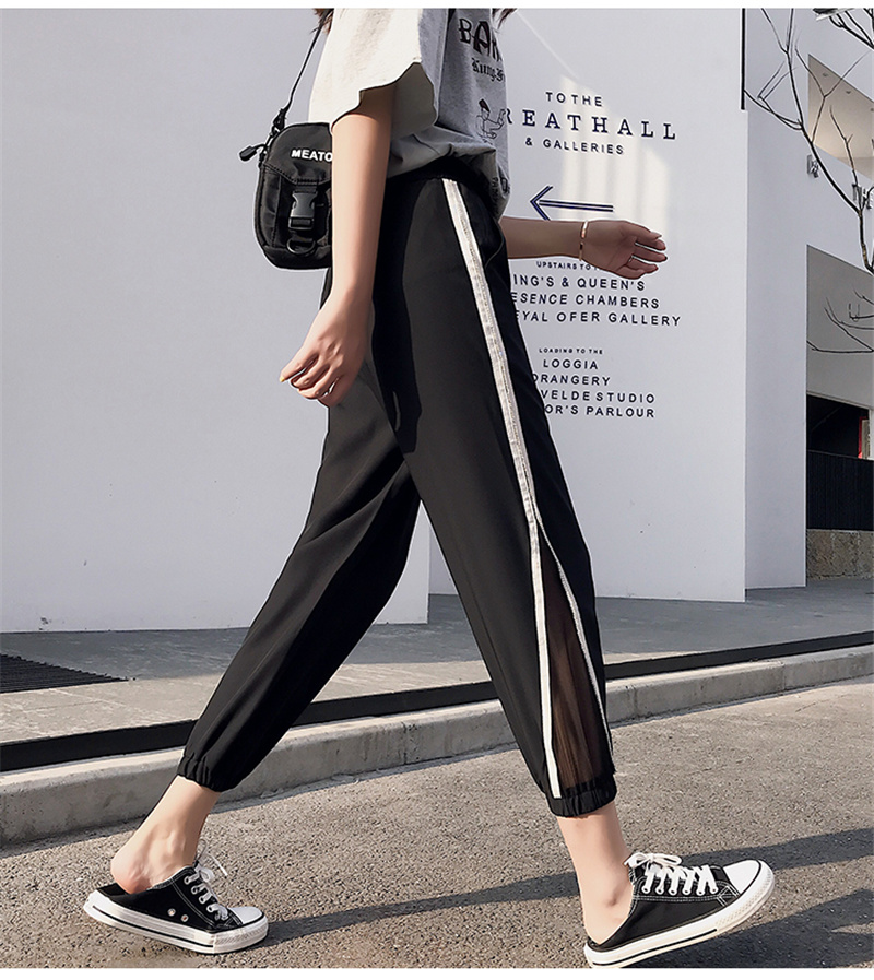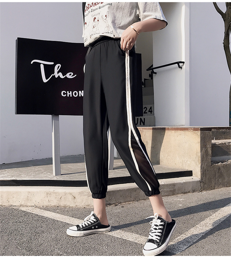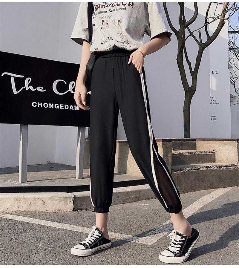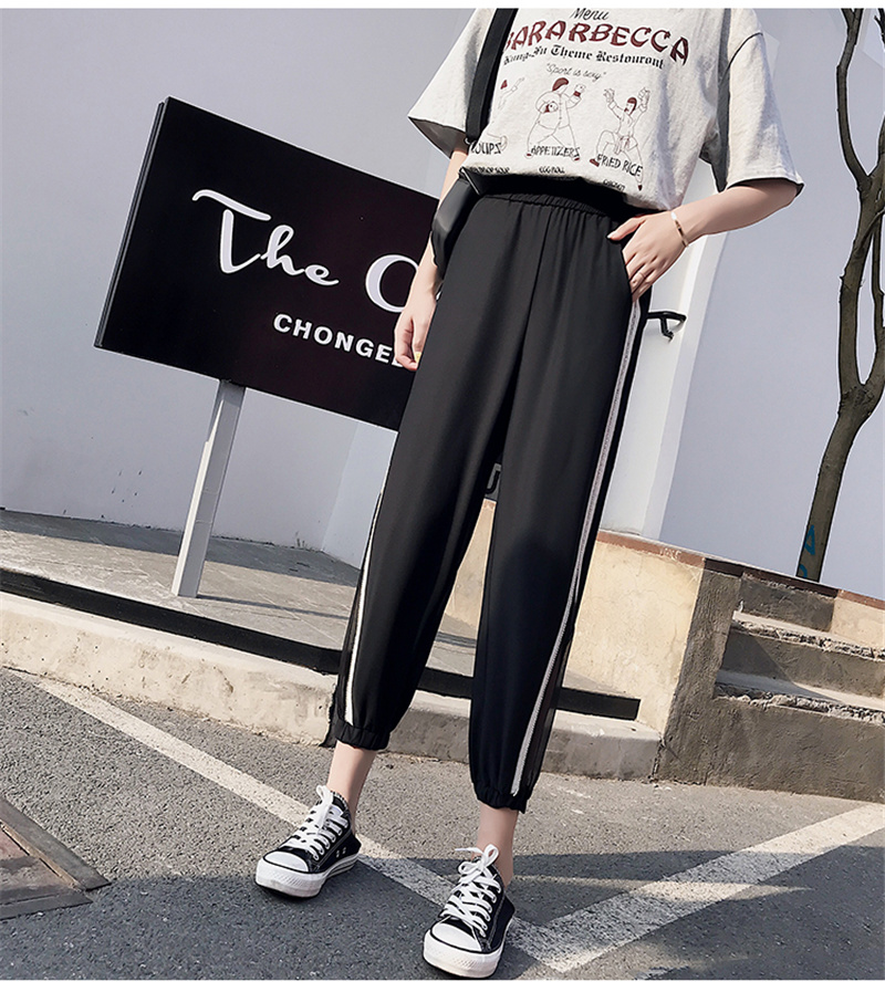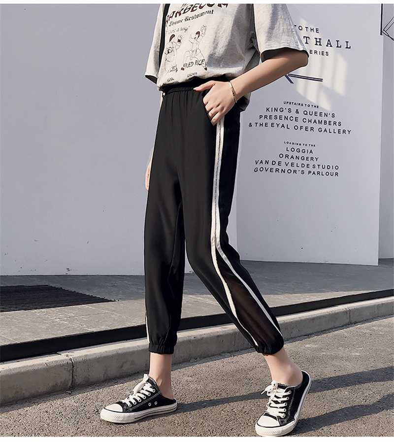運動休閑哈倫褲女夏季薄款寬松雪紡燈籠褲高腰冰絲闊腿九分褲子女