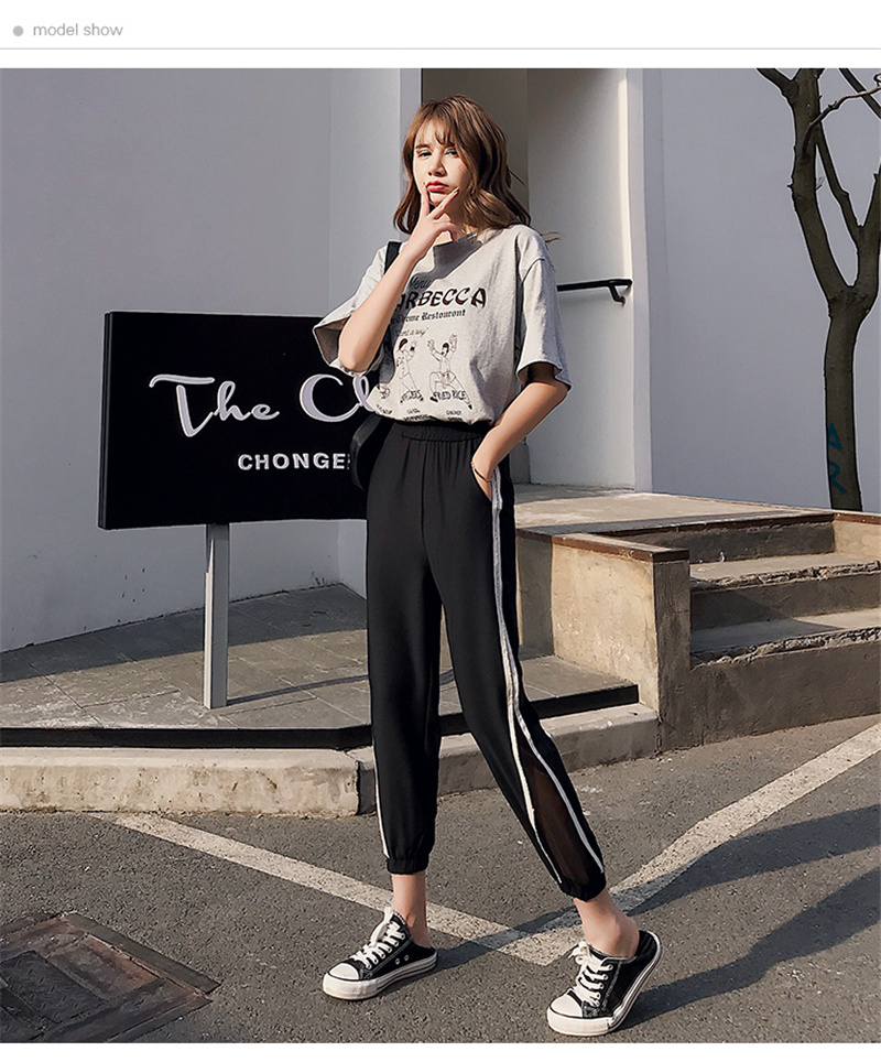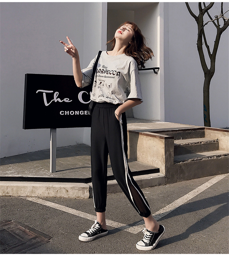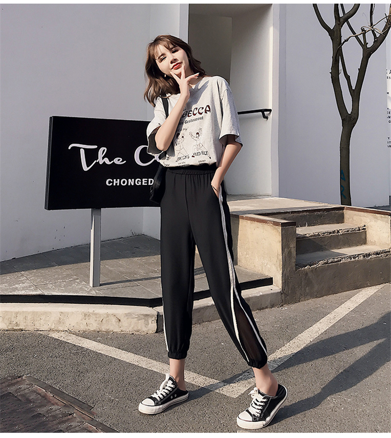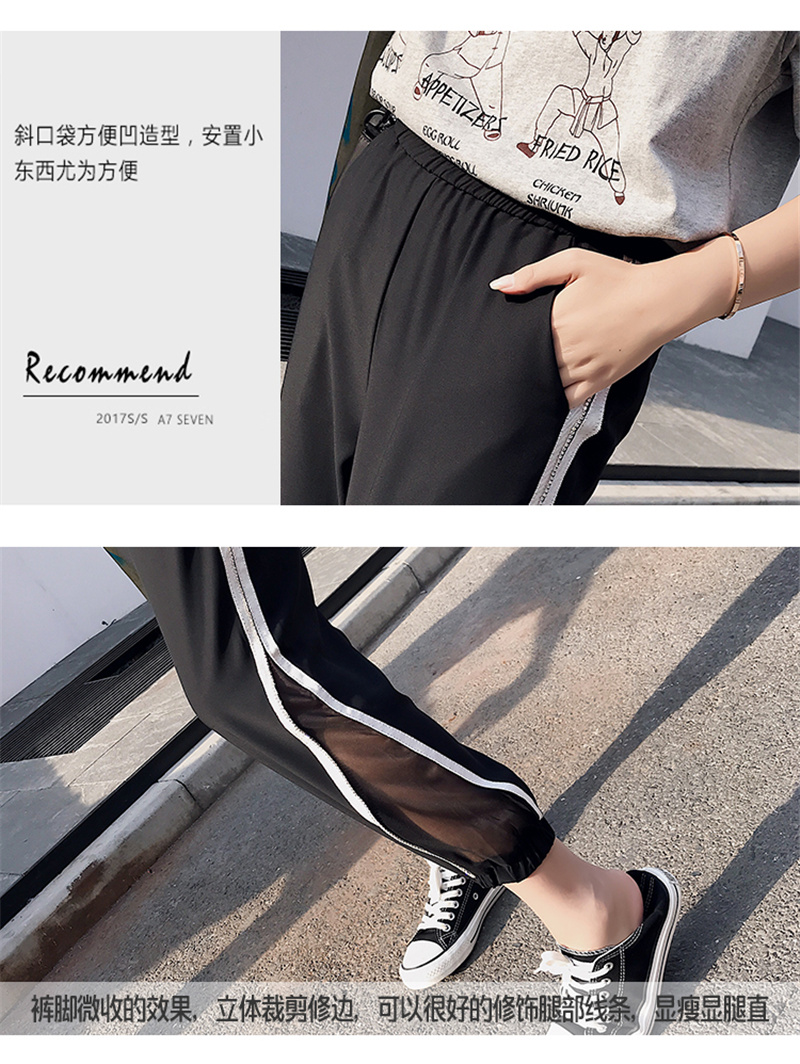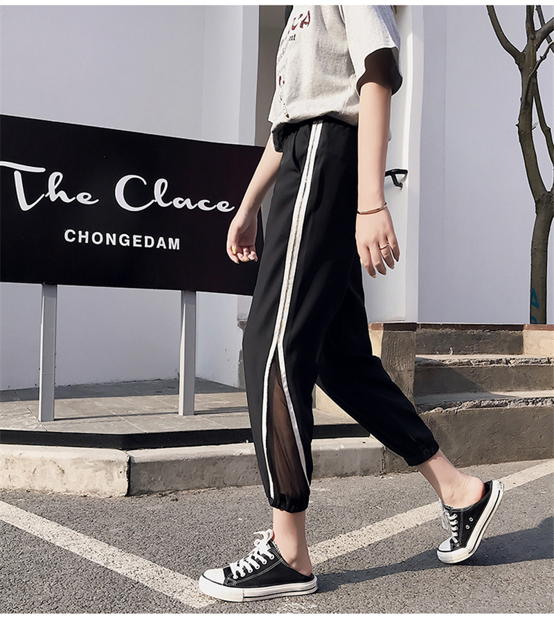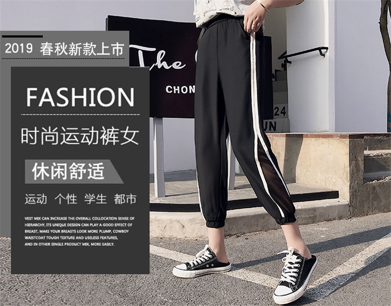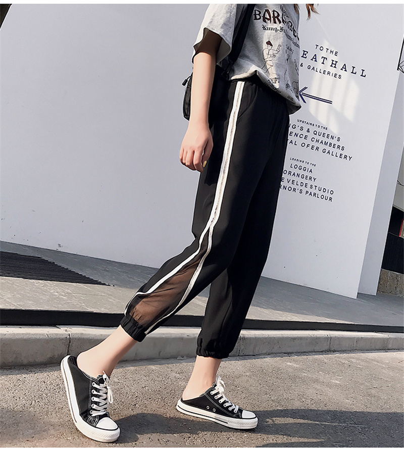 運動休閑哈倫褲女夏季薄款寬松雪紡燈籠褲高腰冰絲闊腿九分褲子女