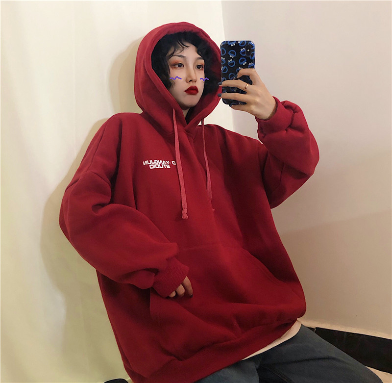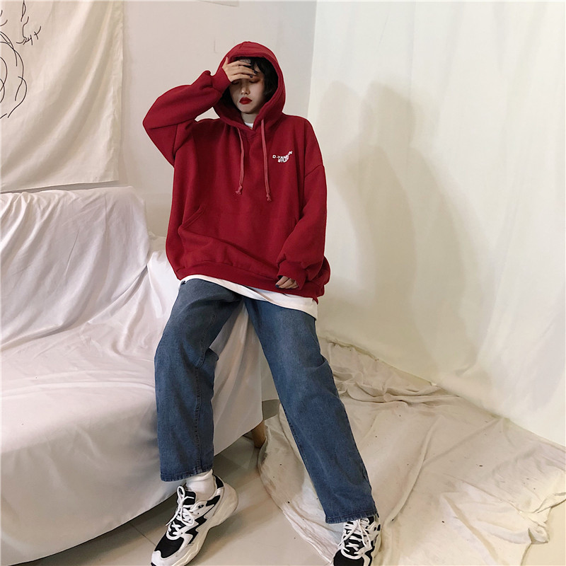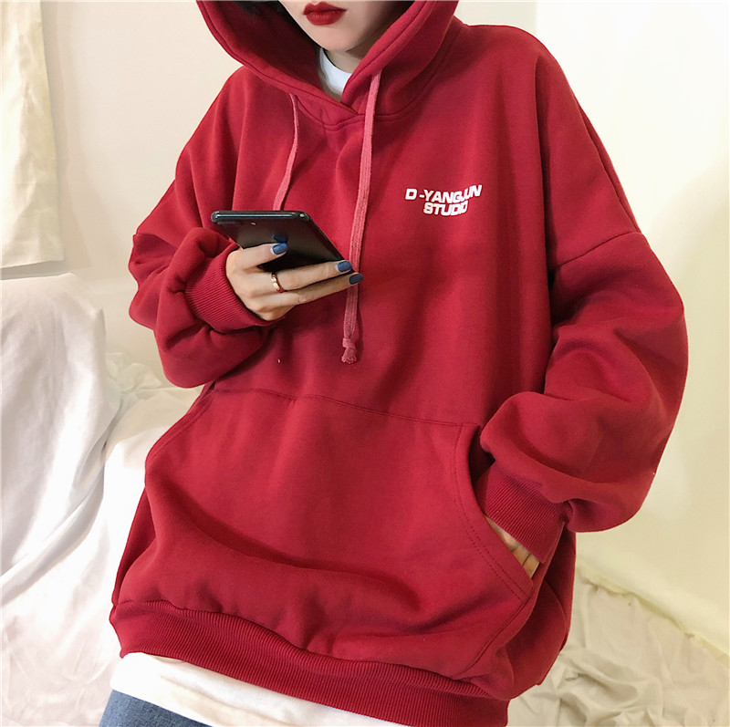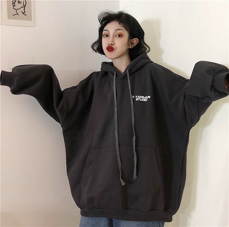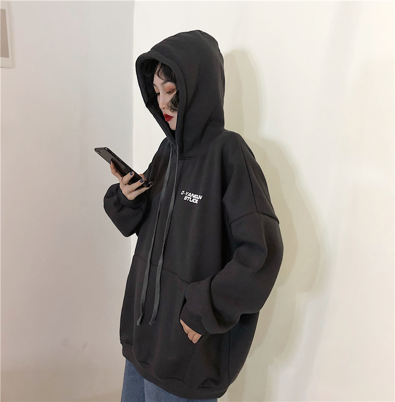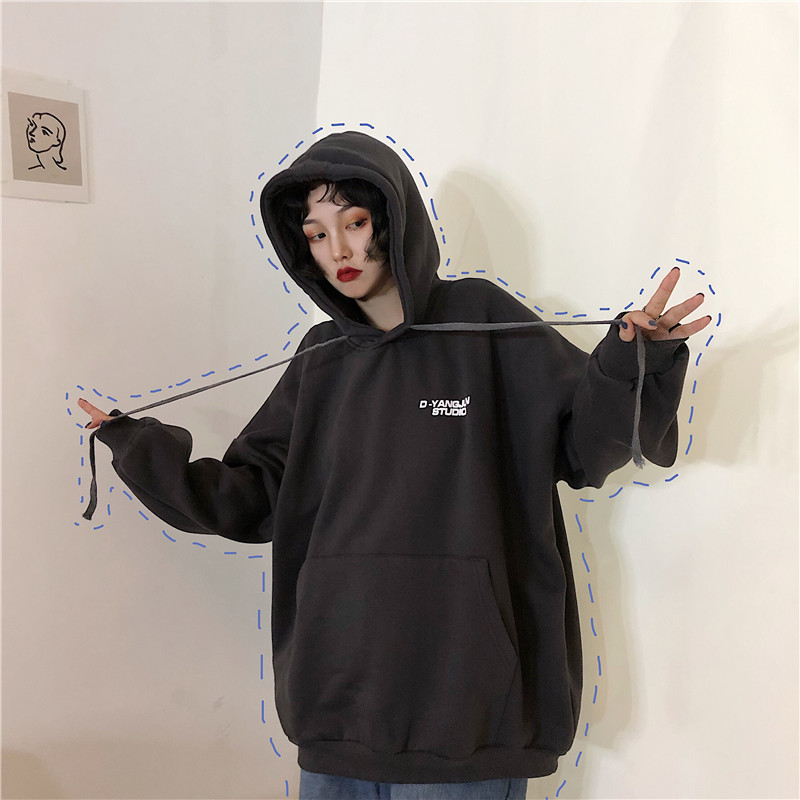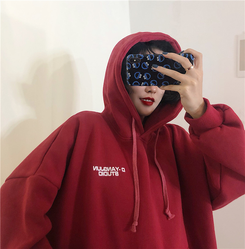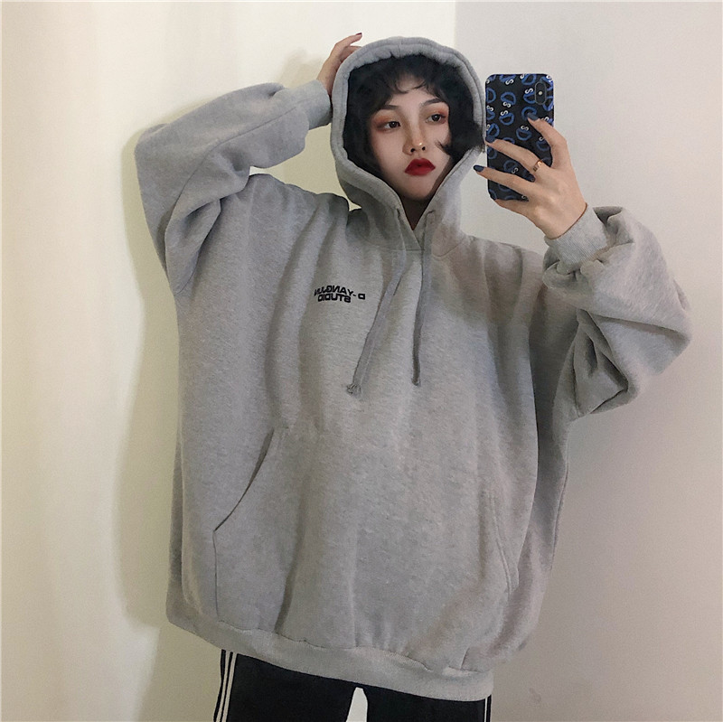 衛衣女加絨加厚冬韓版寬松學生連帽bf原宿風ulzzang外套oversize