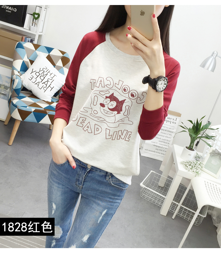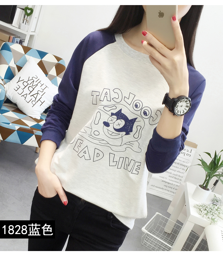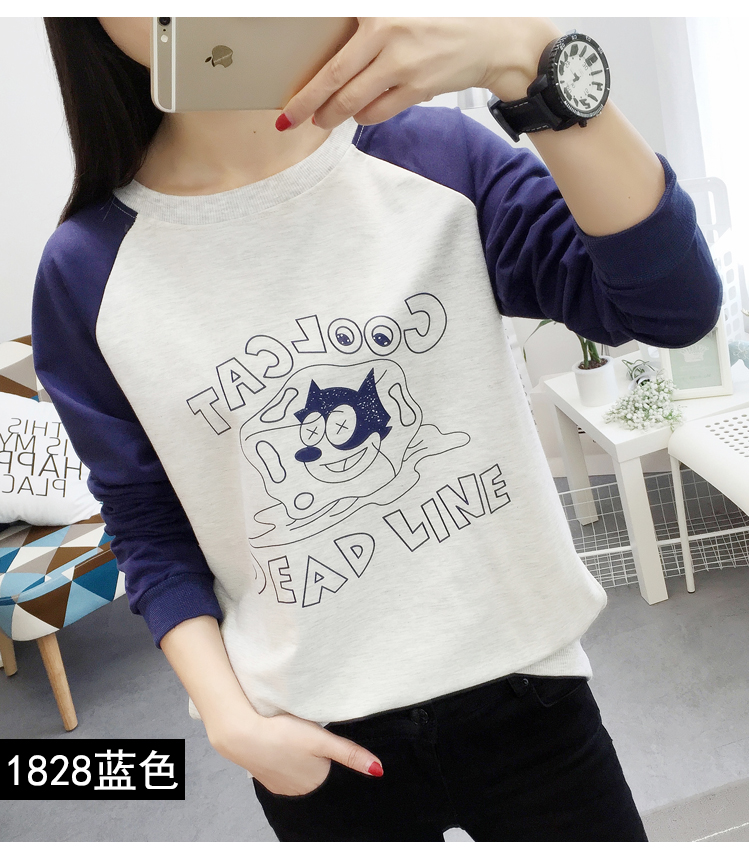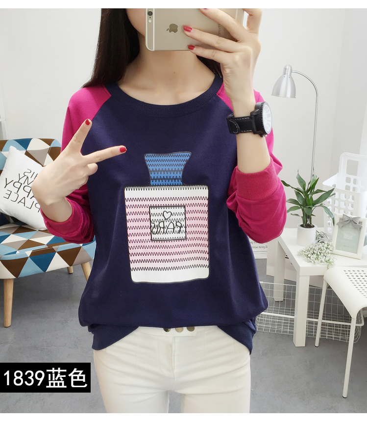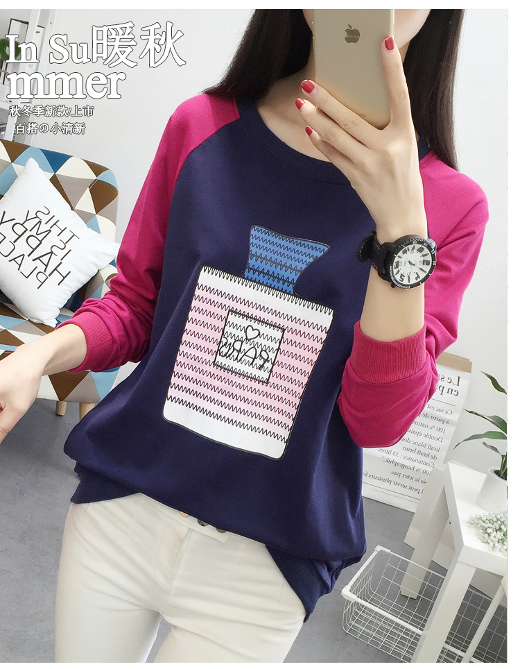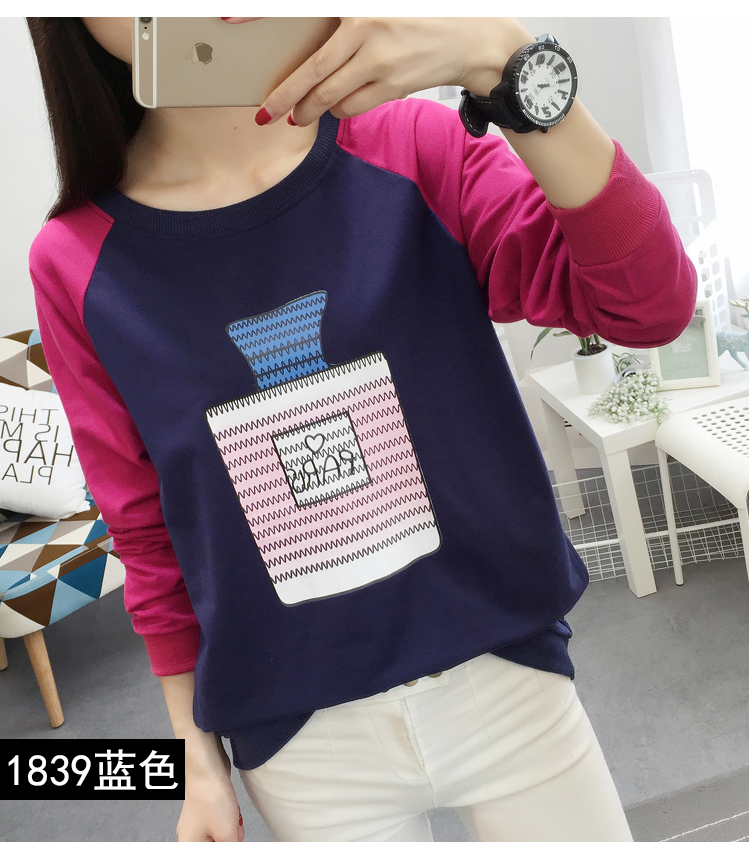 衛衣2019新款女長袖薄款圓領韓版寬松秋冬裝套頭學生百搭拼接外套