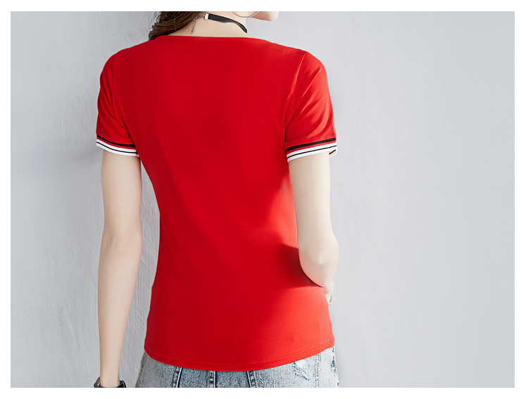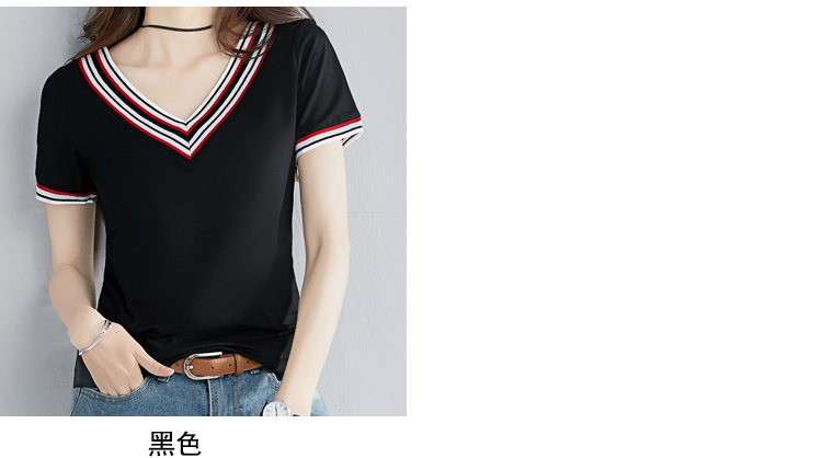 2019夏季新款白色V領短袖t恤女韓版修身顯瘦純棉純色上衣體恤潮