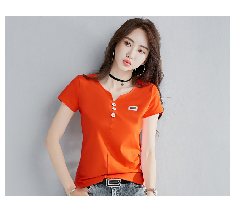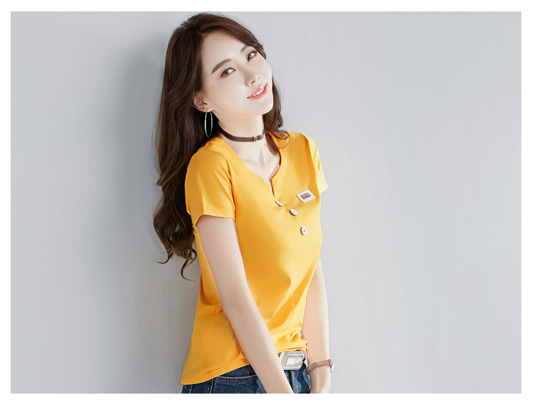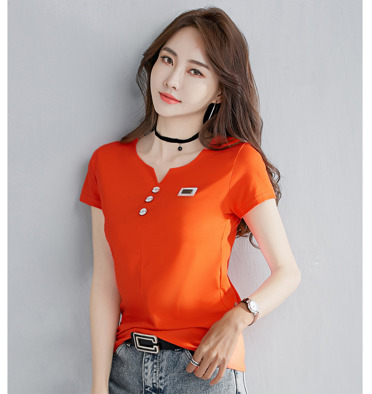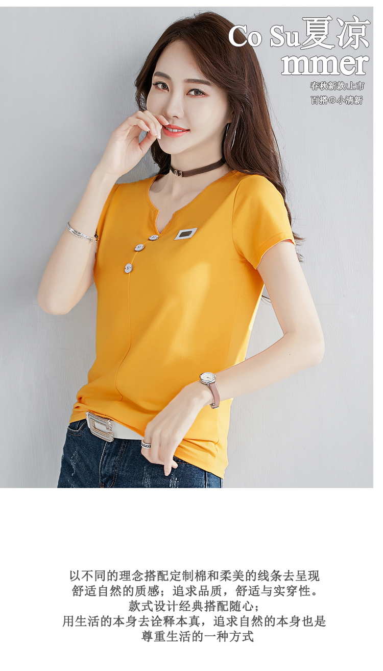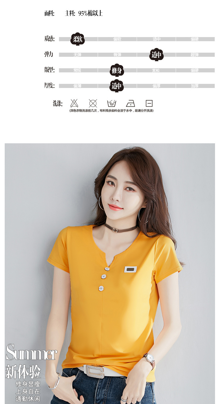 韓版百搭2019夏裝短袖女t恤上衣服純色體恤修身純棉體?衫百搭潮