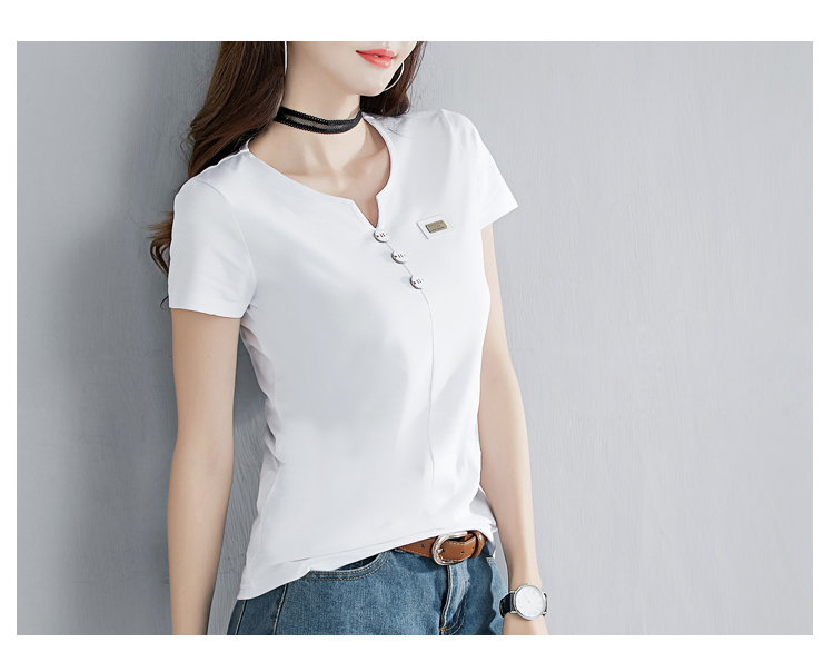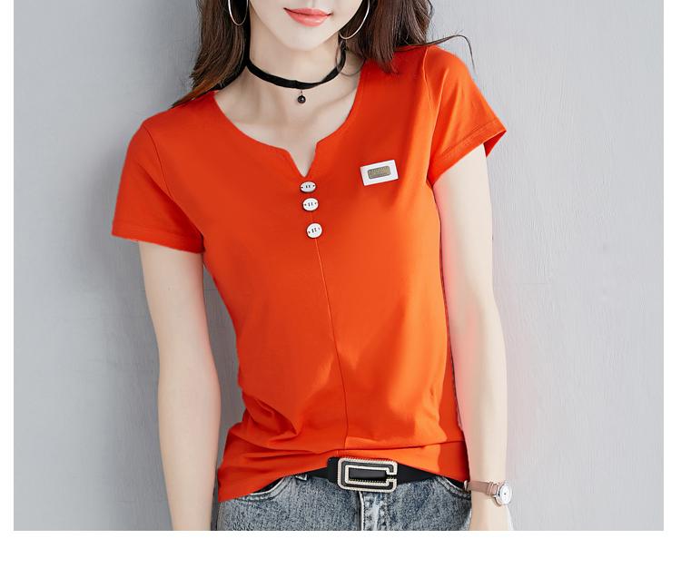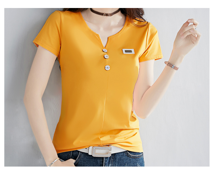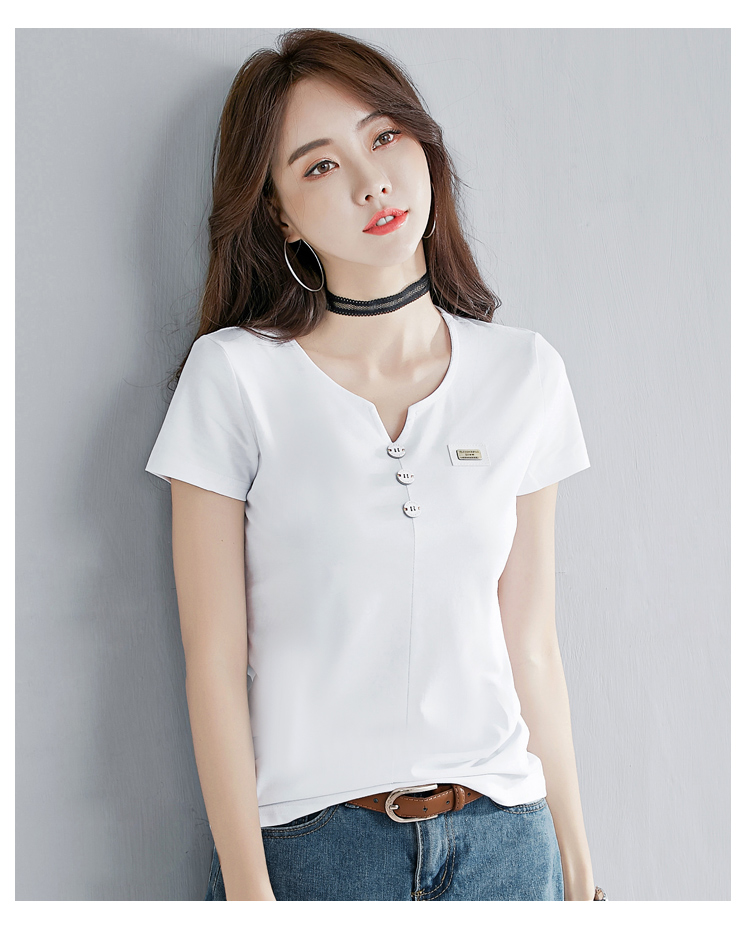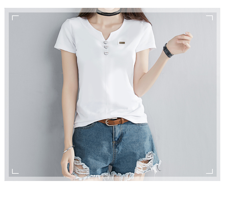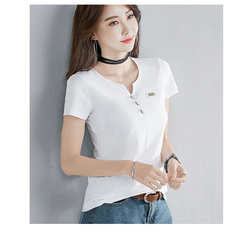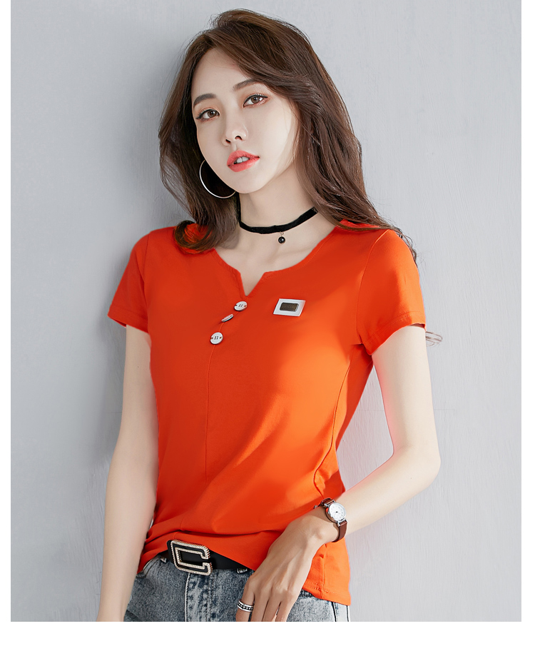 韓版百搭2019夏裝短袖女t恤上衣服純色體恤修身純棉體?衫百搭潮