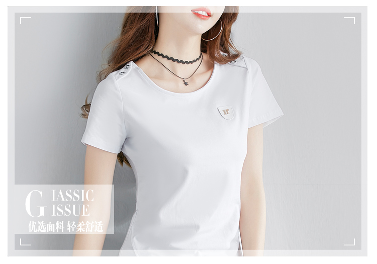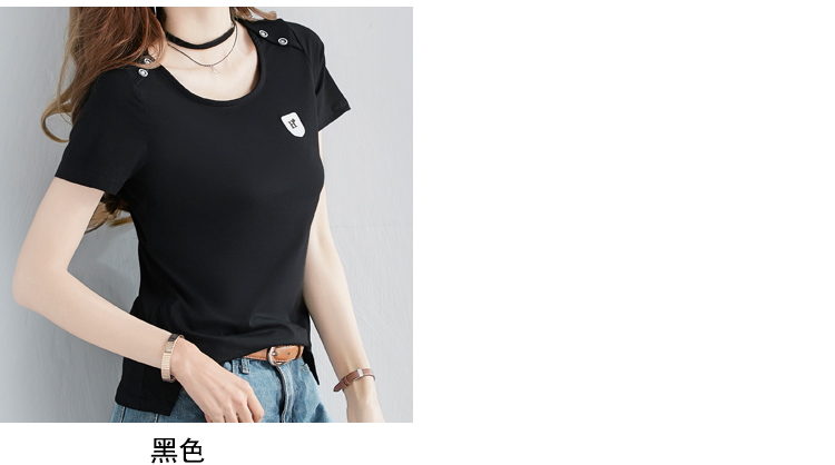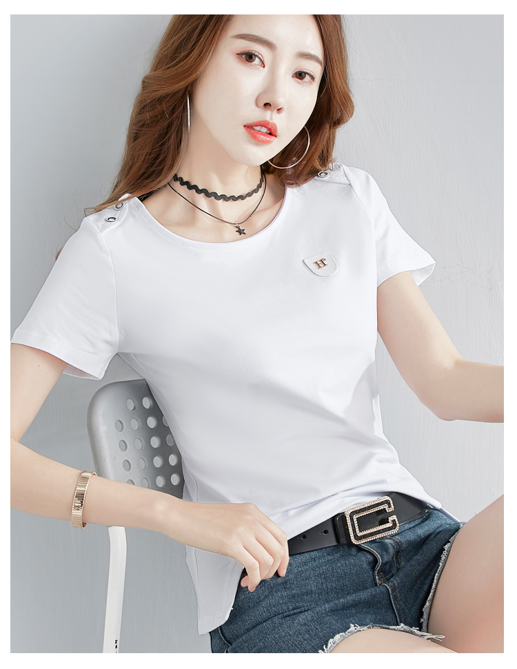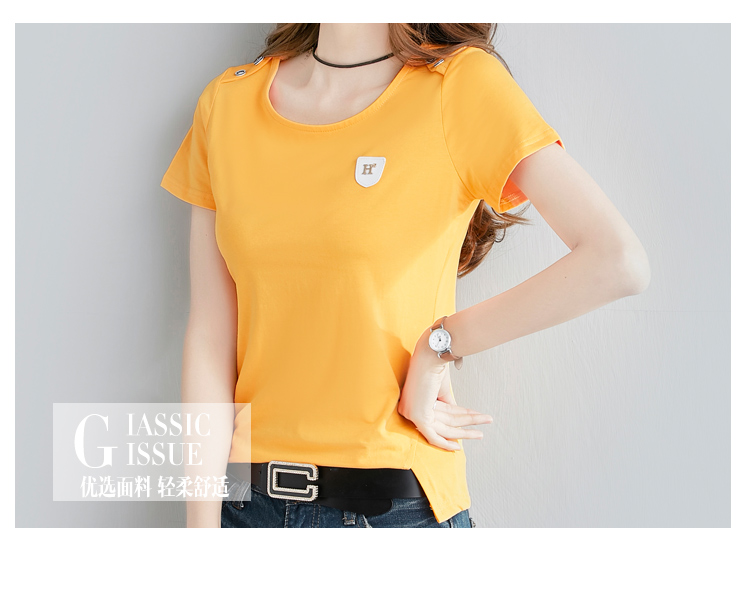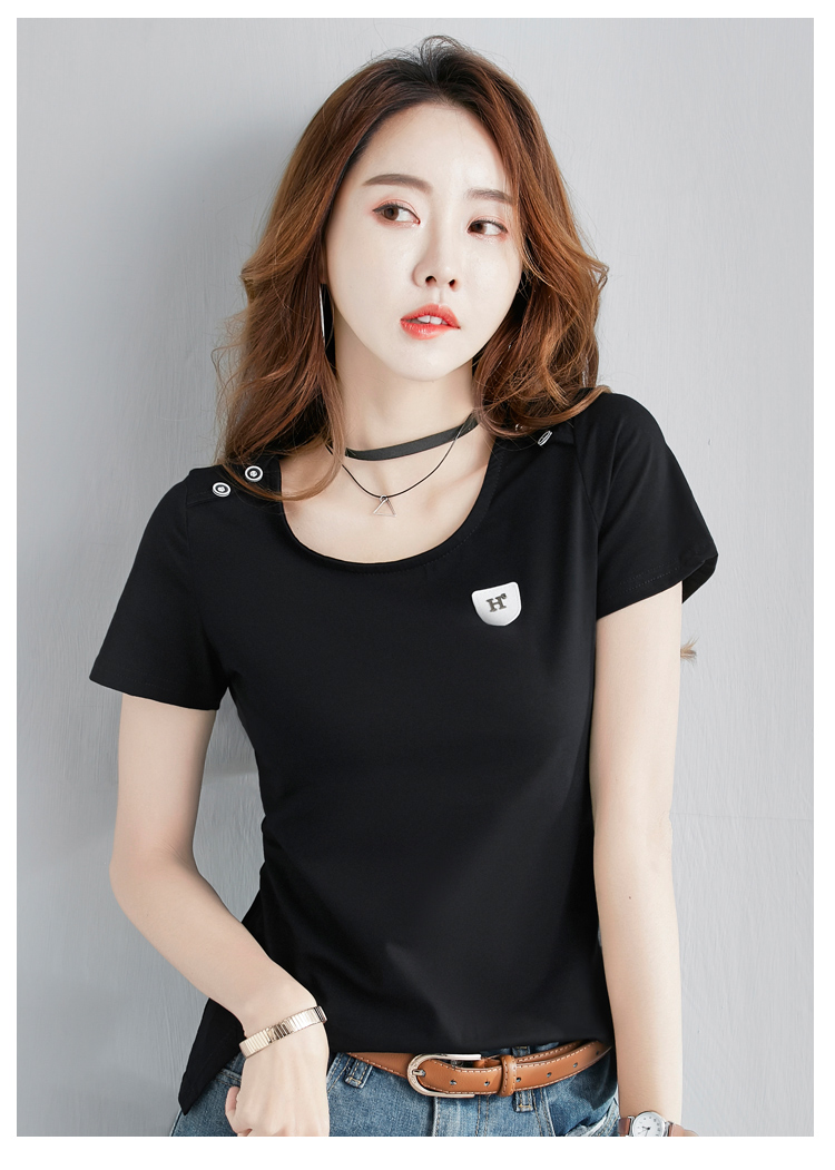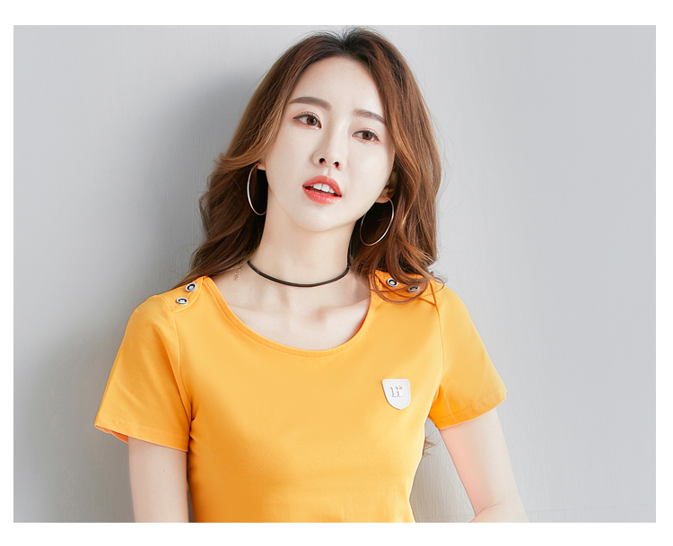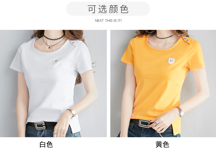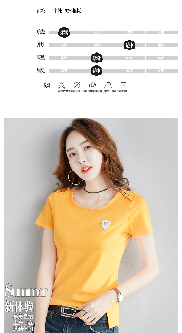 2019新款夏季短袖t恤女圓領修身純色簡約純棉韓版百搭緊身上衣
