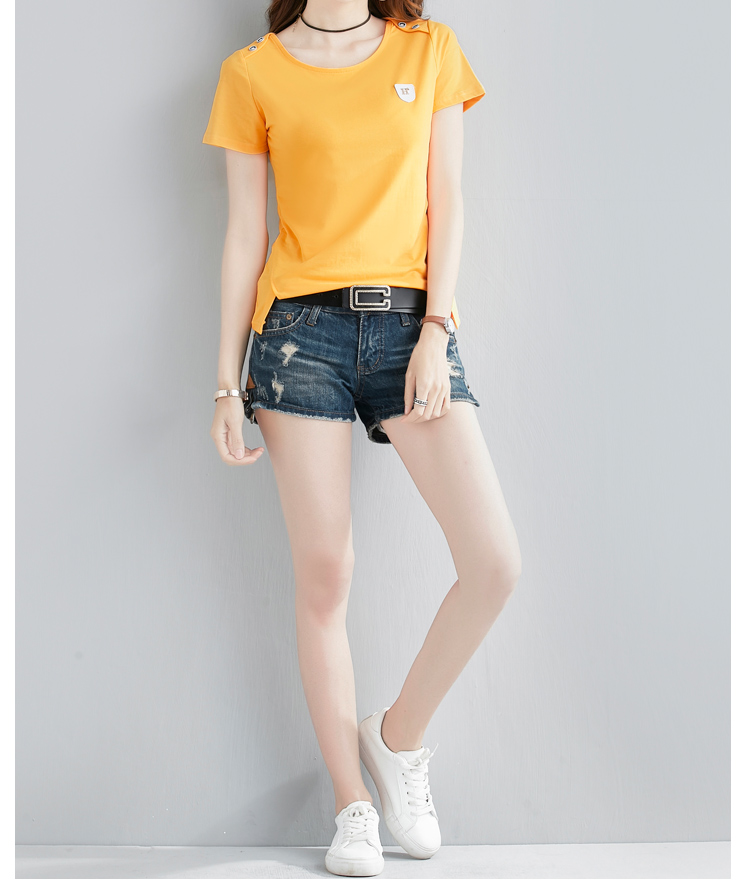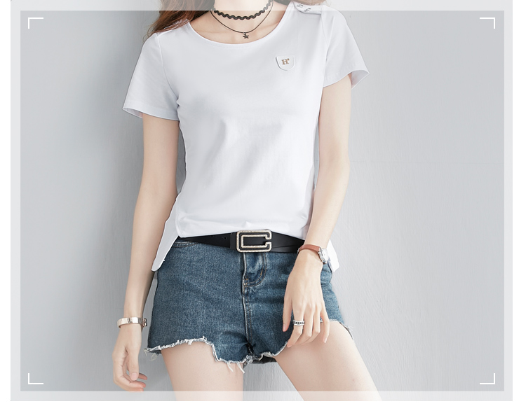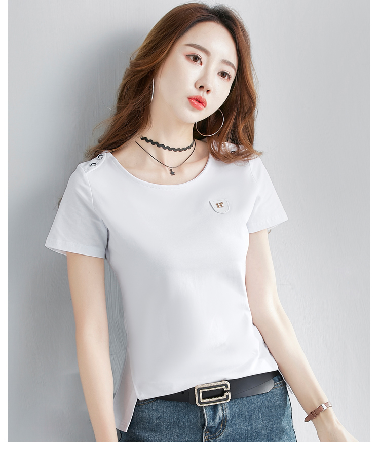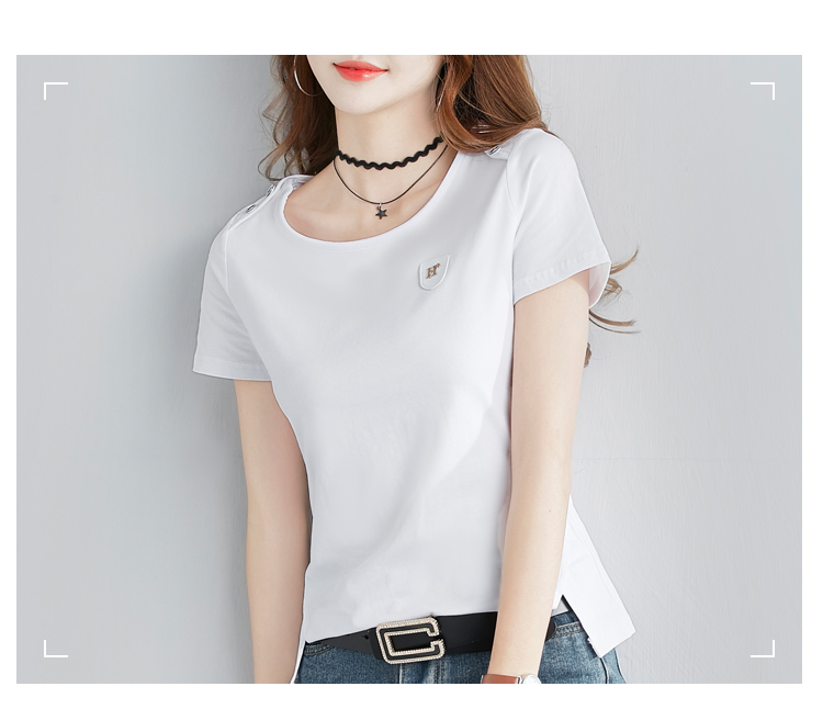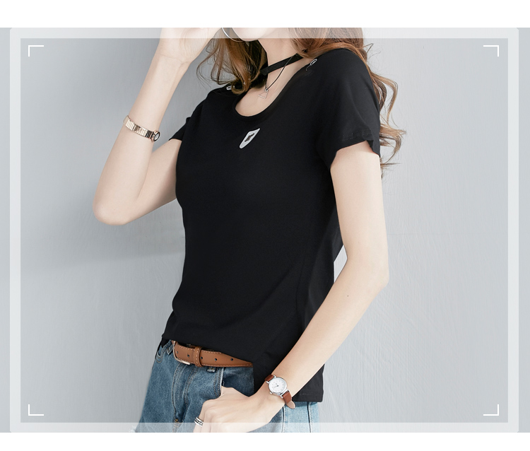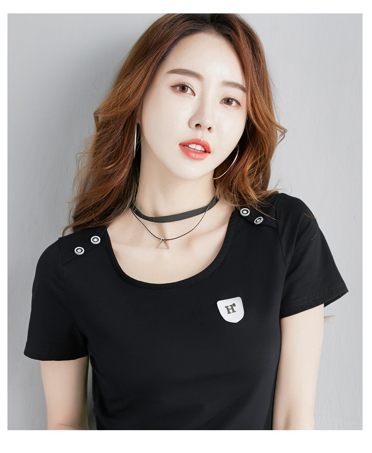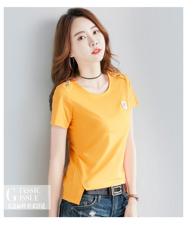 2019新款夏季短袖t恤女圓領修身純色簡約純棉韓版百搭緊身上衣