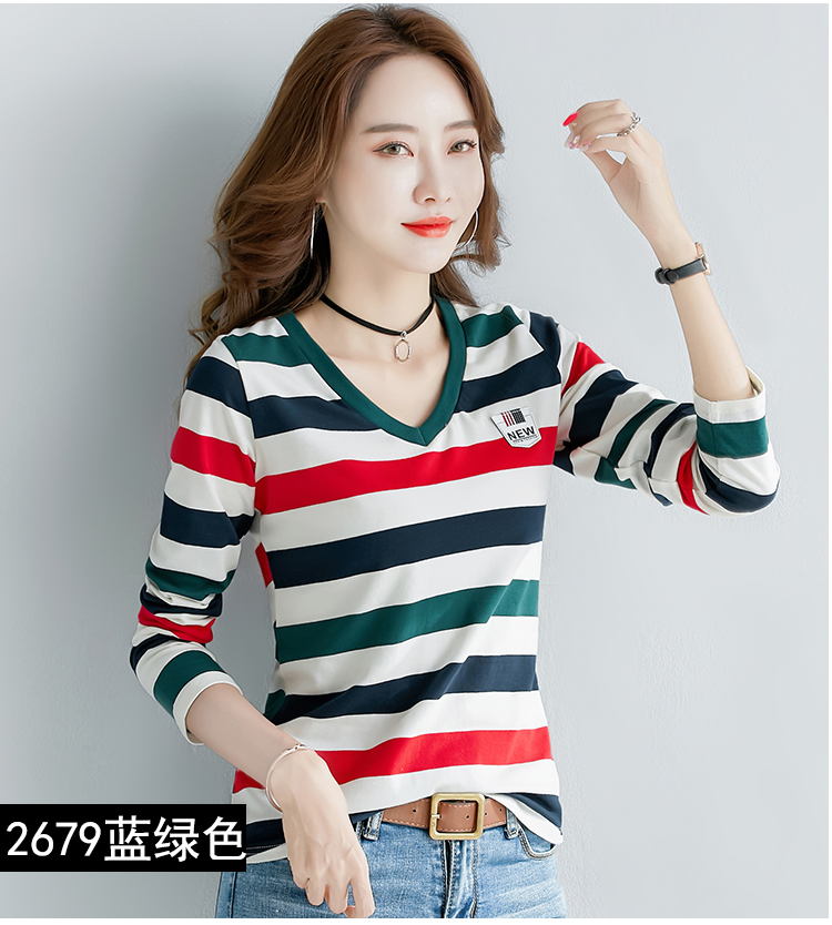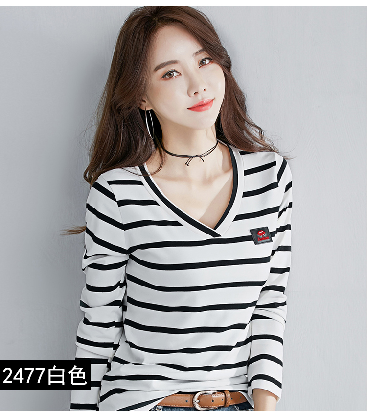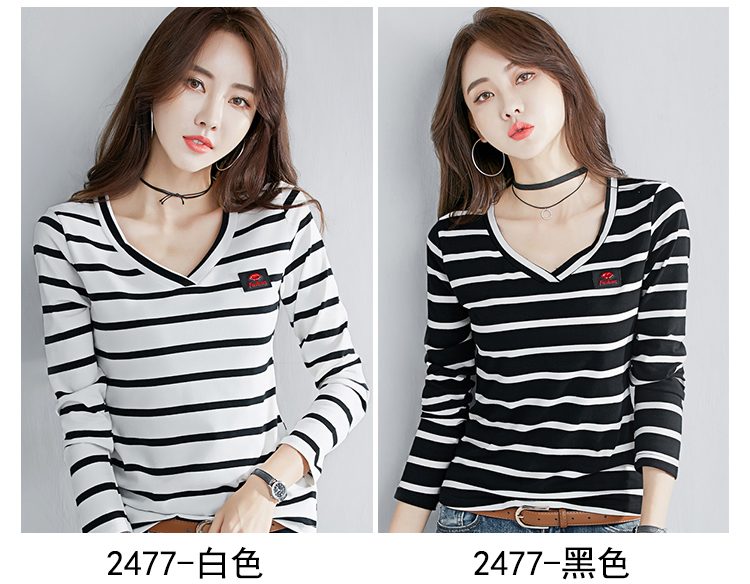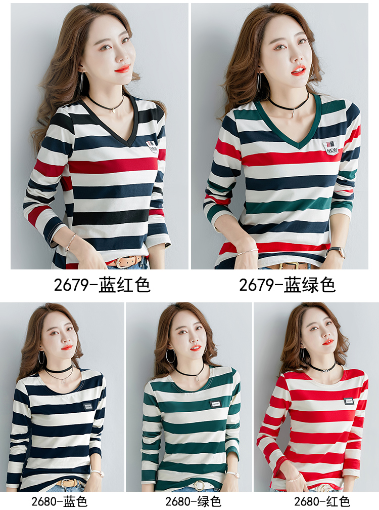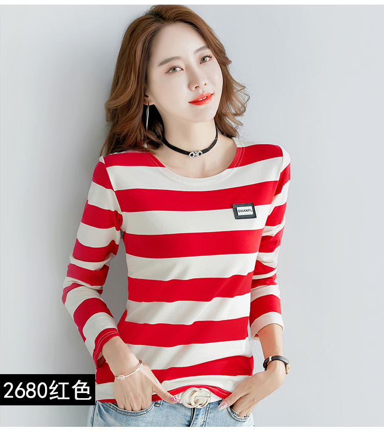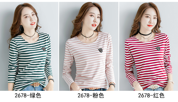 高領打底衫女長袖2019新款秋冬季條紋t恤女純棉修身緊身內搭上衣