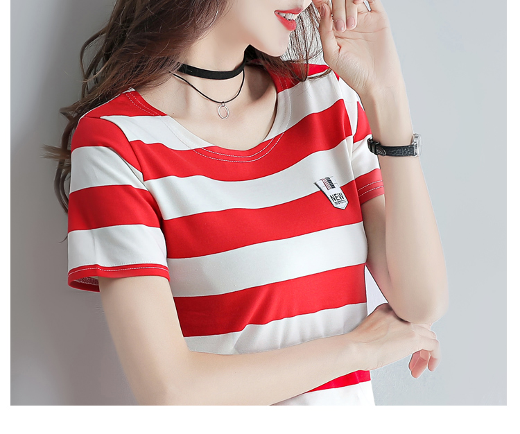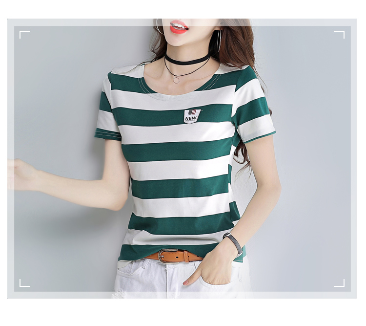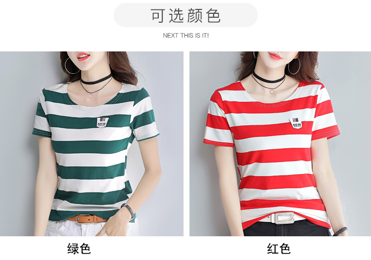 2019夏裝韓版新款純棉女T恤百搭修身條紋圓領短袖上衣半袖打底衫